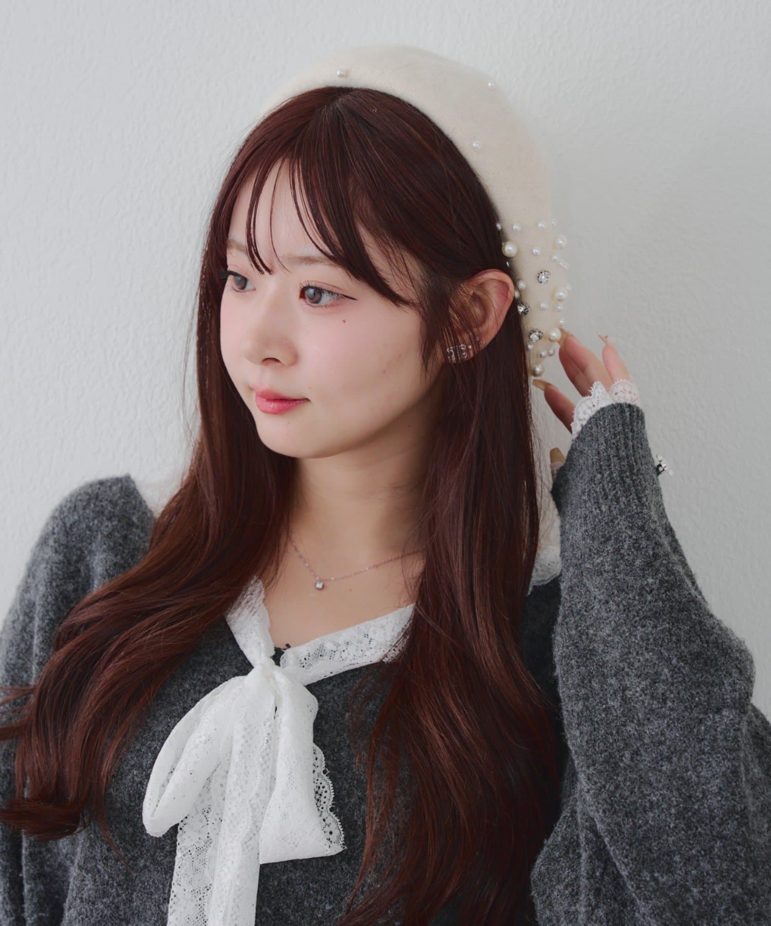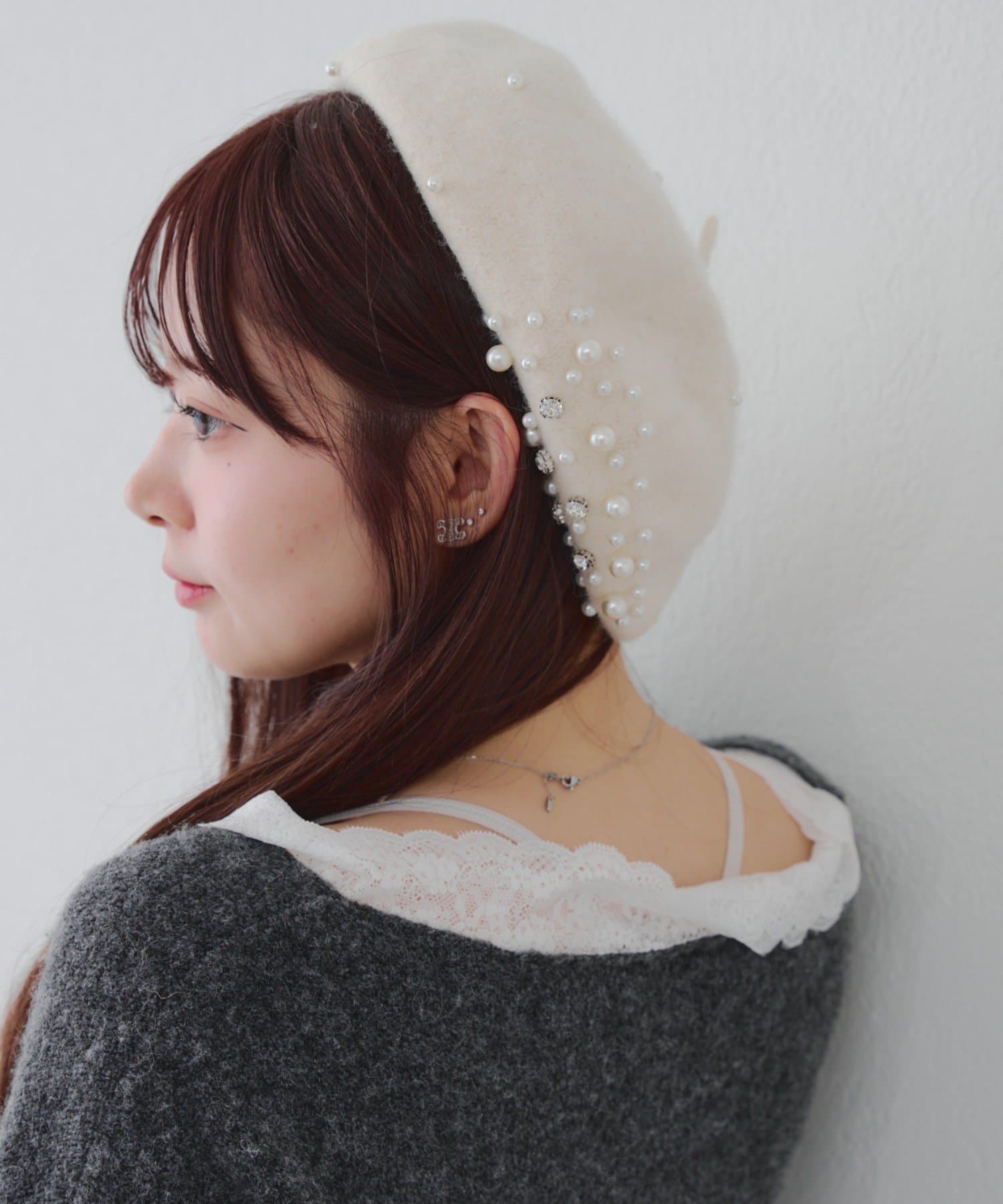 • Remind me and forever(リマインドミーアンドフォーエバー) パール&ビジュー付ベレー帽