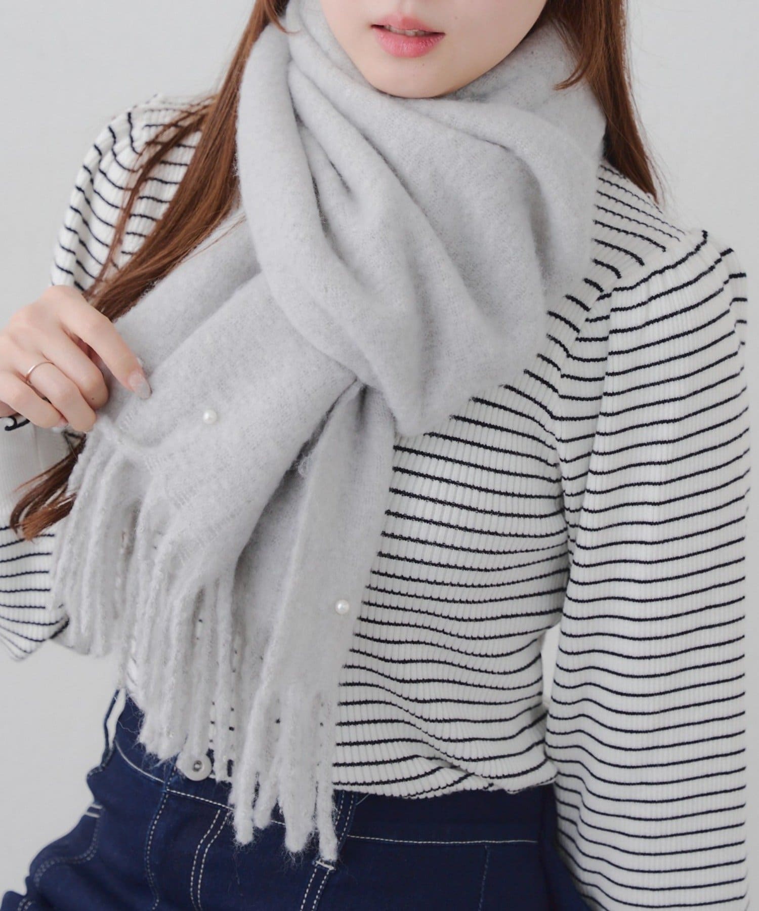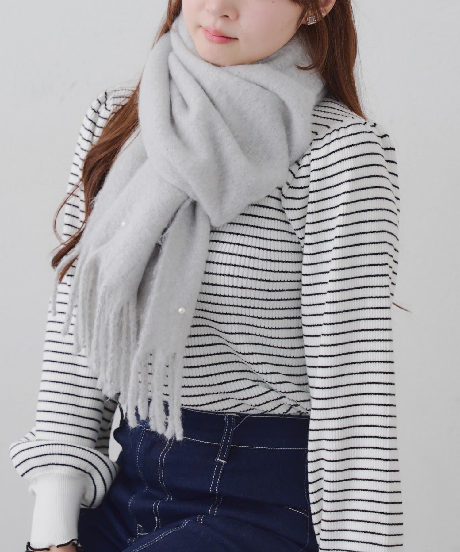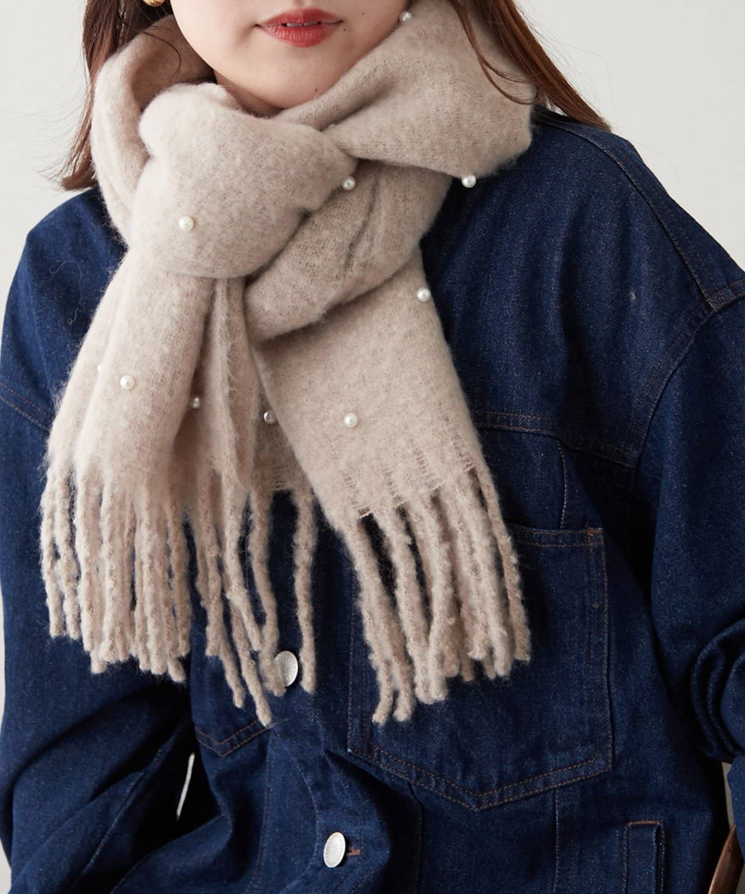 ・パール付きで華やかさもある、ふわふわ素材のマフラー