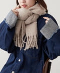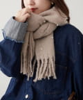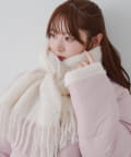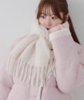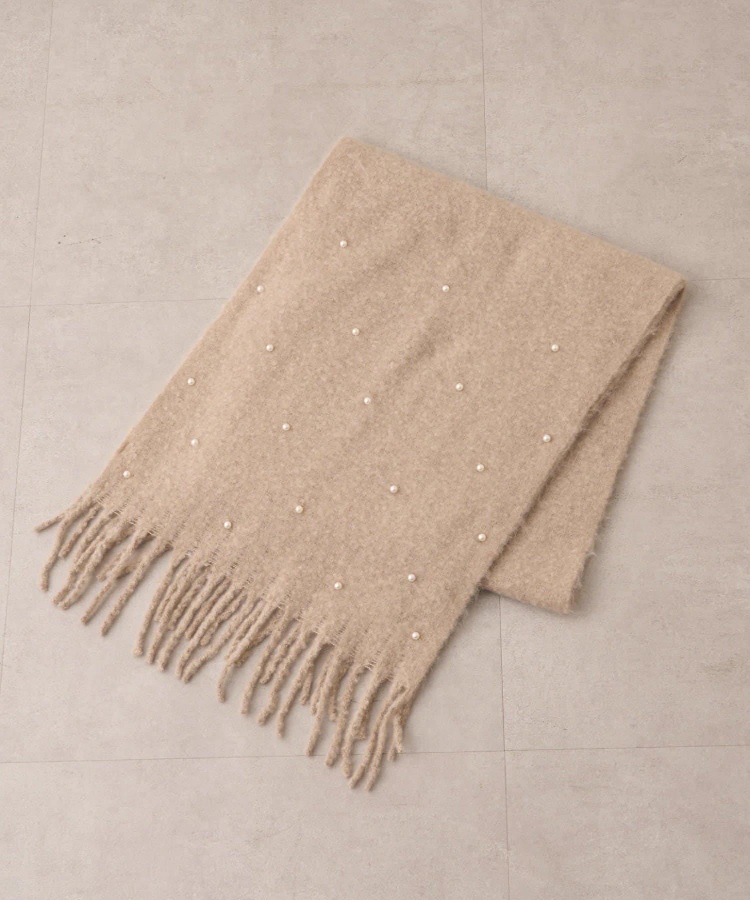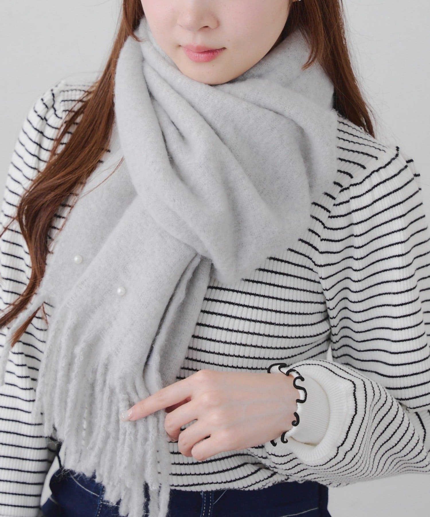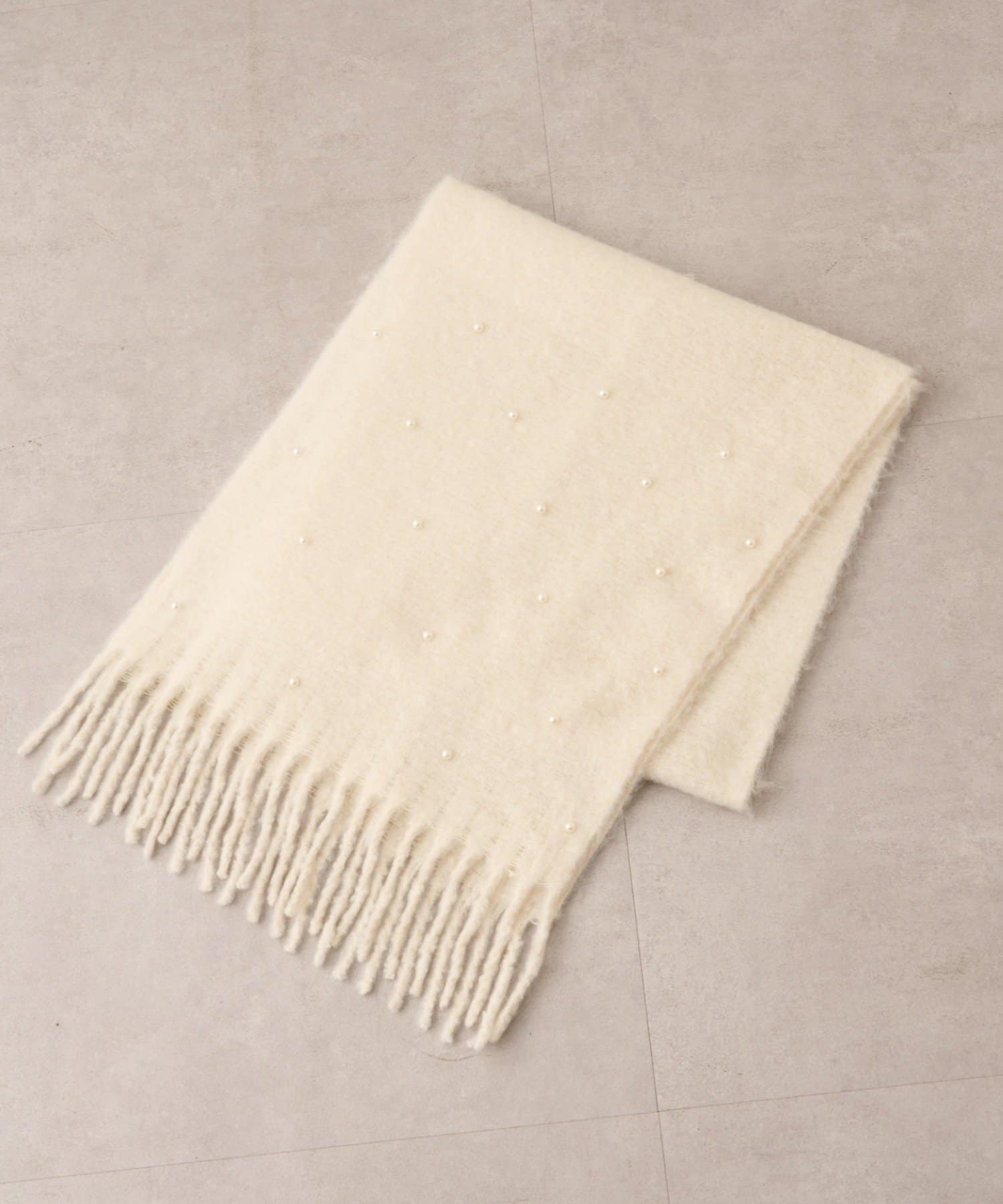 ・パール付きで華やかさもある、ふわふわ素材のマフラー