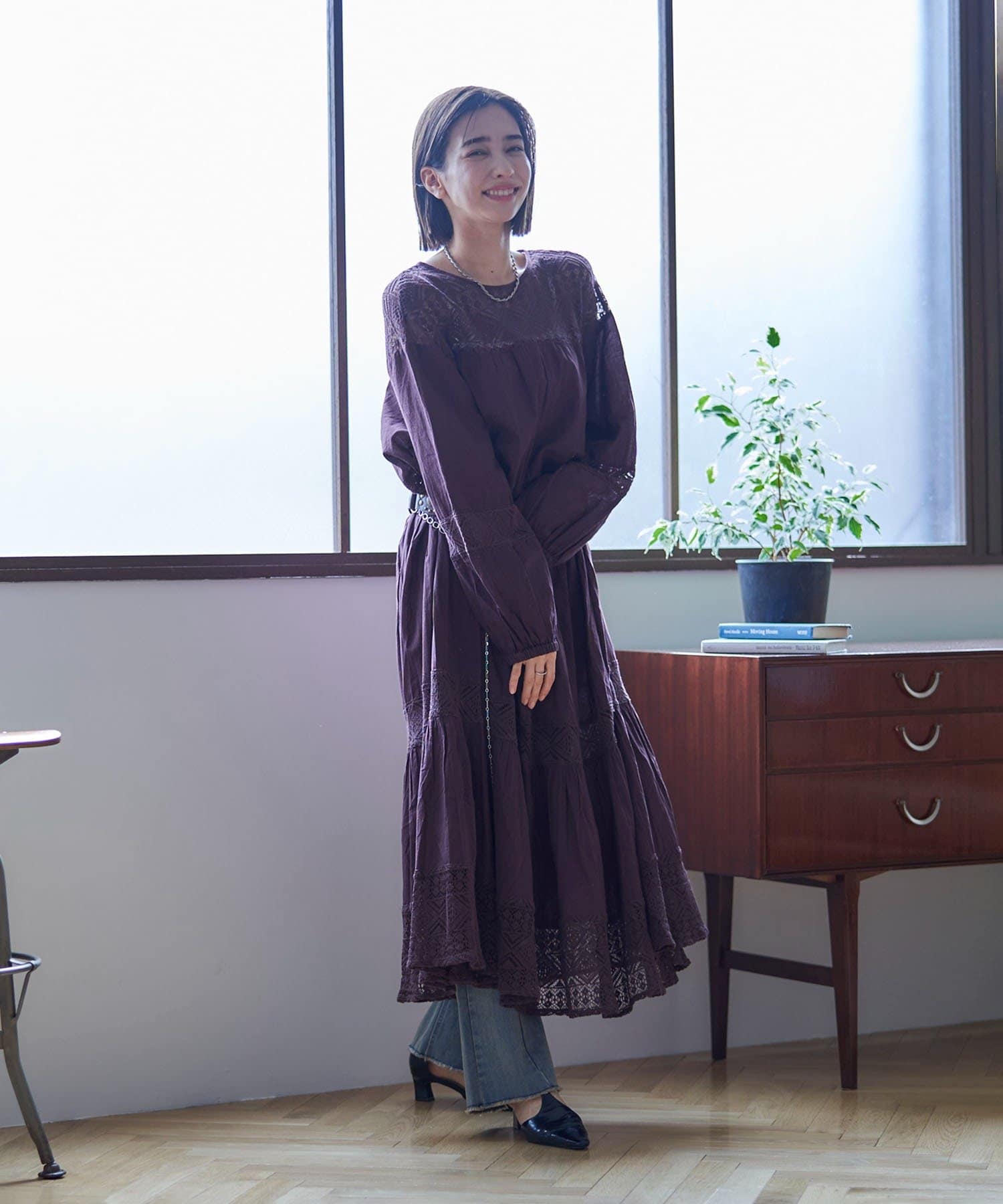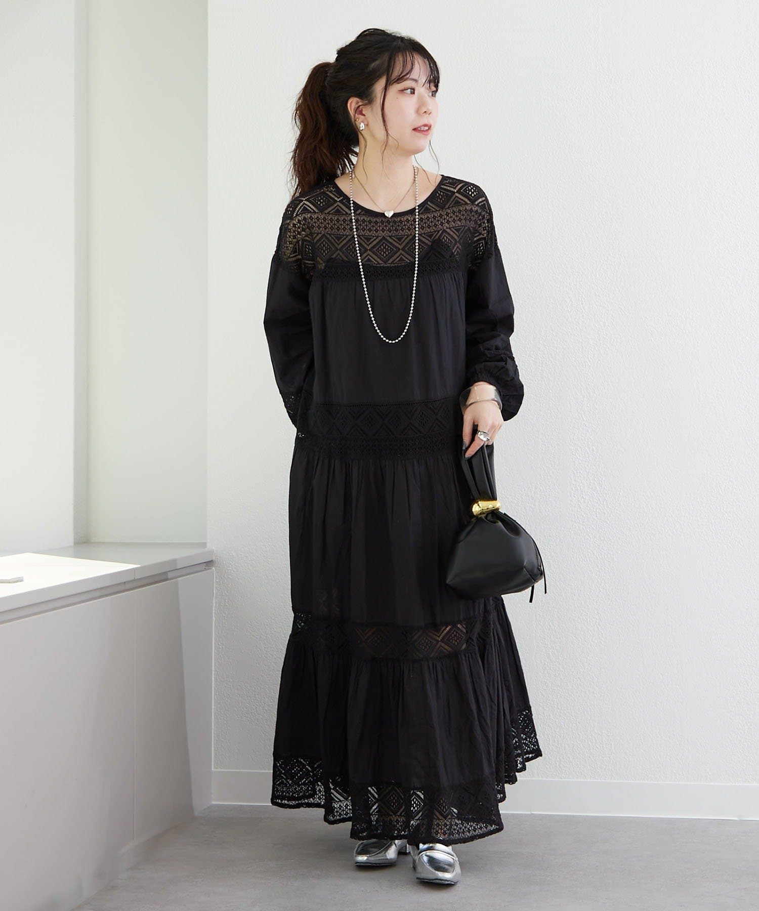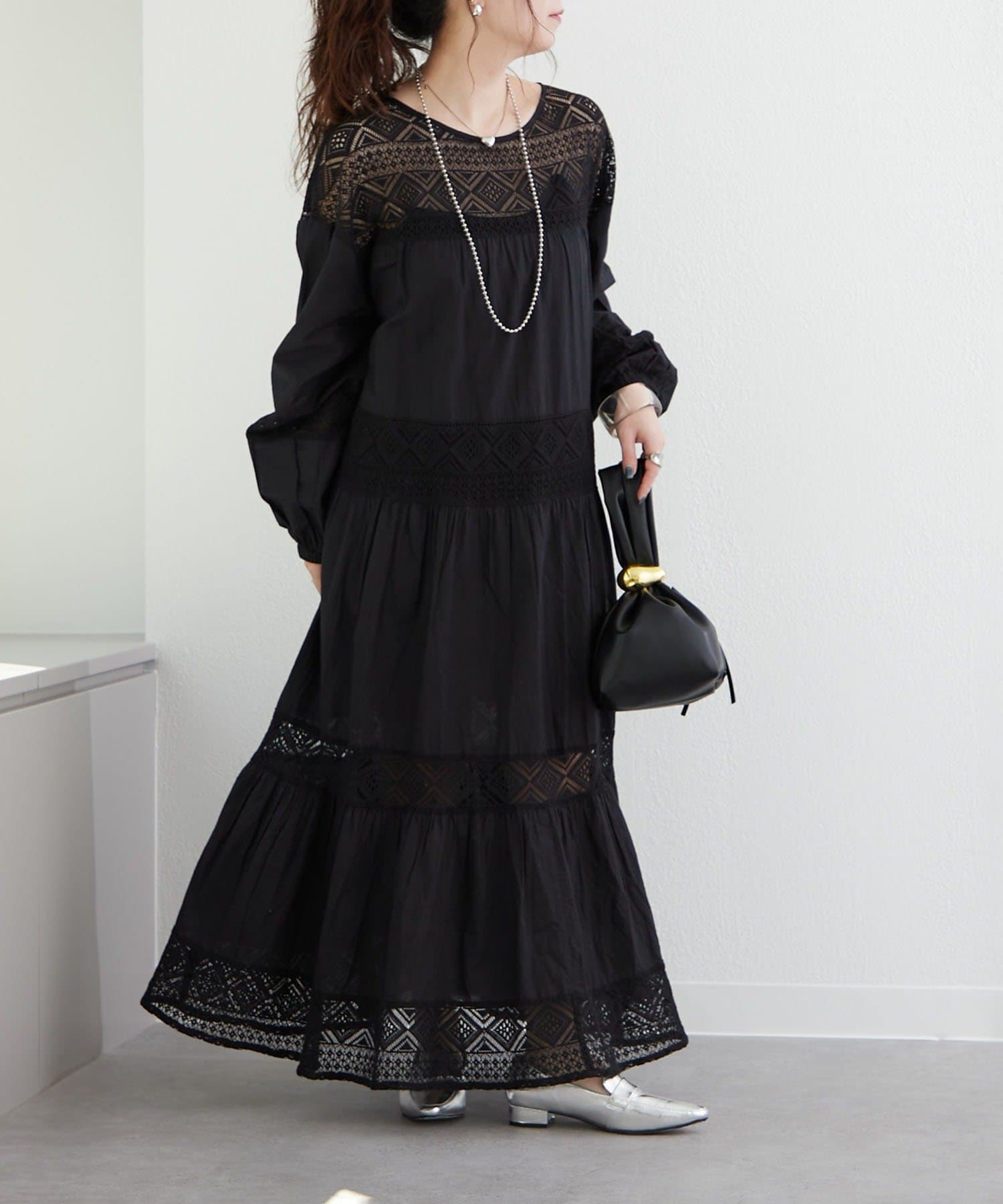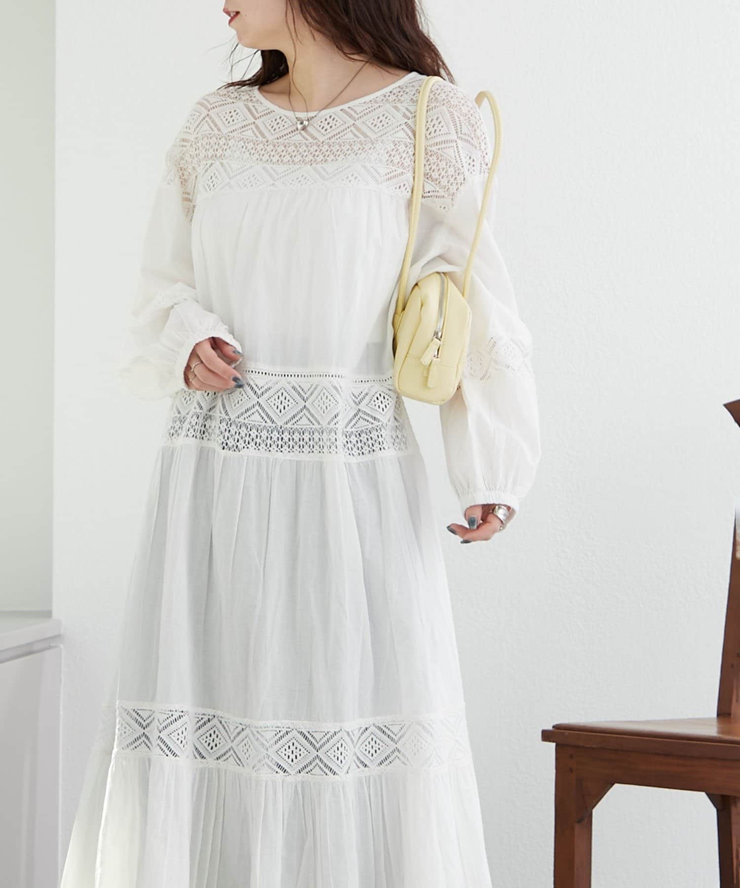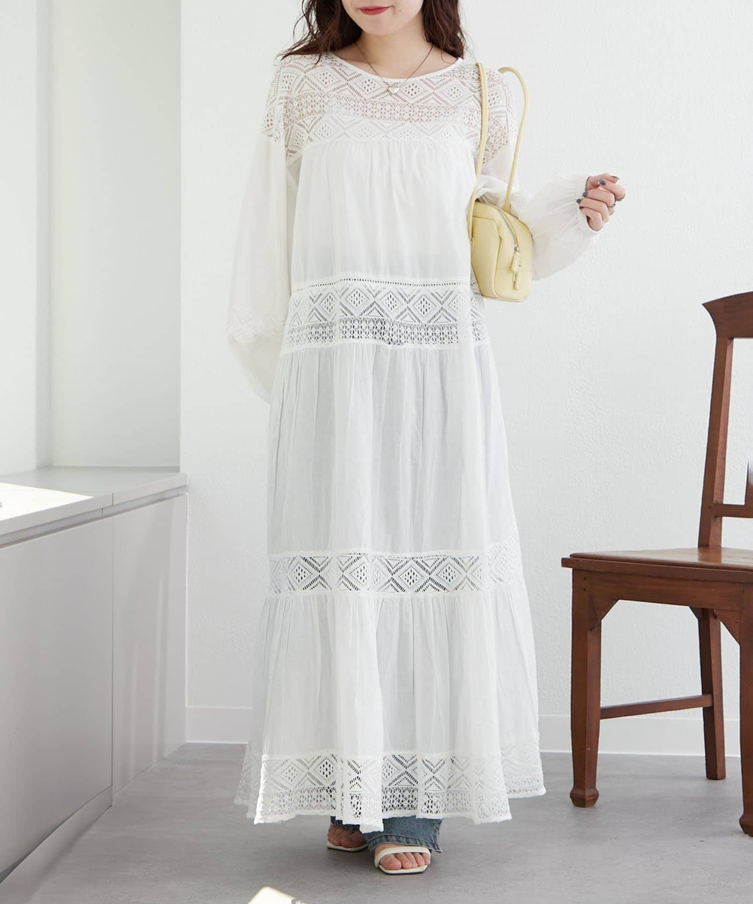 ・シンプルでありながら華やかな印象のコットンロングワンピース。