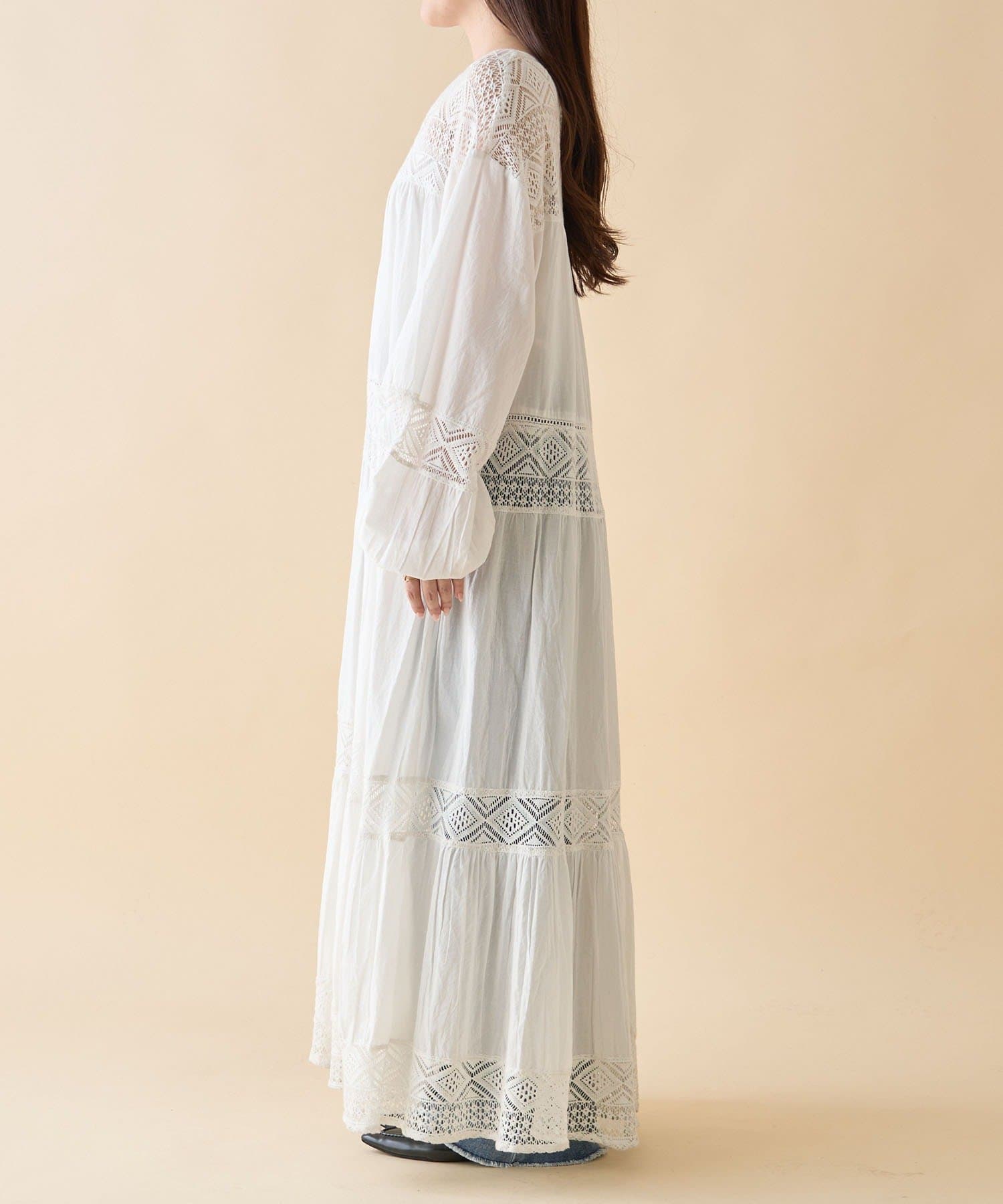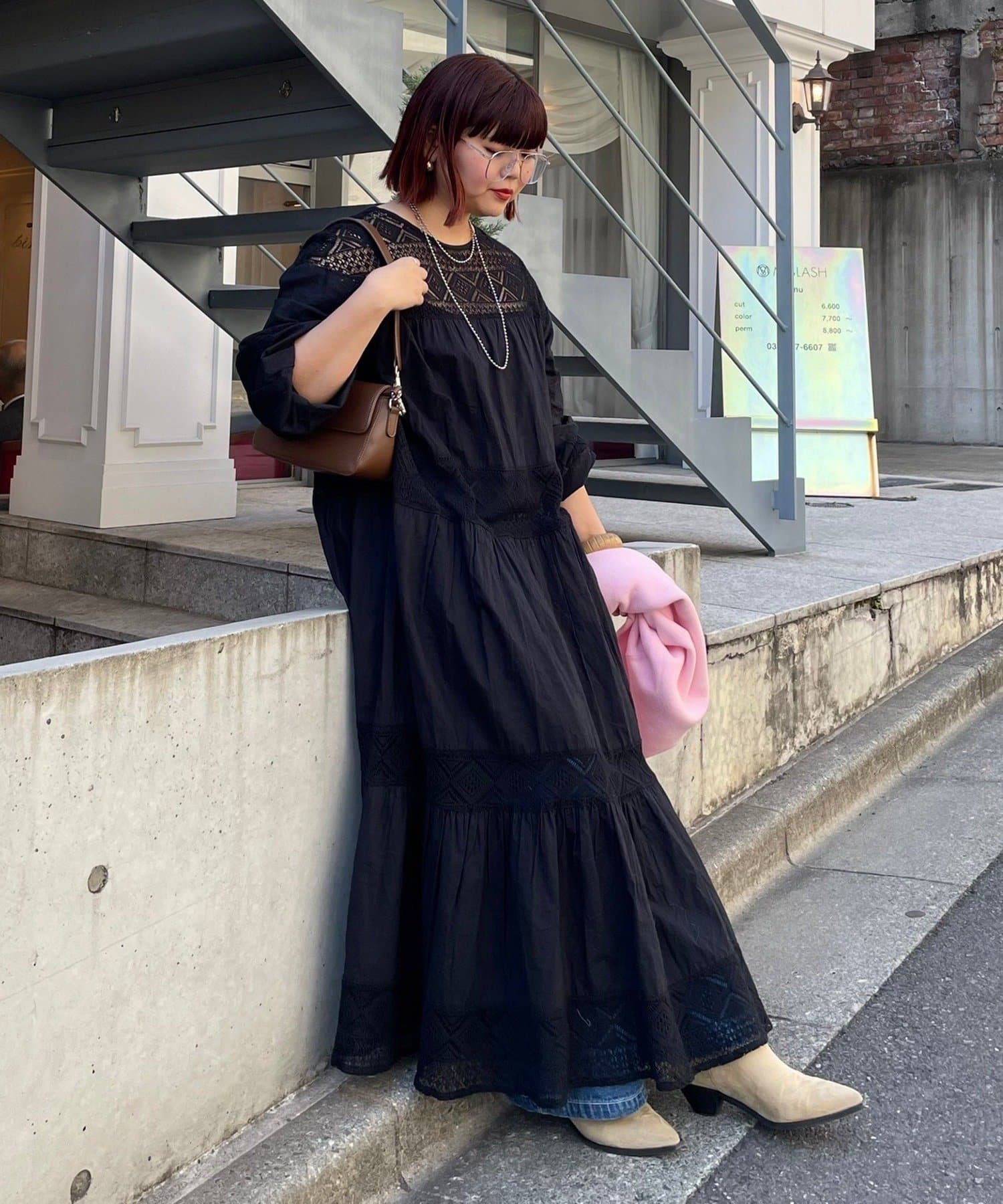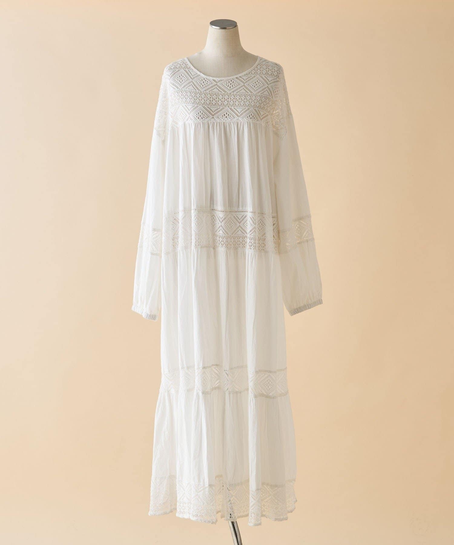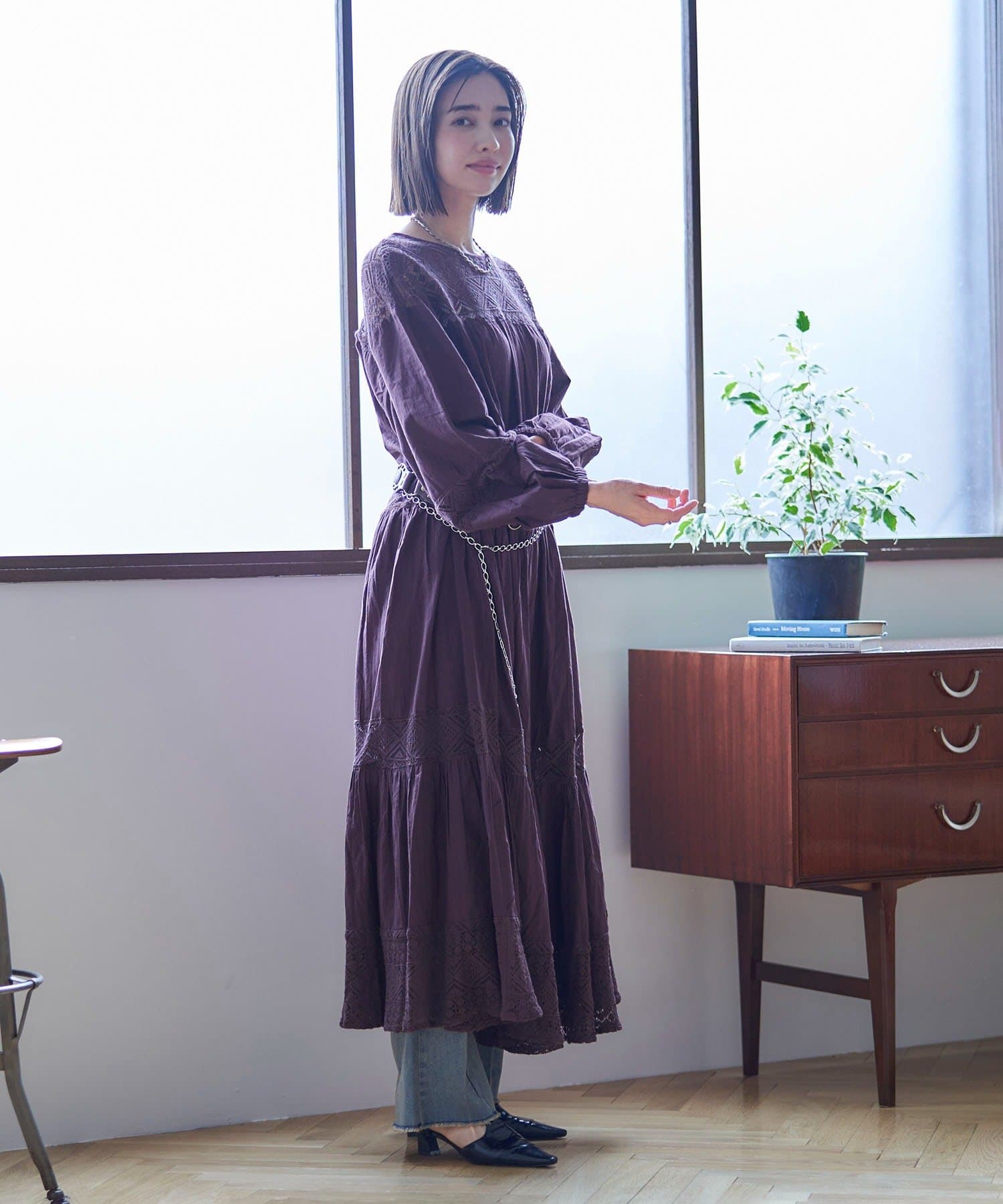・シンプルでありながら華やかな印象のコットンロングワンピース。