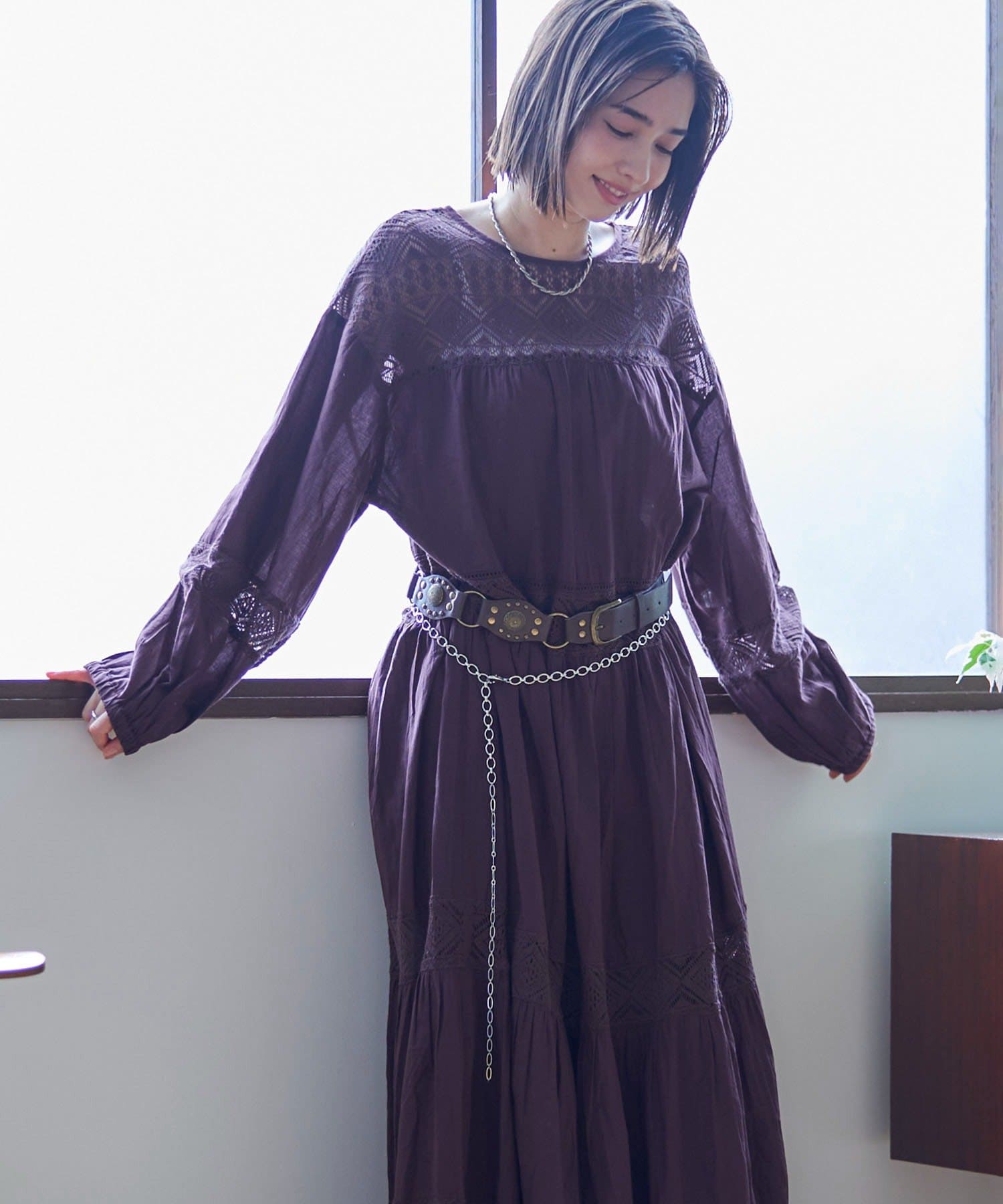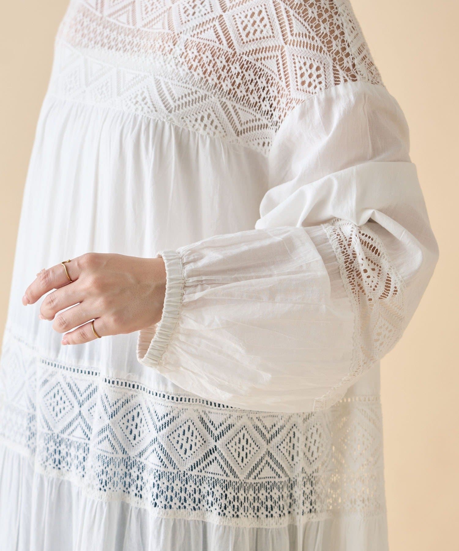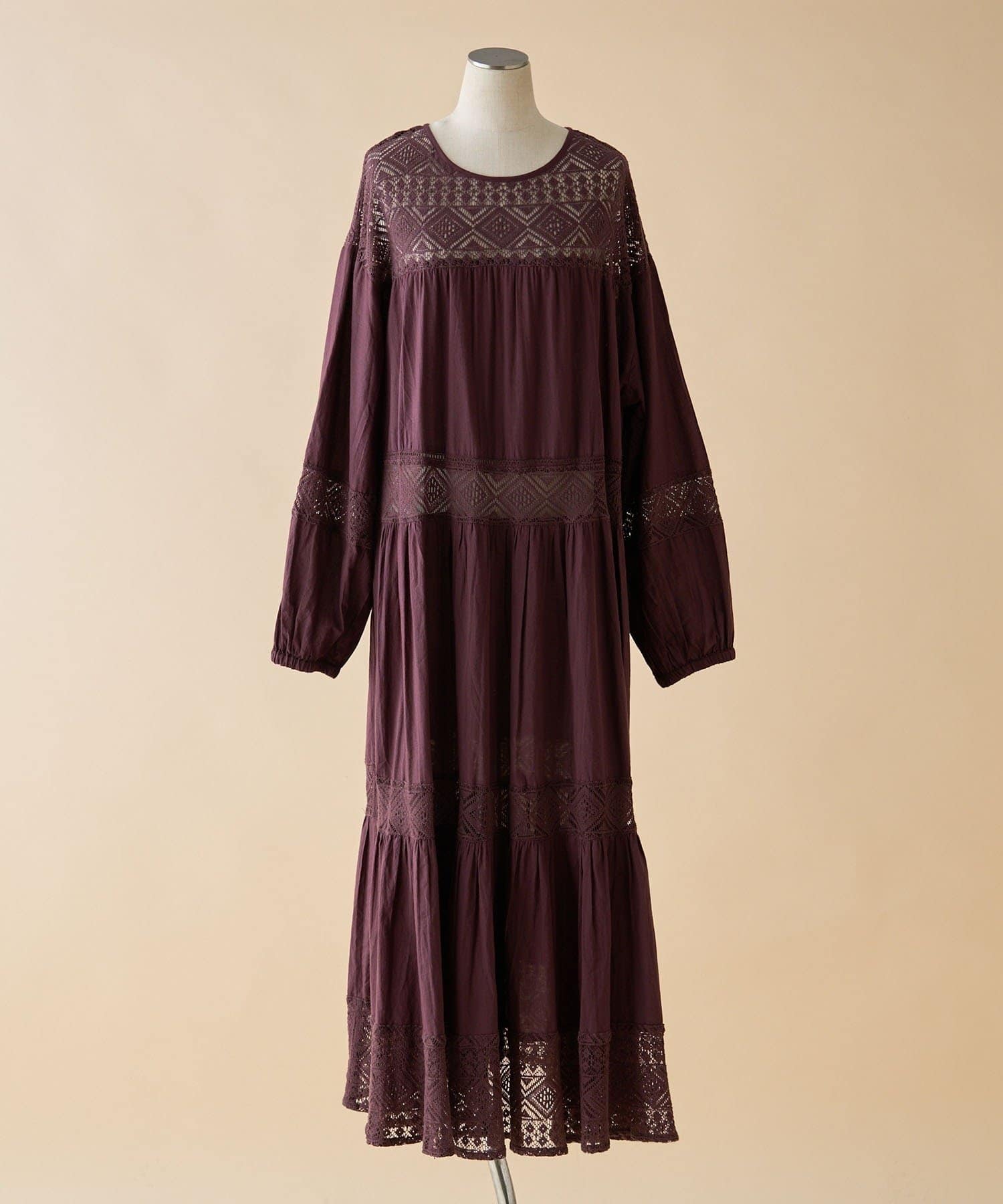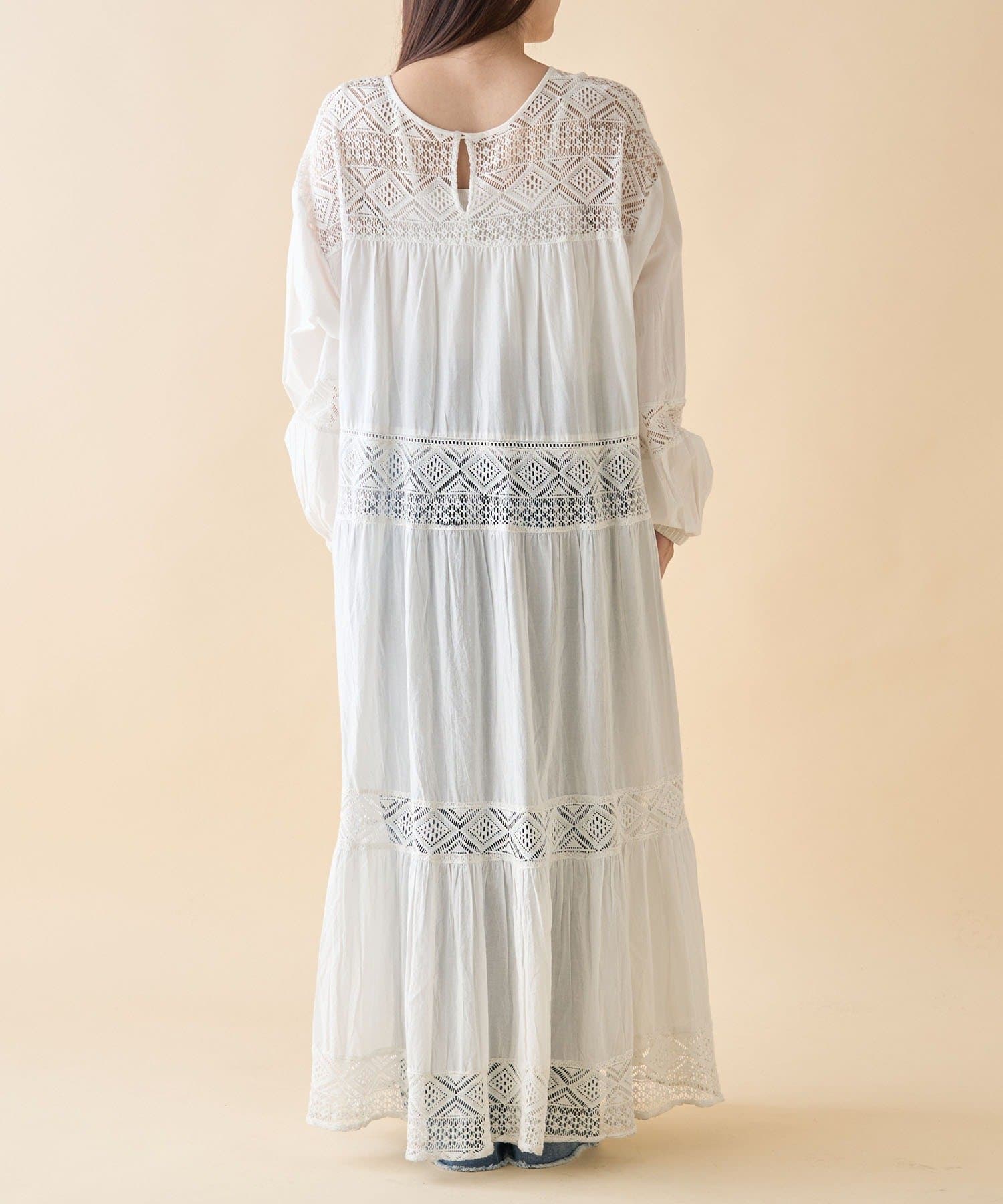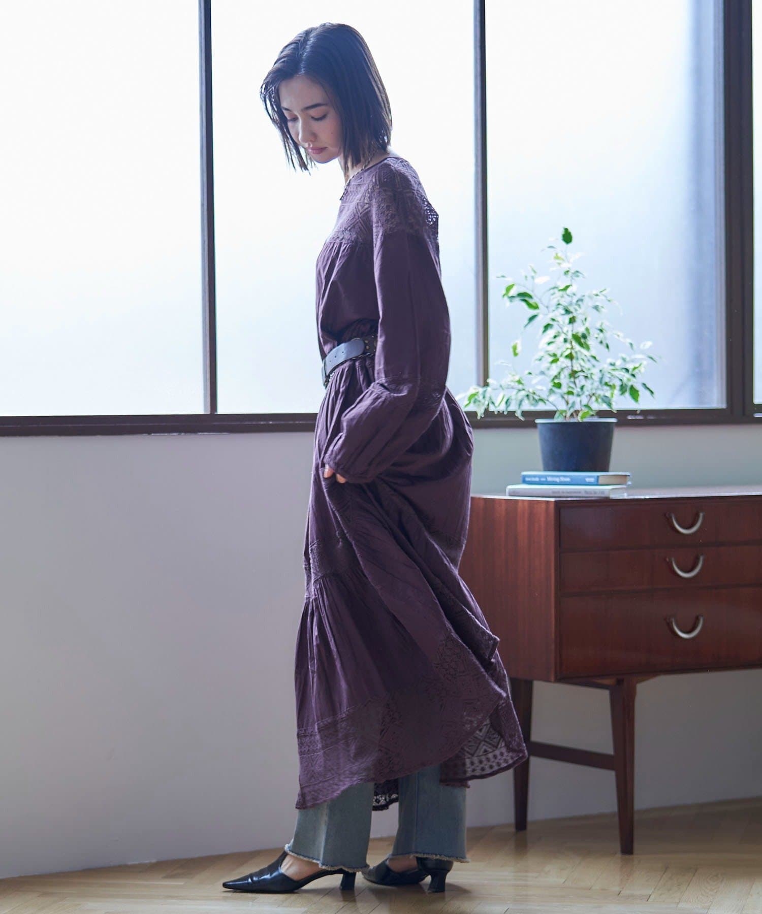 ・シンプルでありながら華やかな印象のコットンロングワンピース。