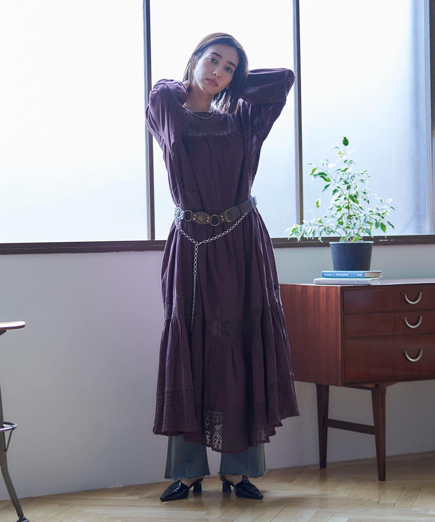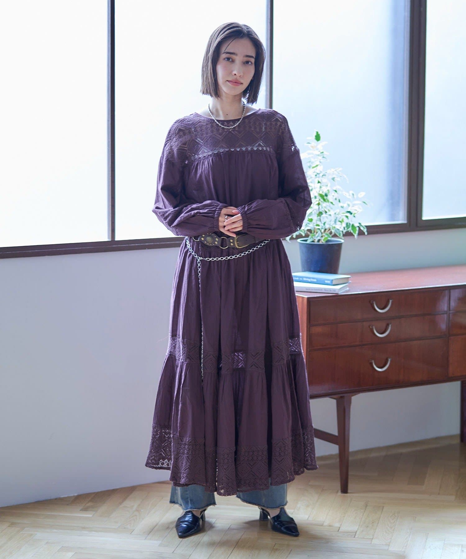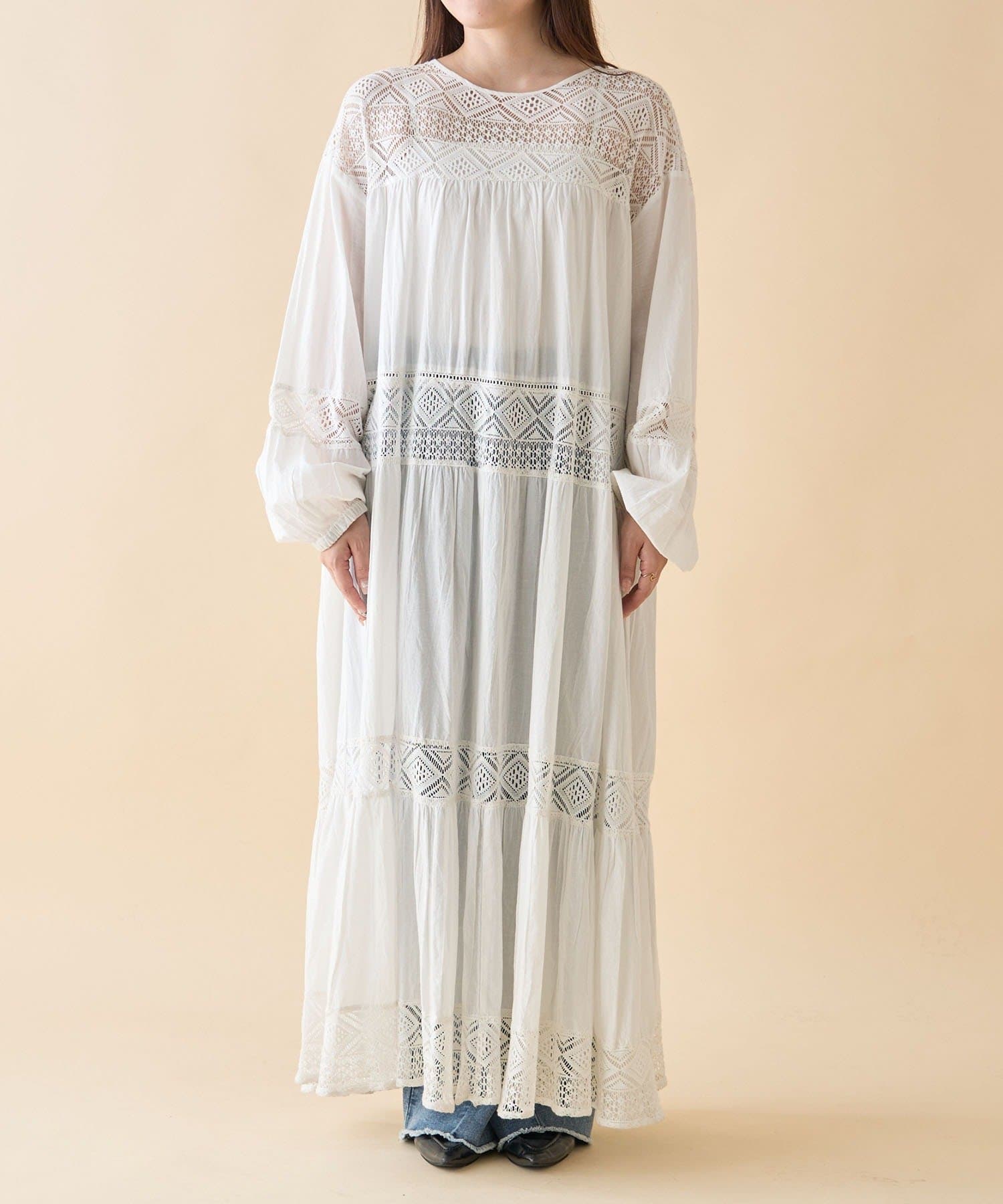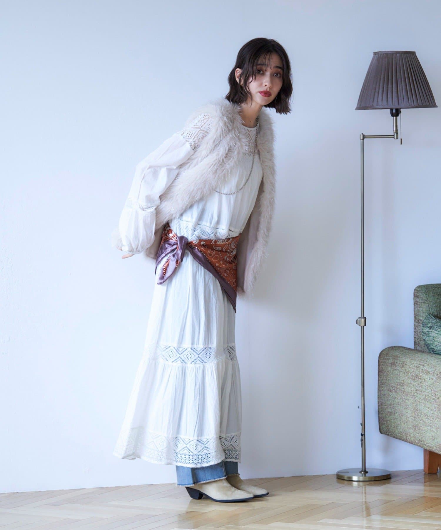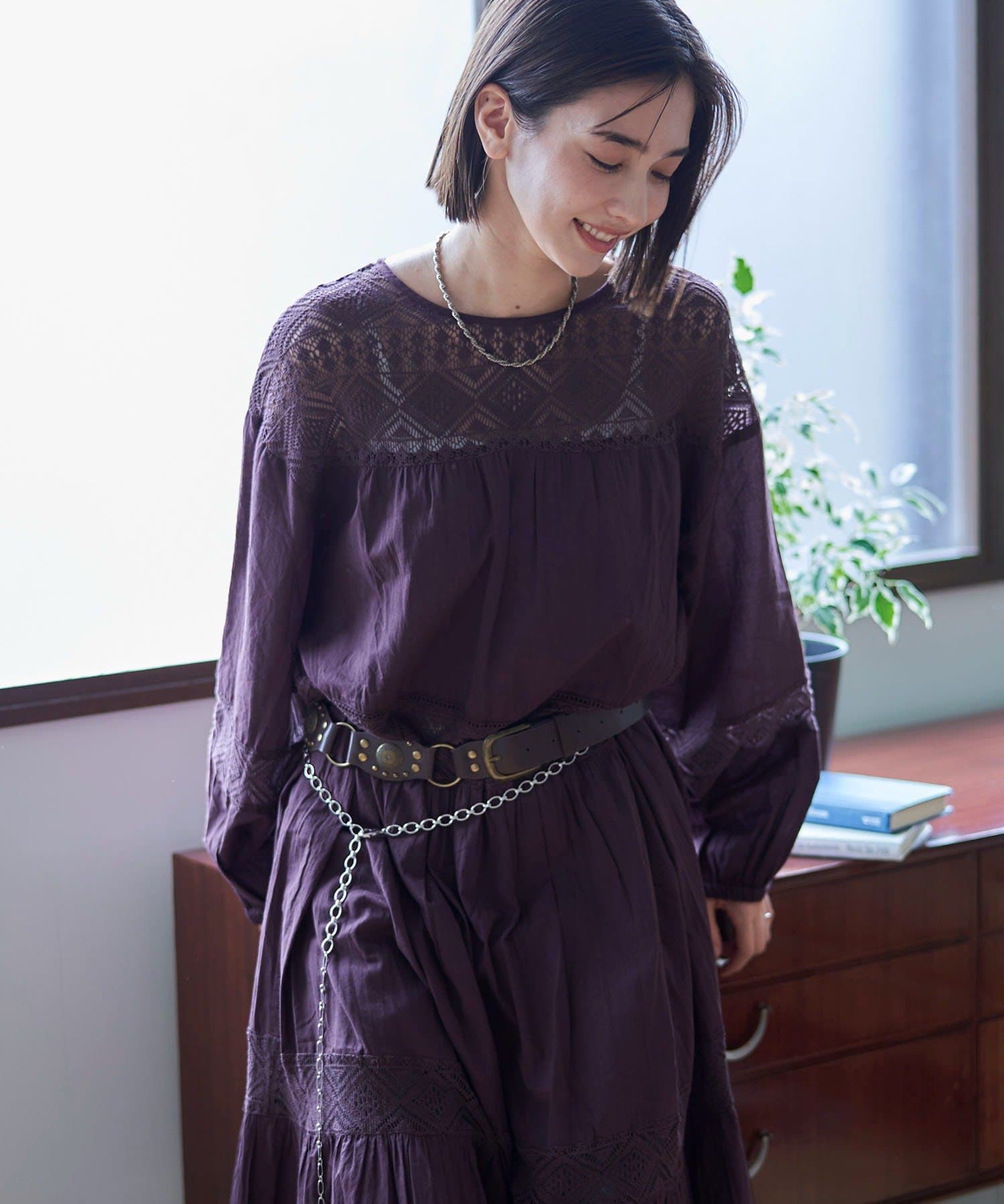 ・シンプルでありながら華やかな印象のコットンロングワンピース。