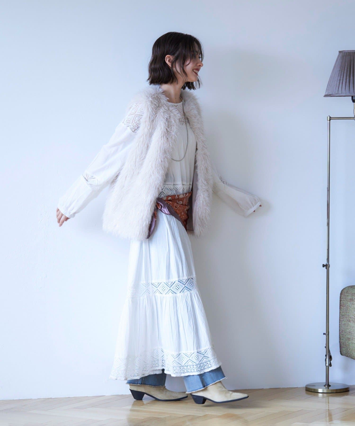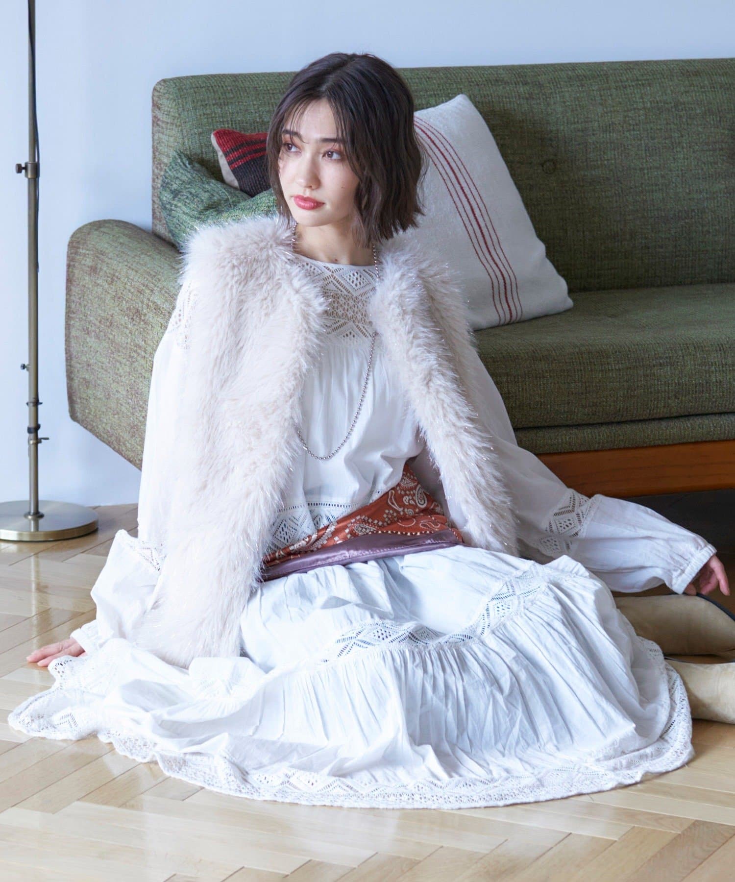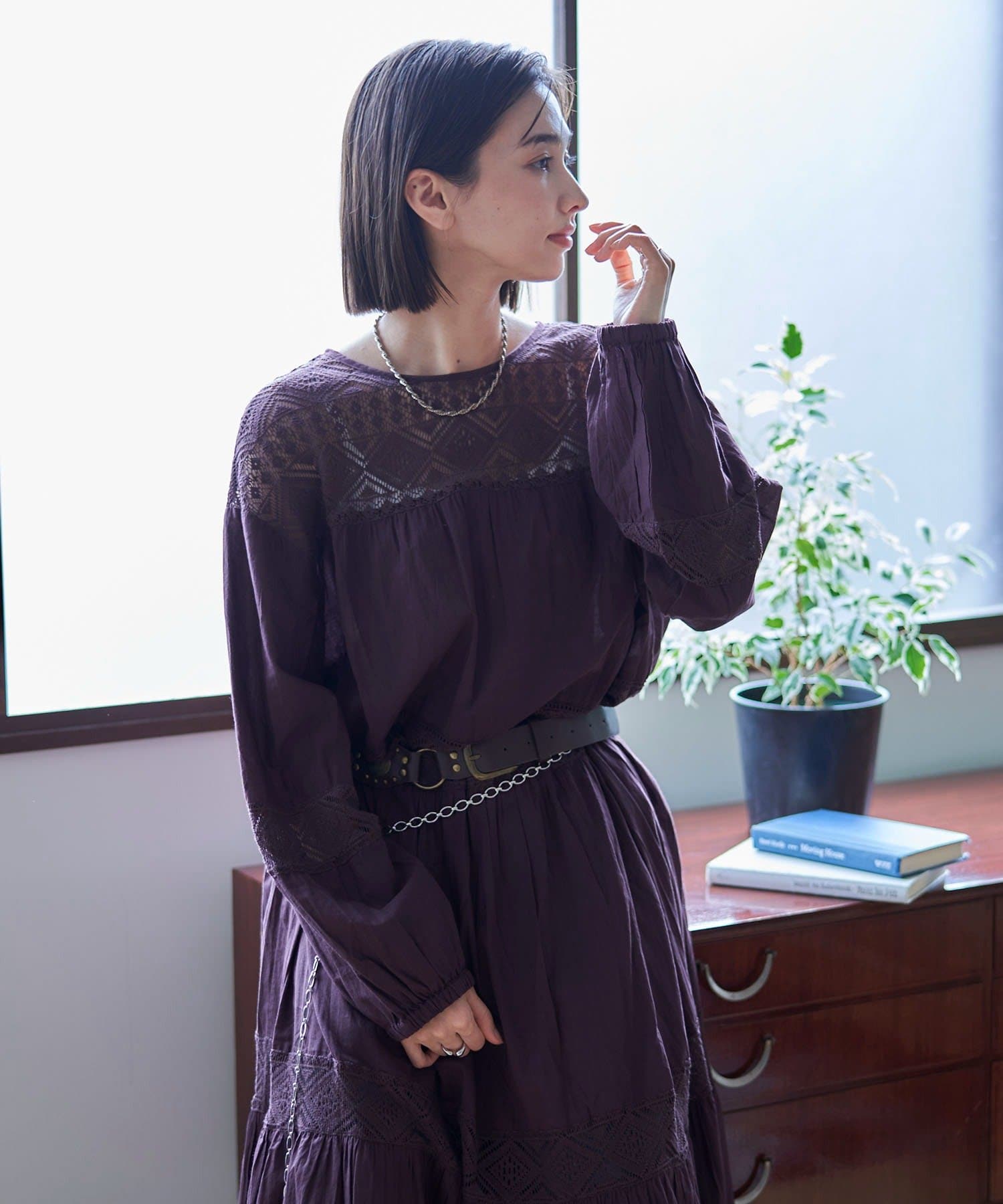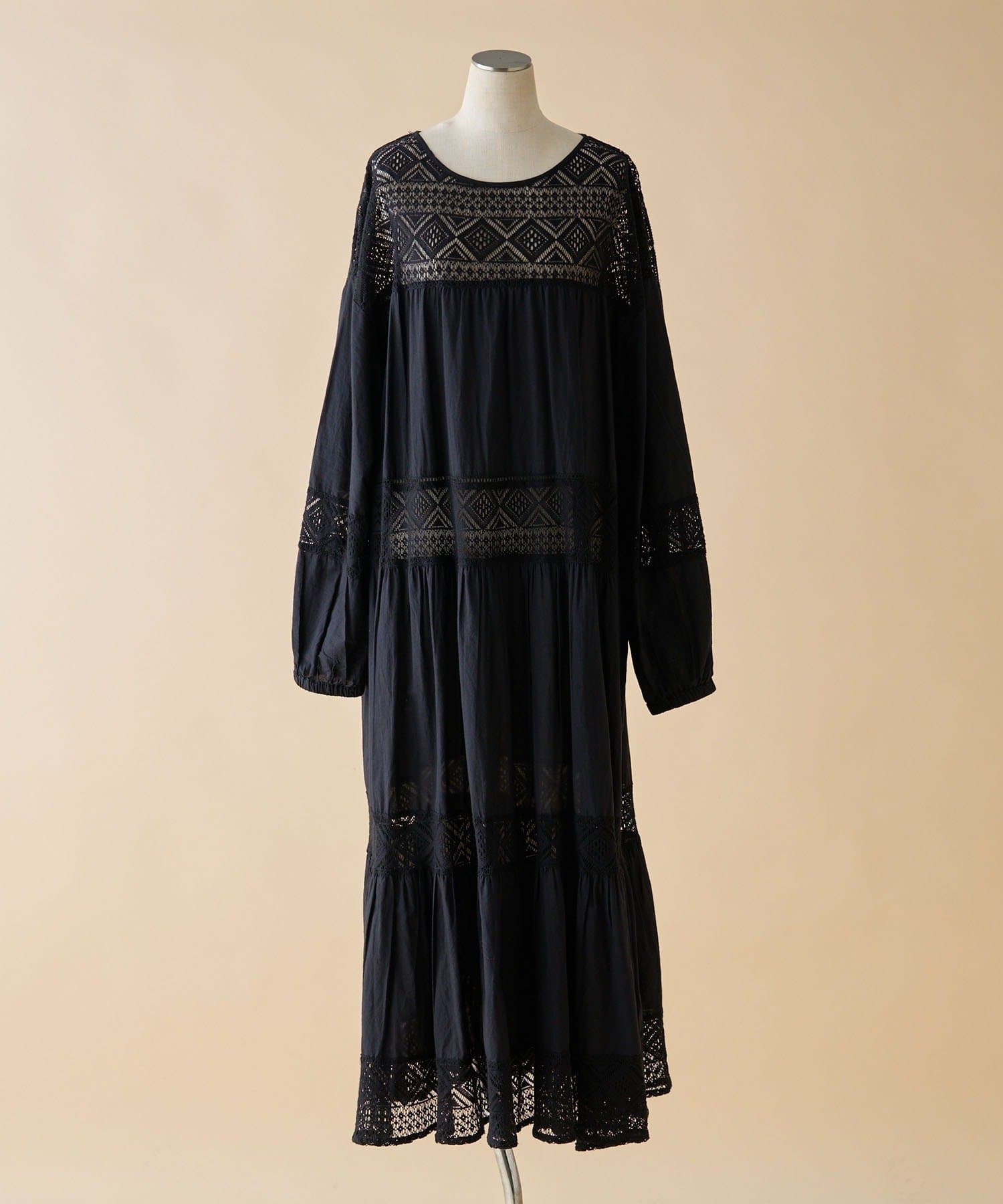 ・シンプルでありながら華やかな印象のコットンロングワンピース。