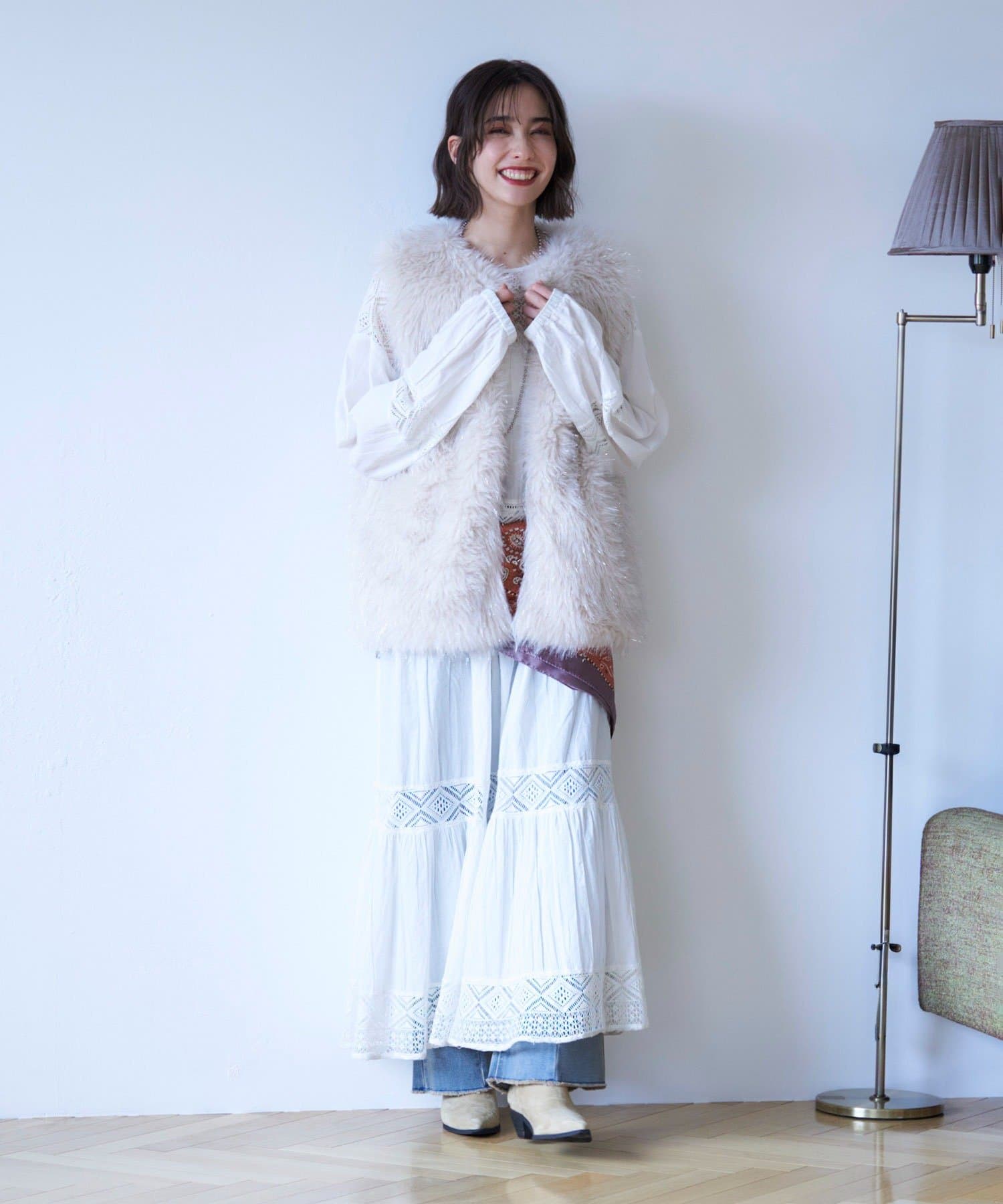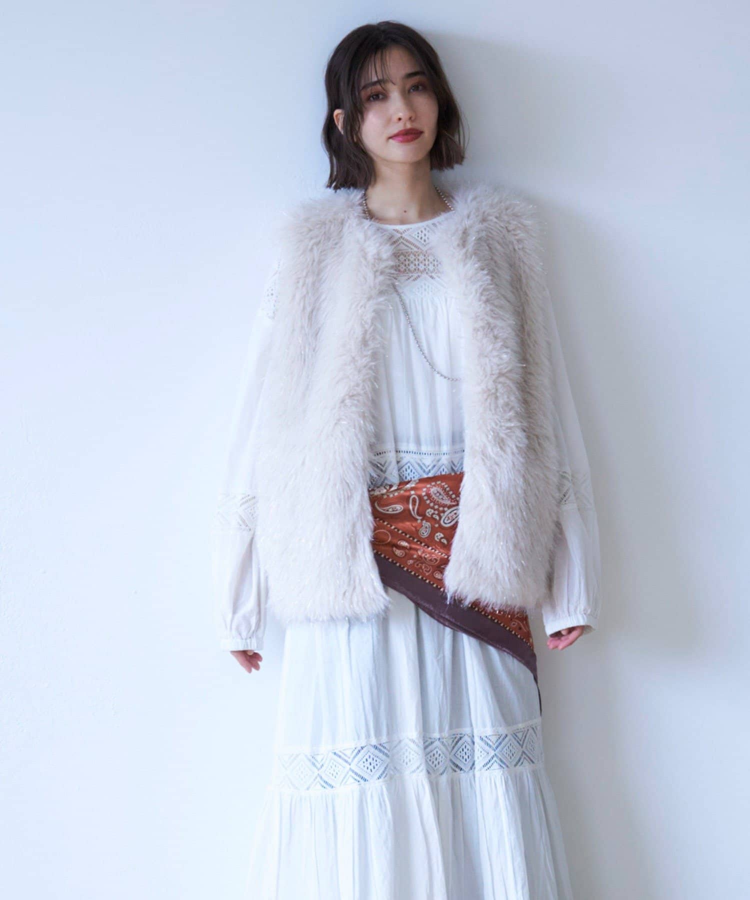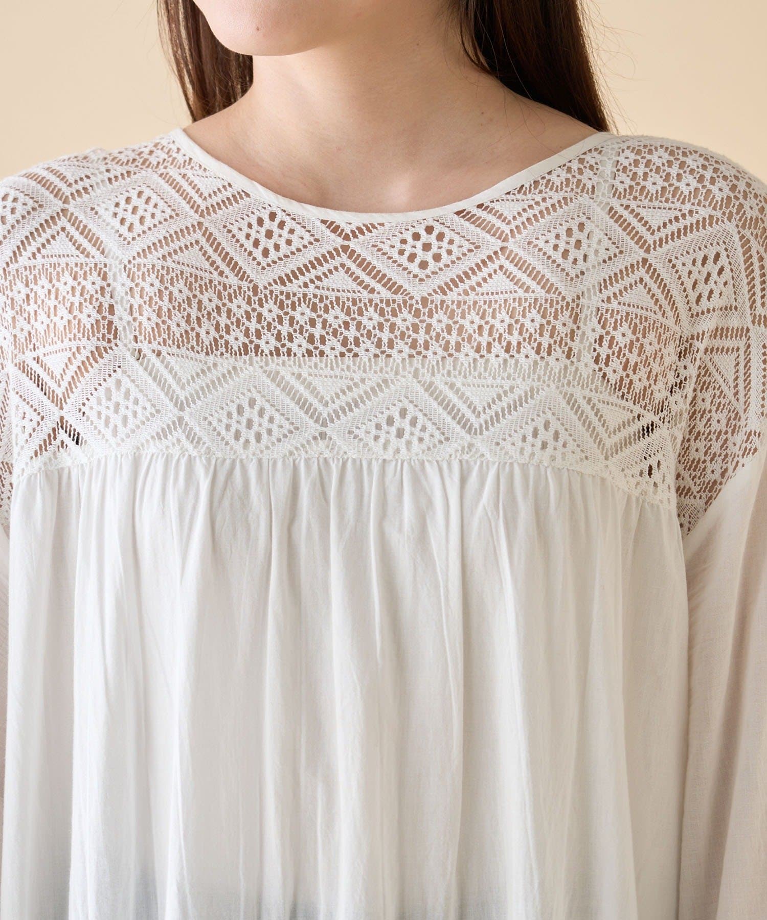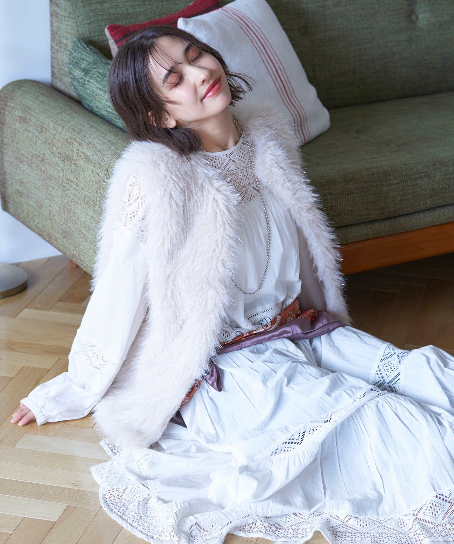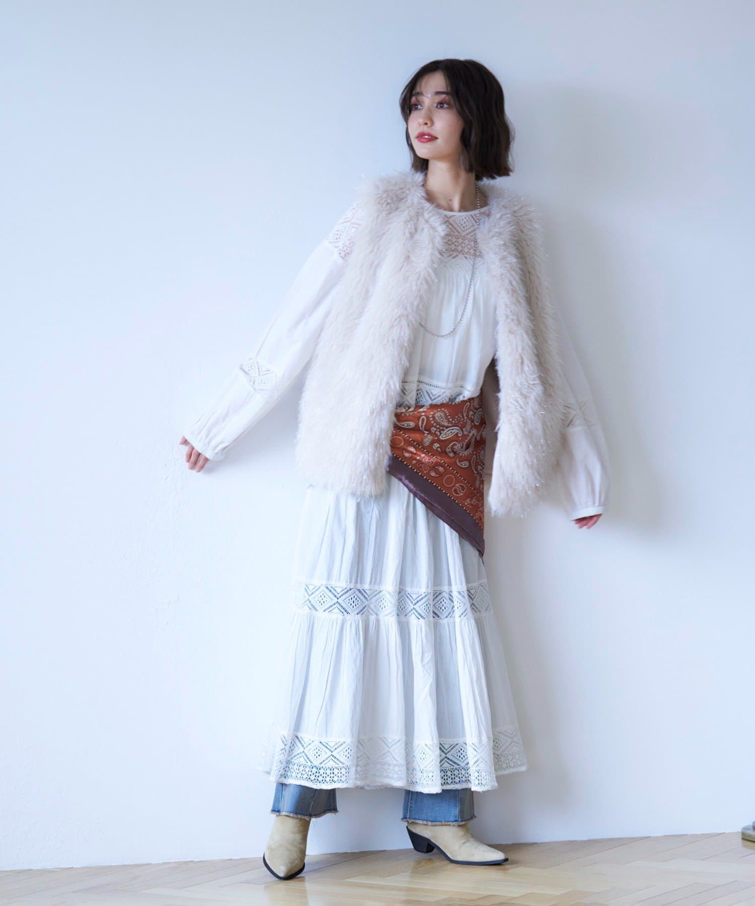 ・シンプルでありながら華やかな印象のコットンロングワンピース。