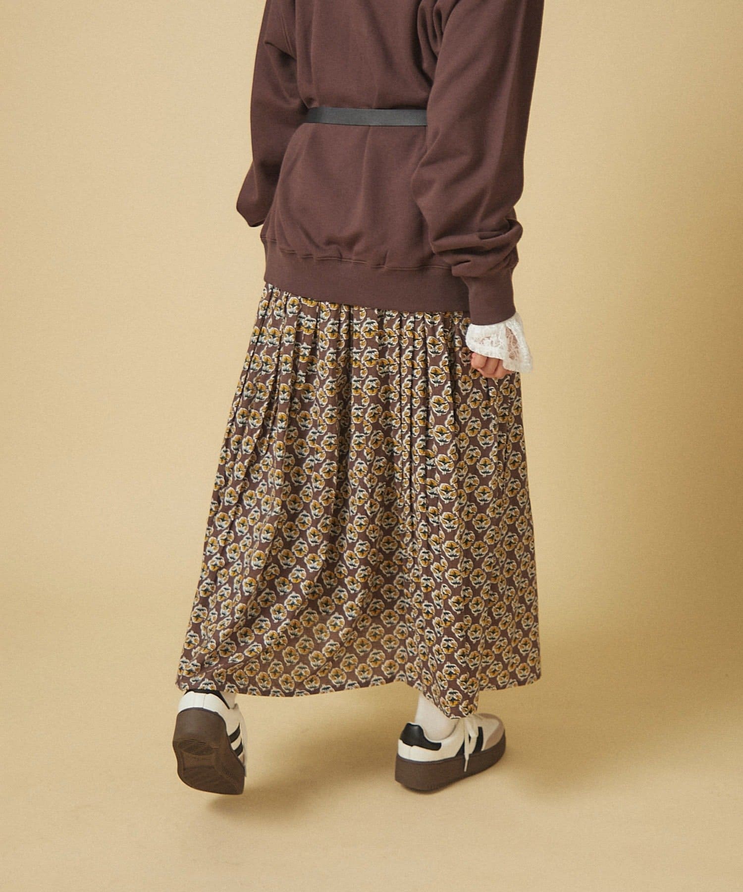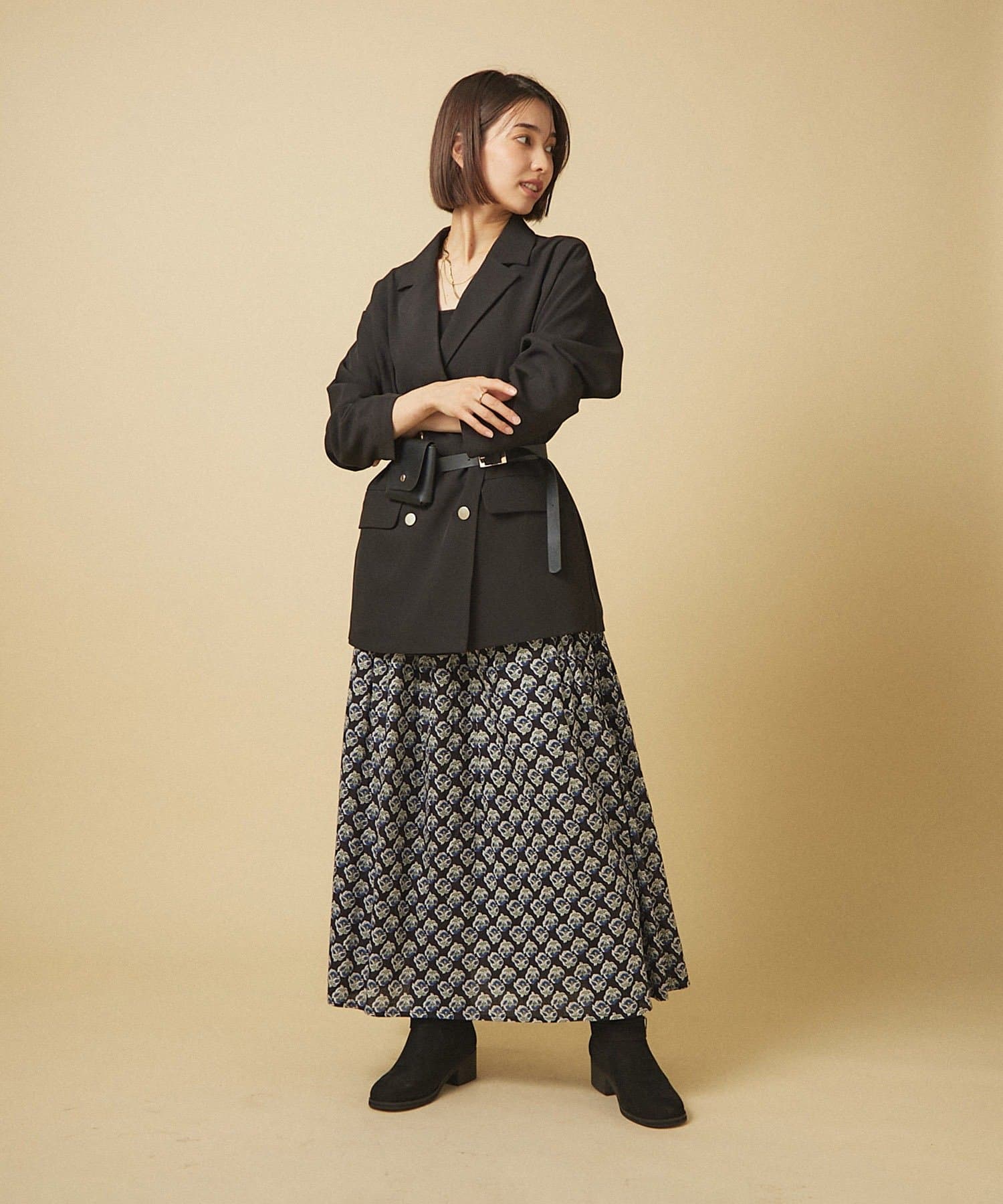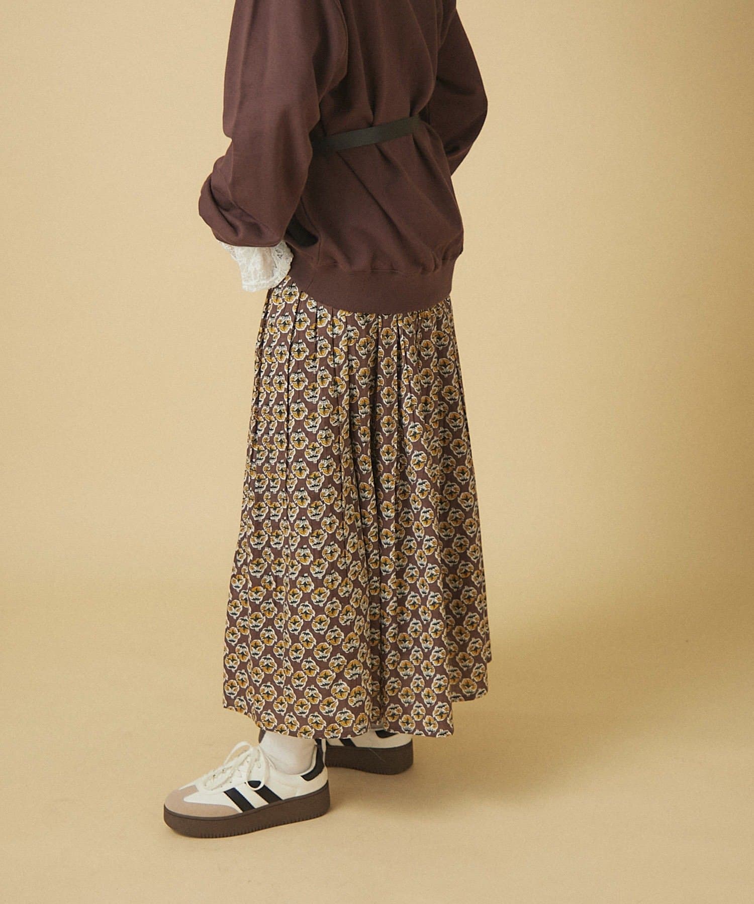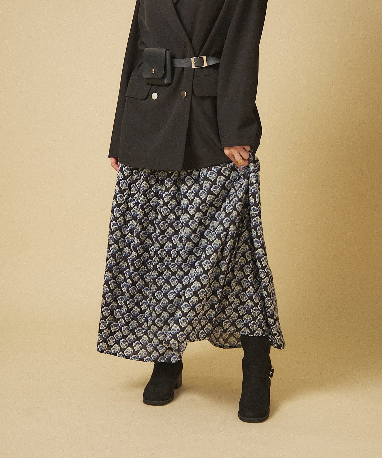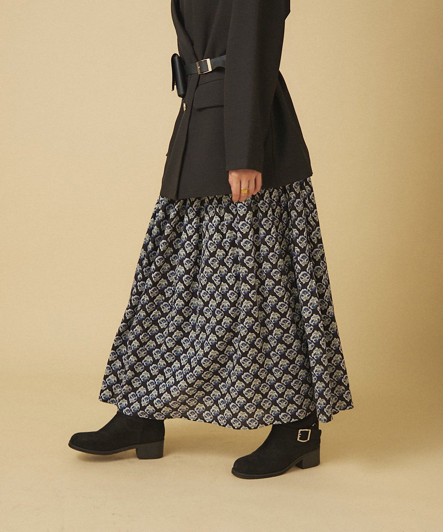 ・ウエストゴムでストレスフリーに加え、たっぷりの用尺でふわりと揺れるシルエットが贅沢で華やかな印象の1枚。