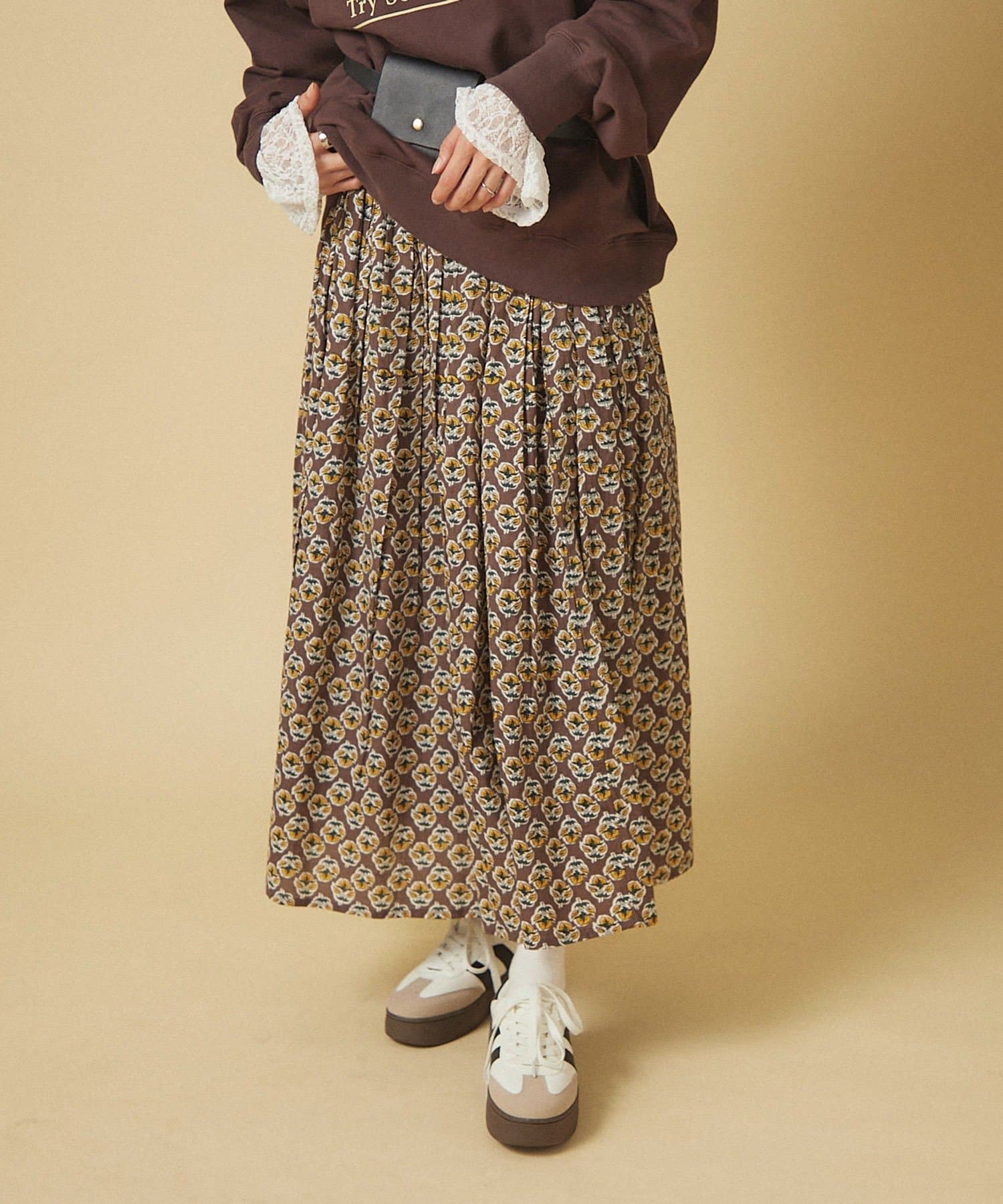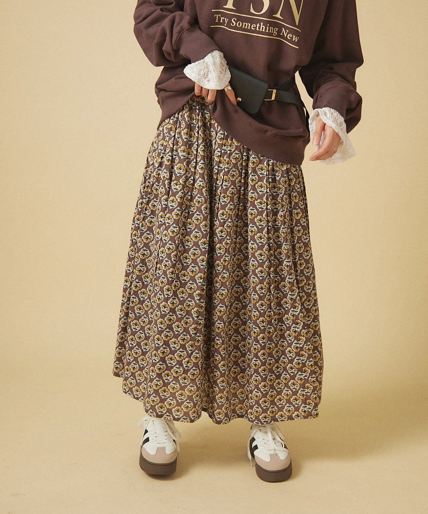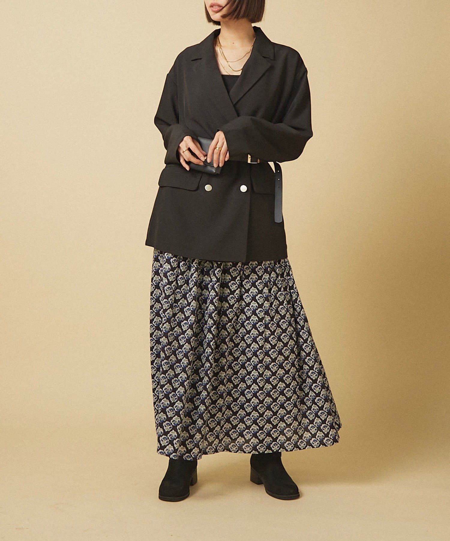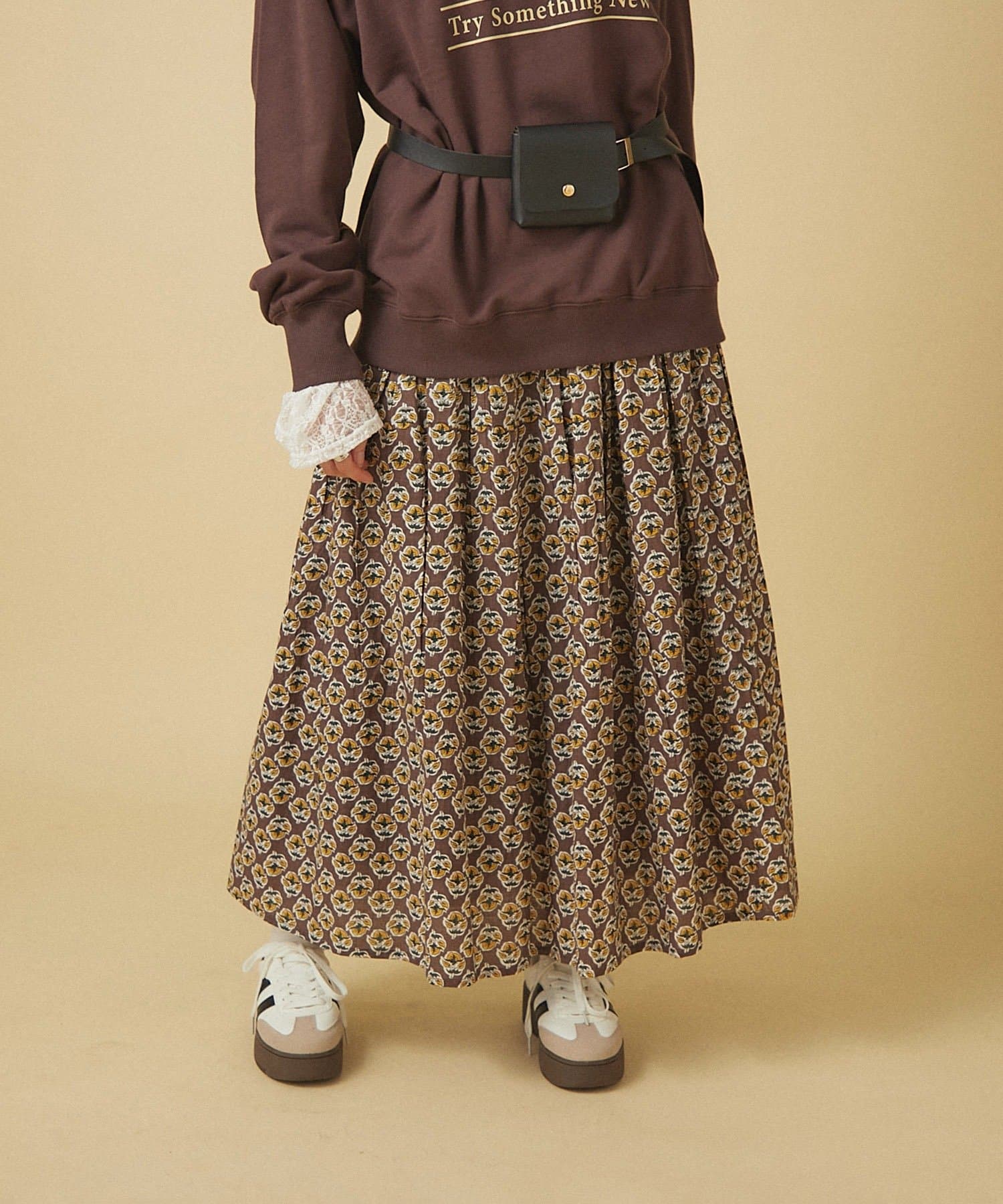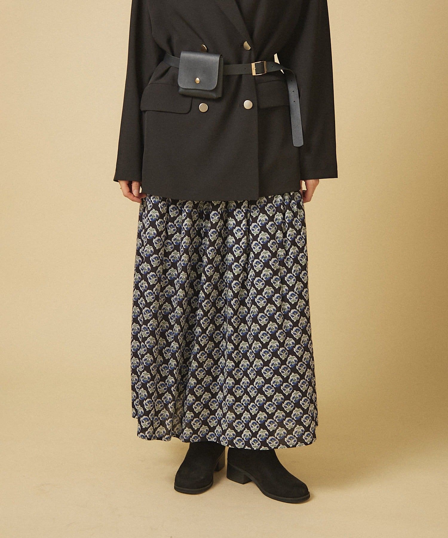 ・ウエストゴムでストレスフリーに加え、たっぷりの用尺でふわりと揺れるシルエットが贅沢で華やかな印象の1枚。