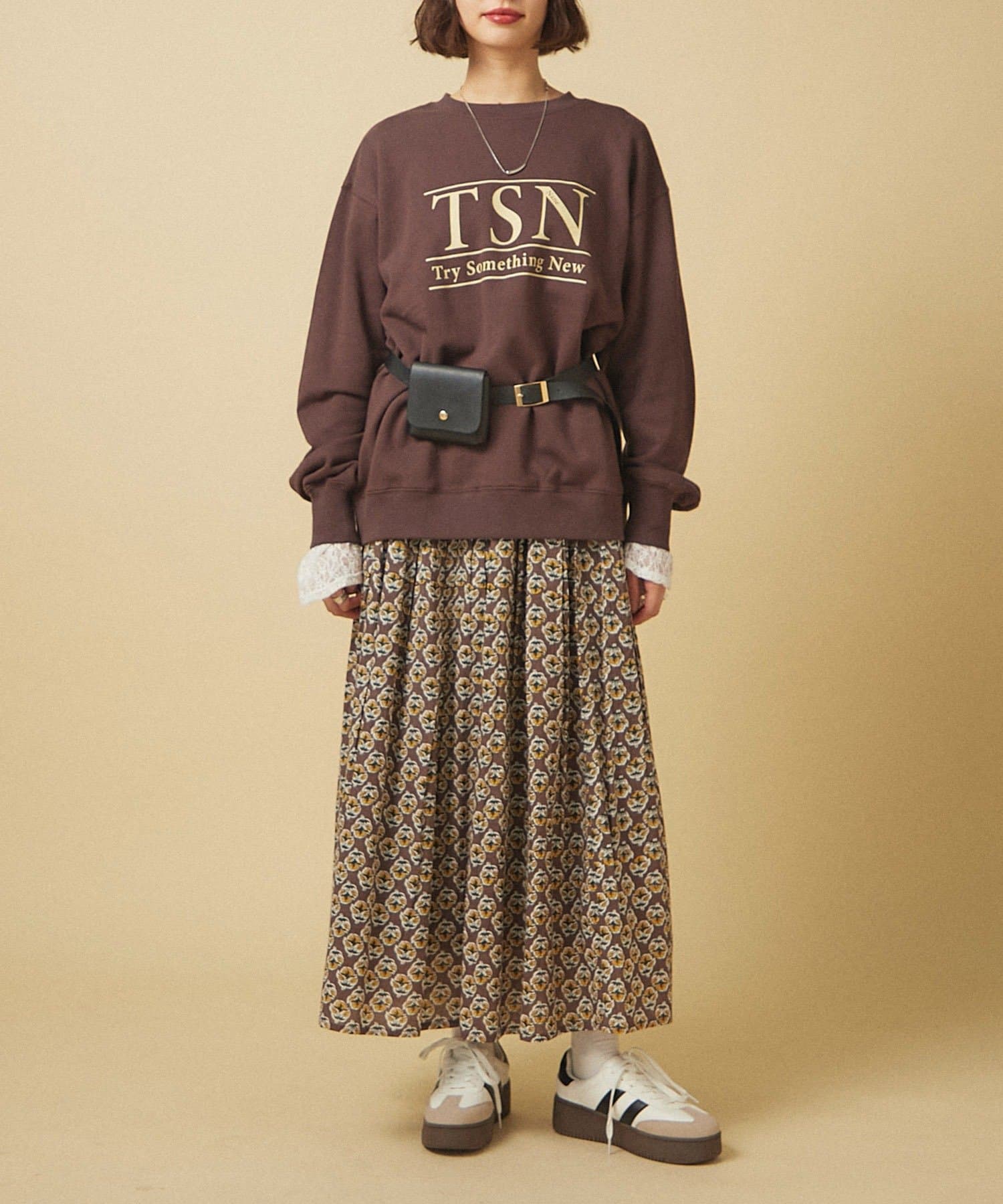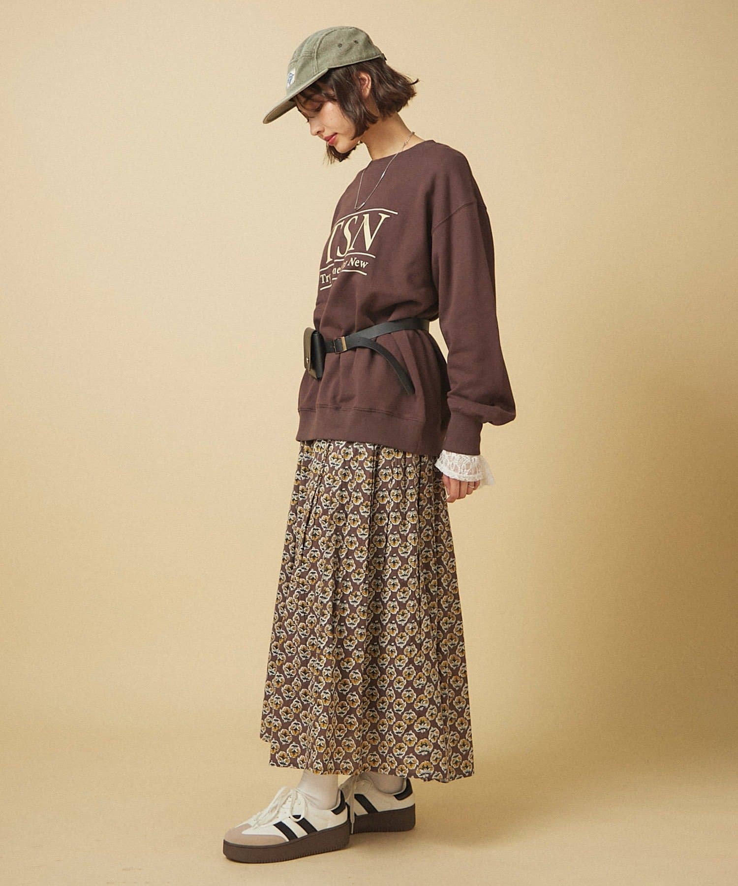 ・【nane】ピグメント加工ロゴTシャツ(5052180230)や【nane】ヴィンテージ加工スエットプルオーバー(5052180220)のカジュアルアイテムとの相性は抜群でシンプルコーデにこそ映えるスカートなのでオススメです。