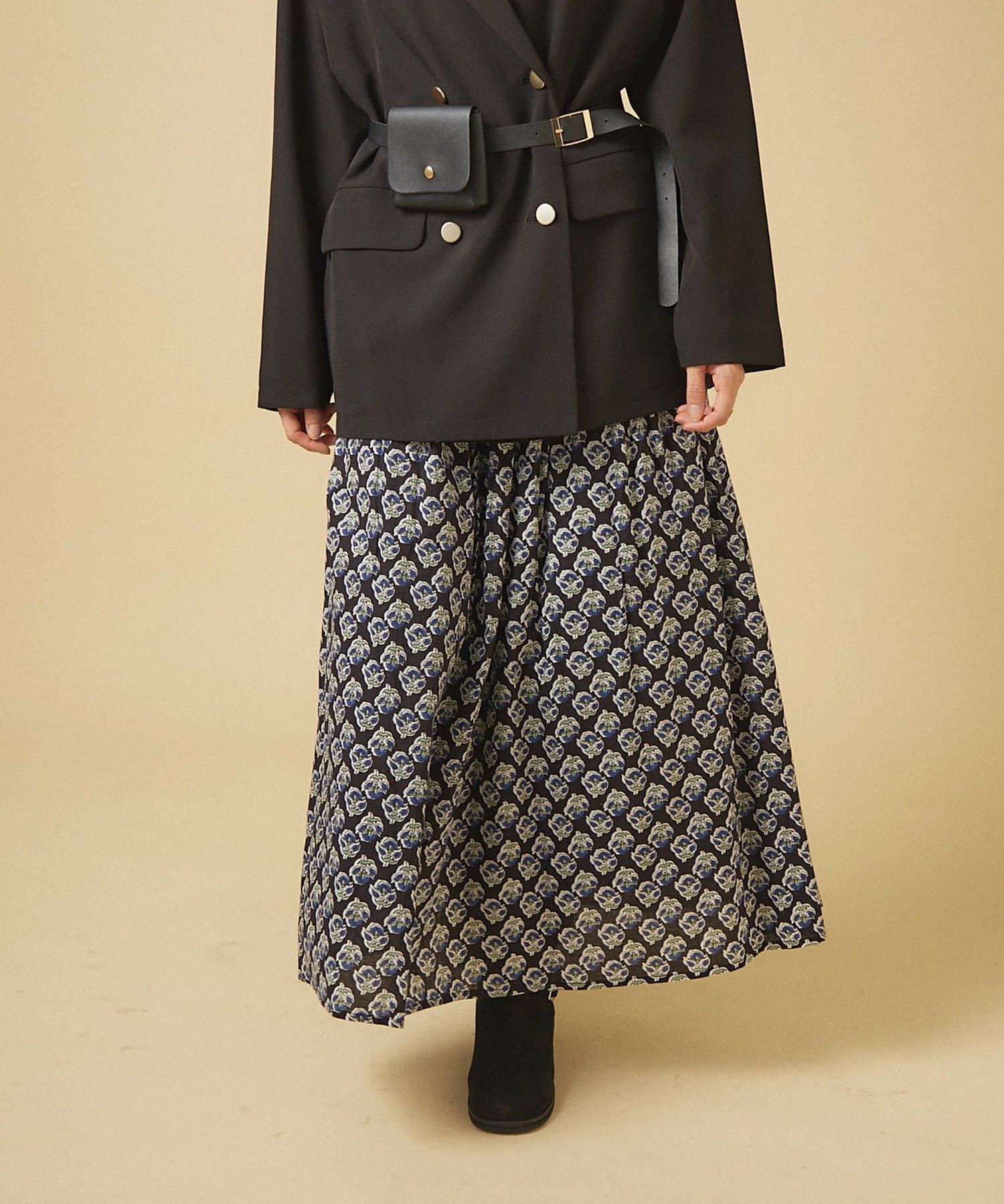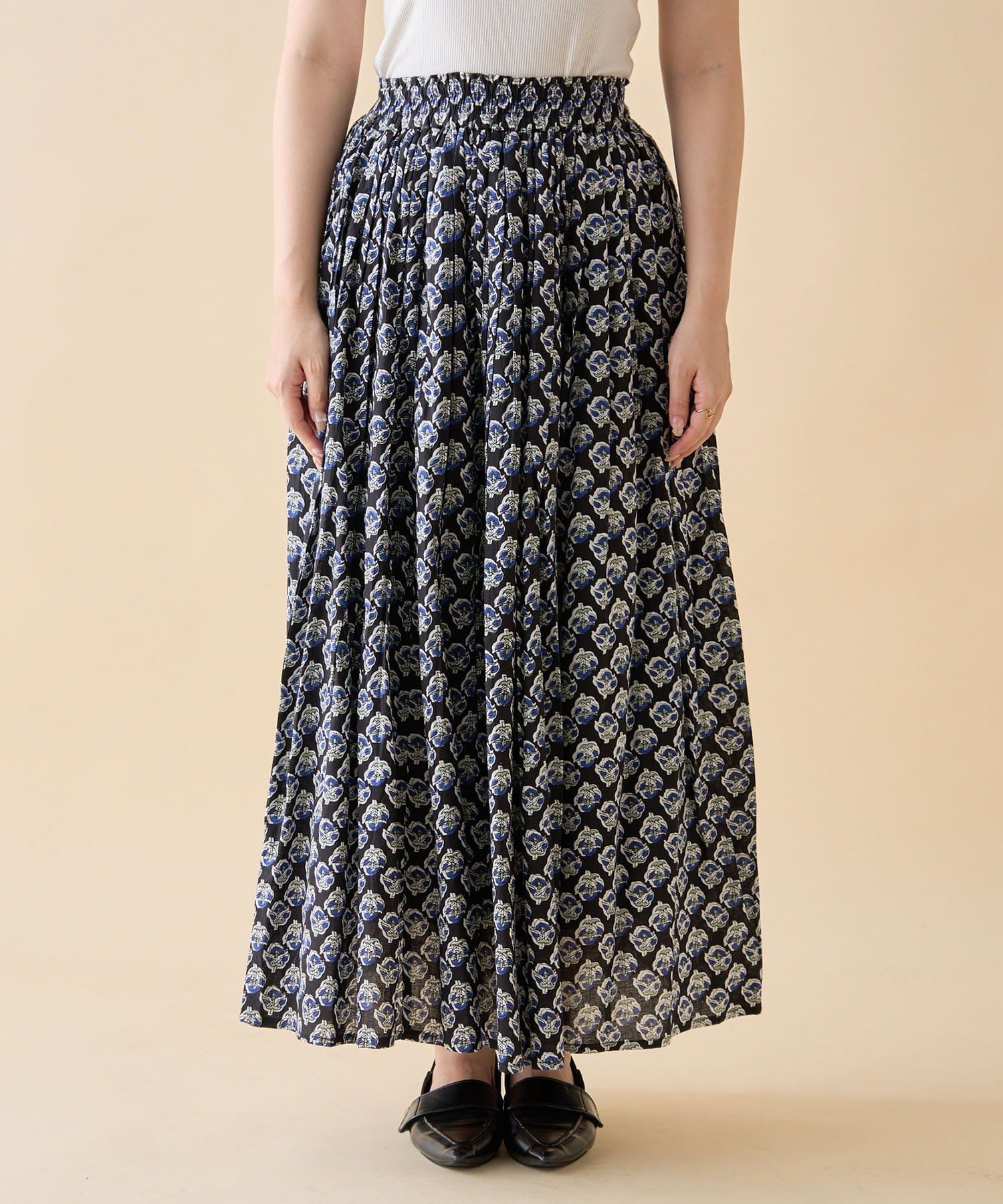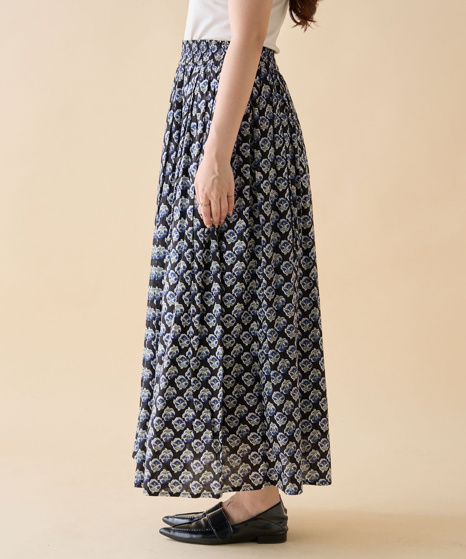 ・インドの職人による1つ1つハンドプリントされた柄が映えるスカートです。