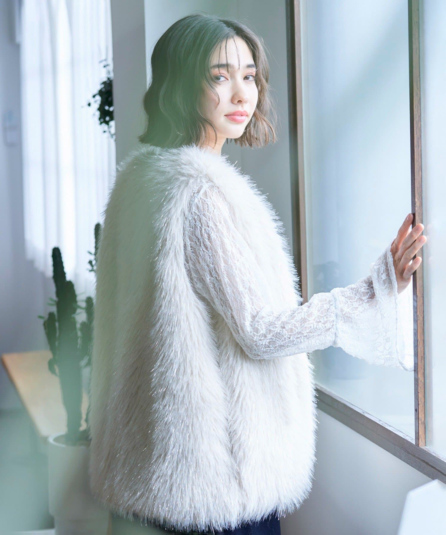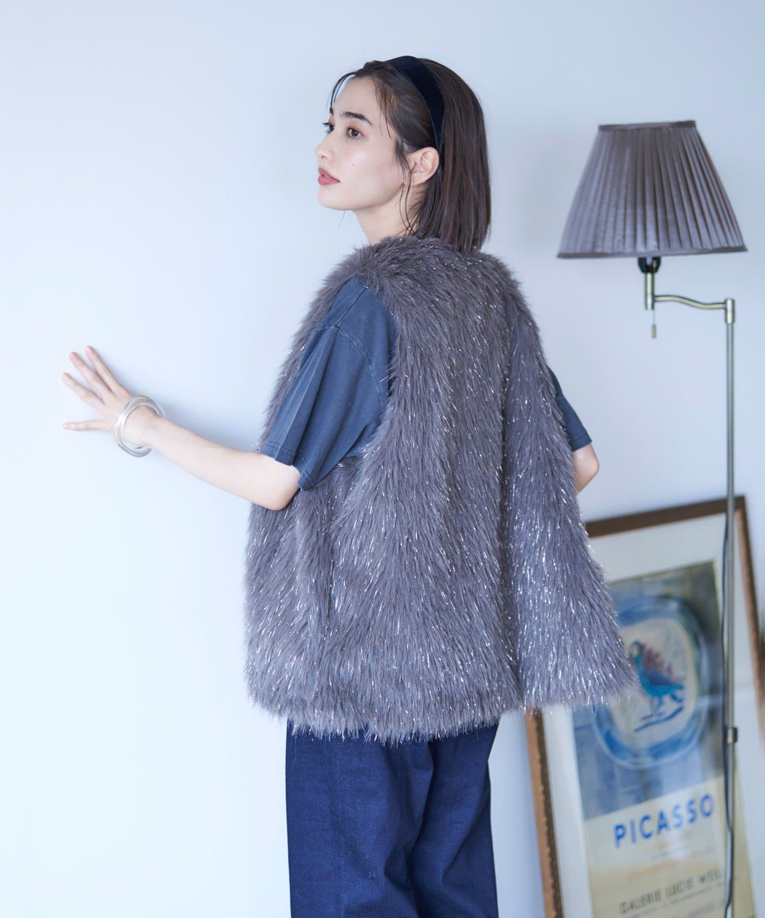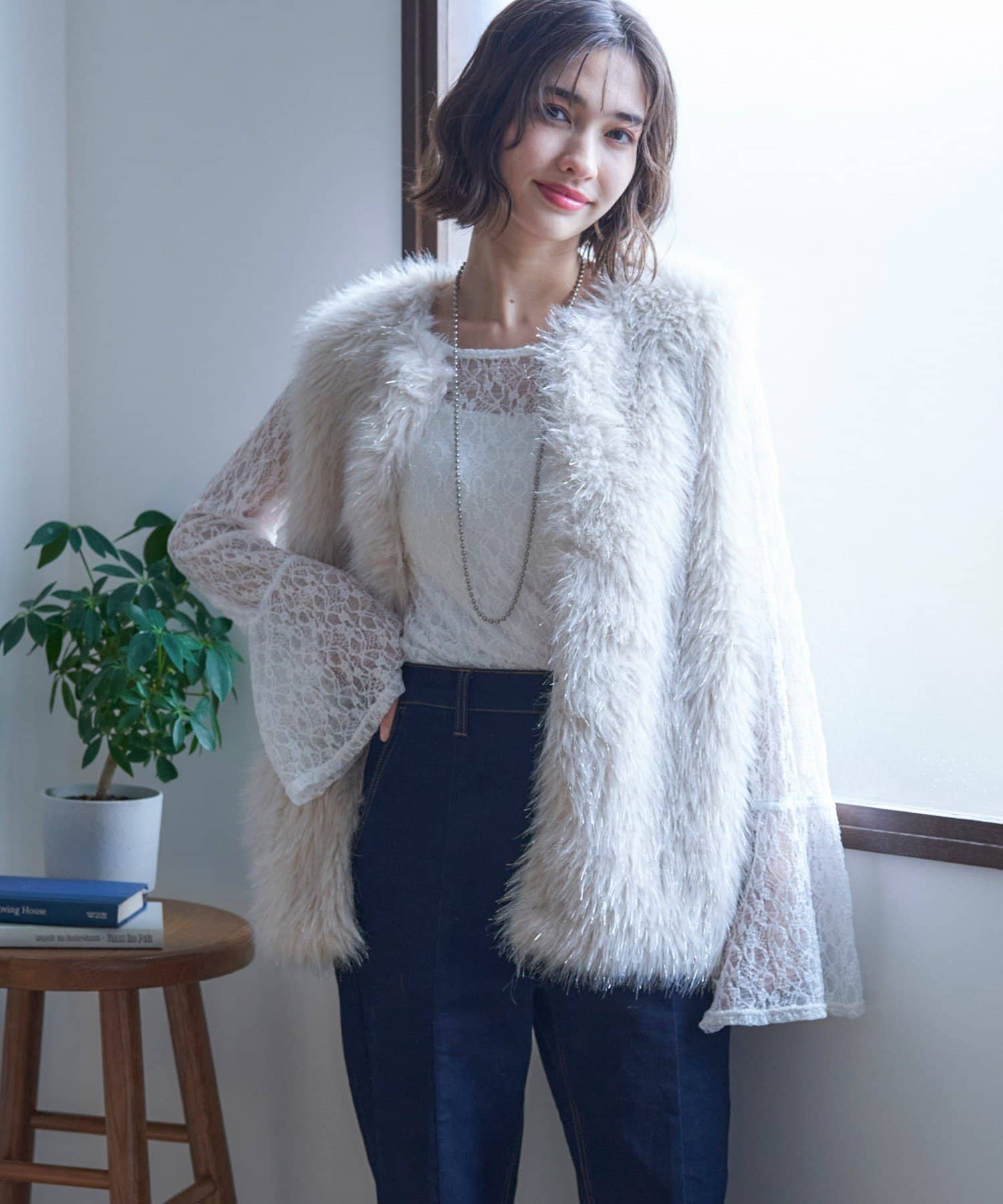 ・毛足のあるラメ糸でより今年っぽい雰囲気に。