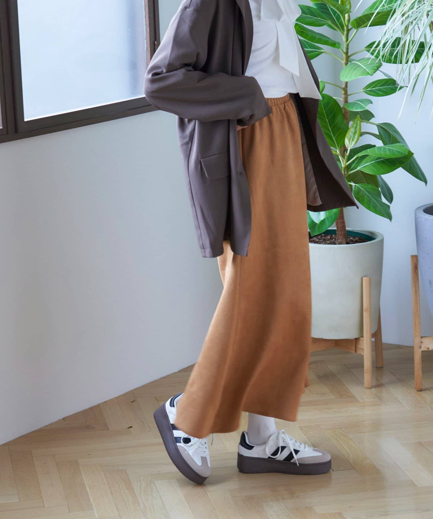 ・足元は秋らしくブーツで合わせると季節感もグッとUP。スニーカーも好相性◎