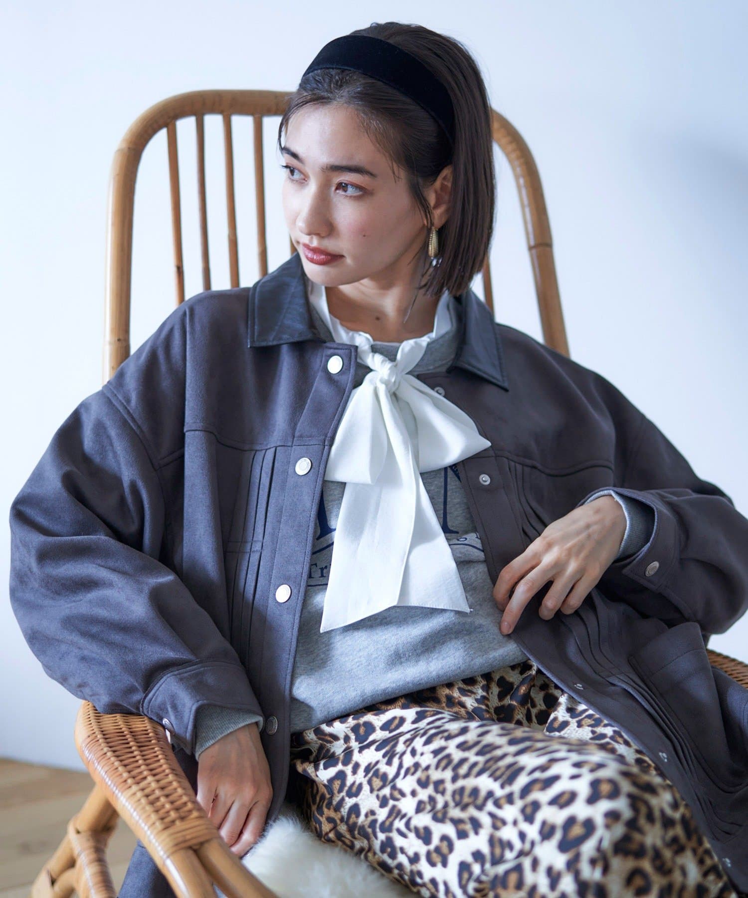・【nane】ボウタイブラウス(5052180260)をインナーに仕込めばワンランク上のカジュアルスタイルも楽しめます。