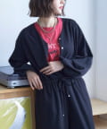 ・Vネックが顔まわりをすっきり見せてくれ、アンティークなピンクゴールドの釦がカジュアルながらも洗練された印象を与えてくれる1着。