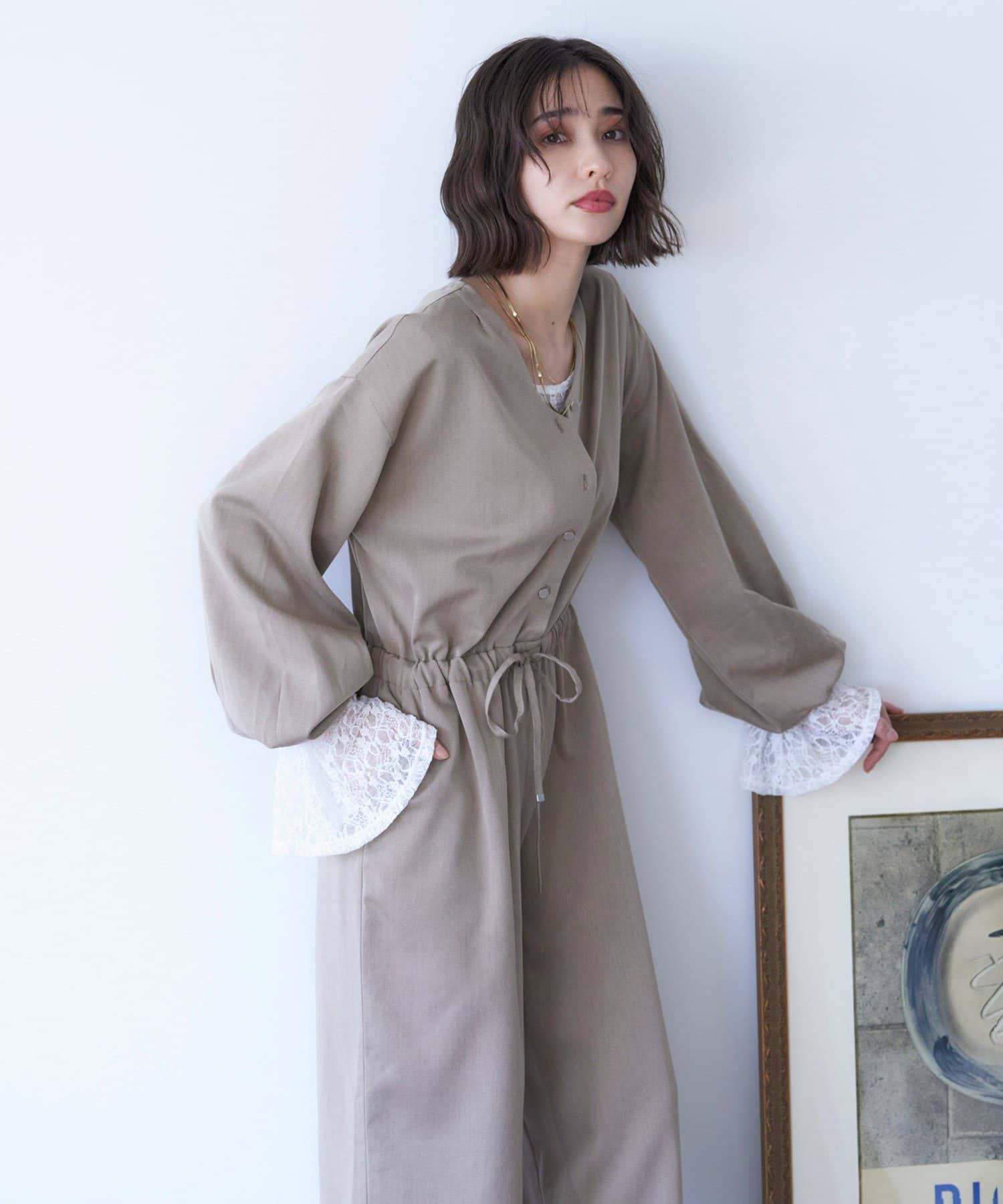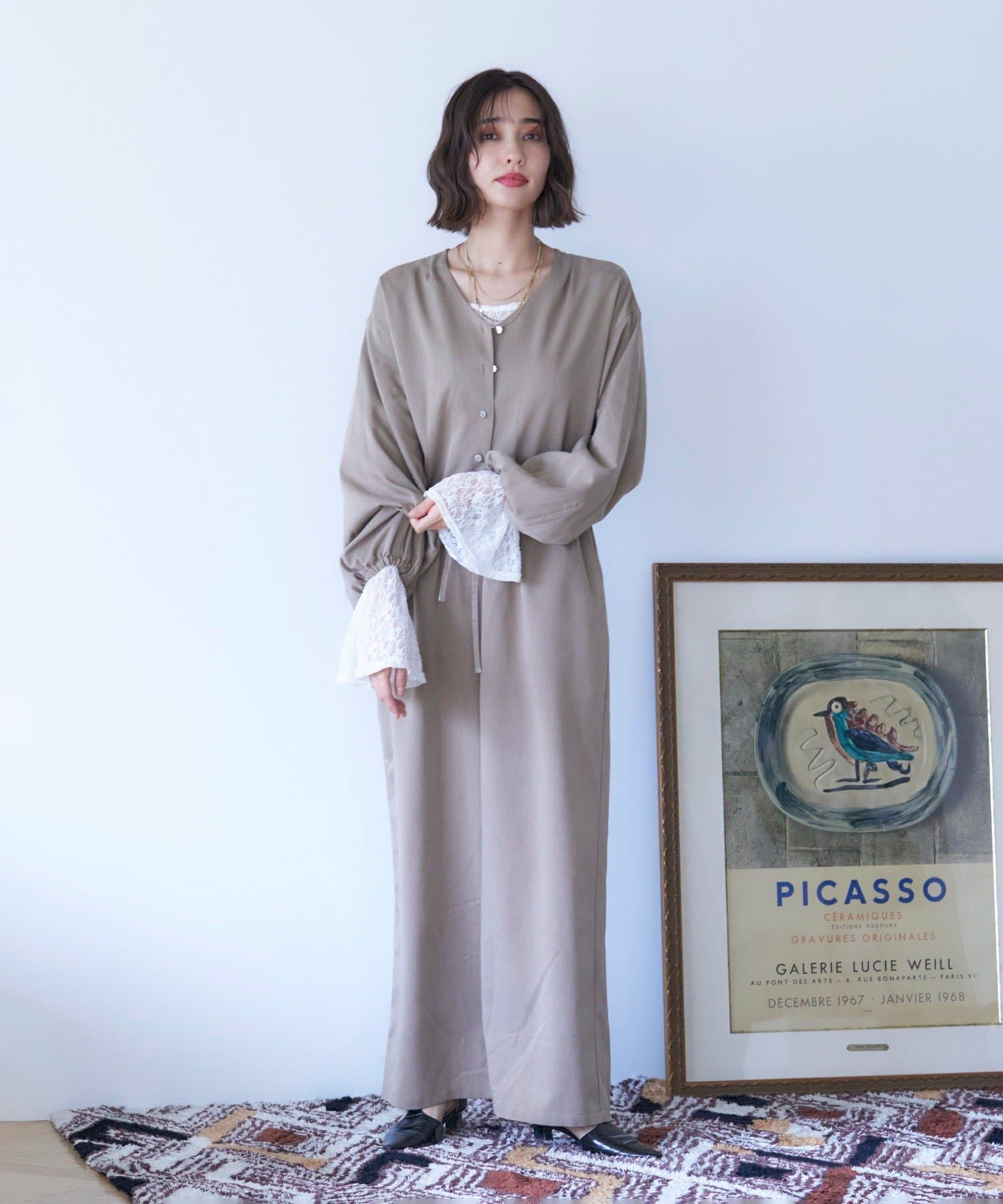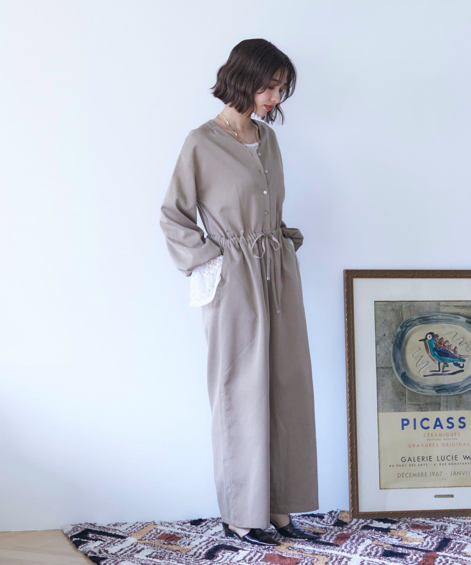 ・着るだけでコーデが完成するので足元をスニーカーでラフに、パンプスで綺麗めにと幅広いシーンに着て頂けます。