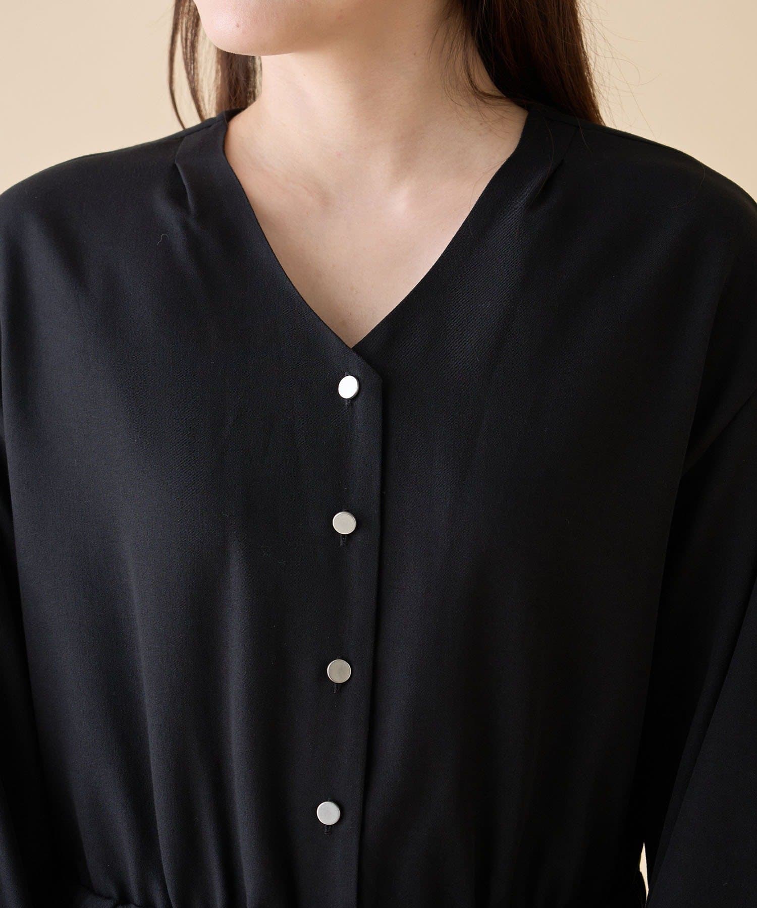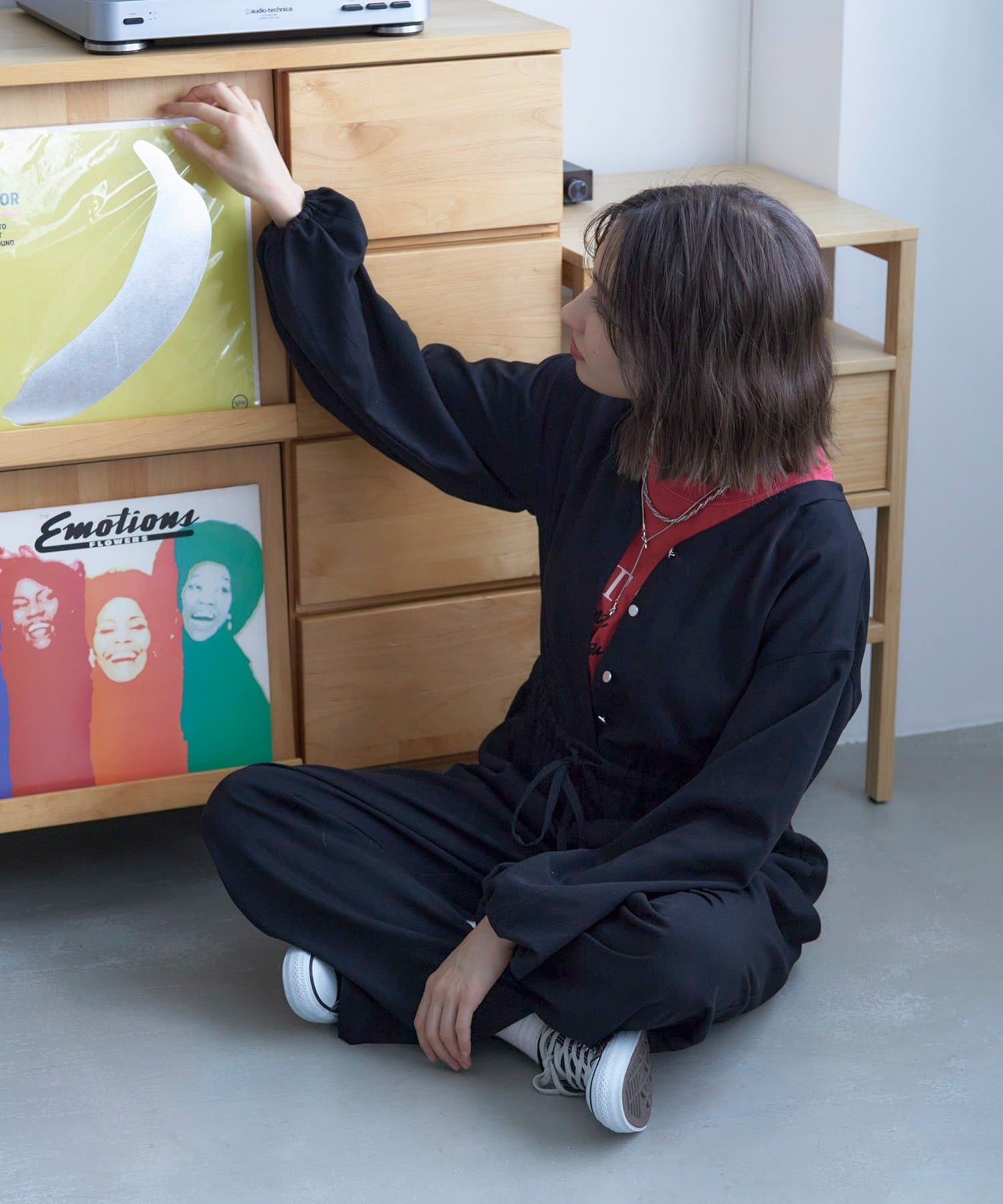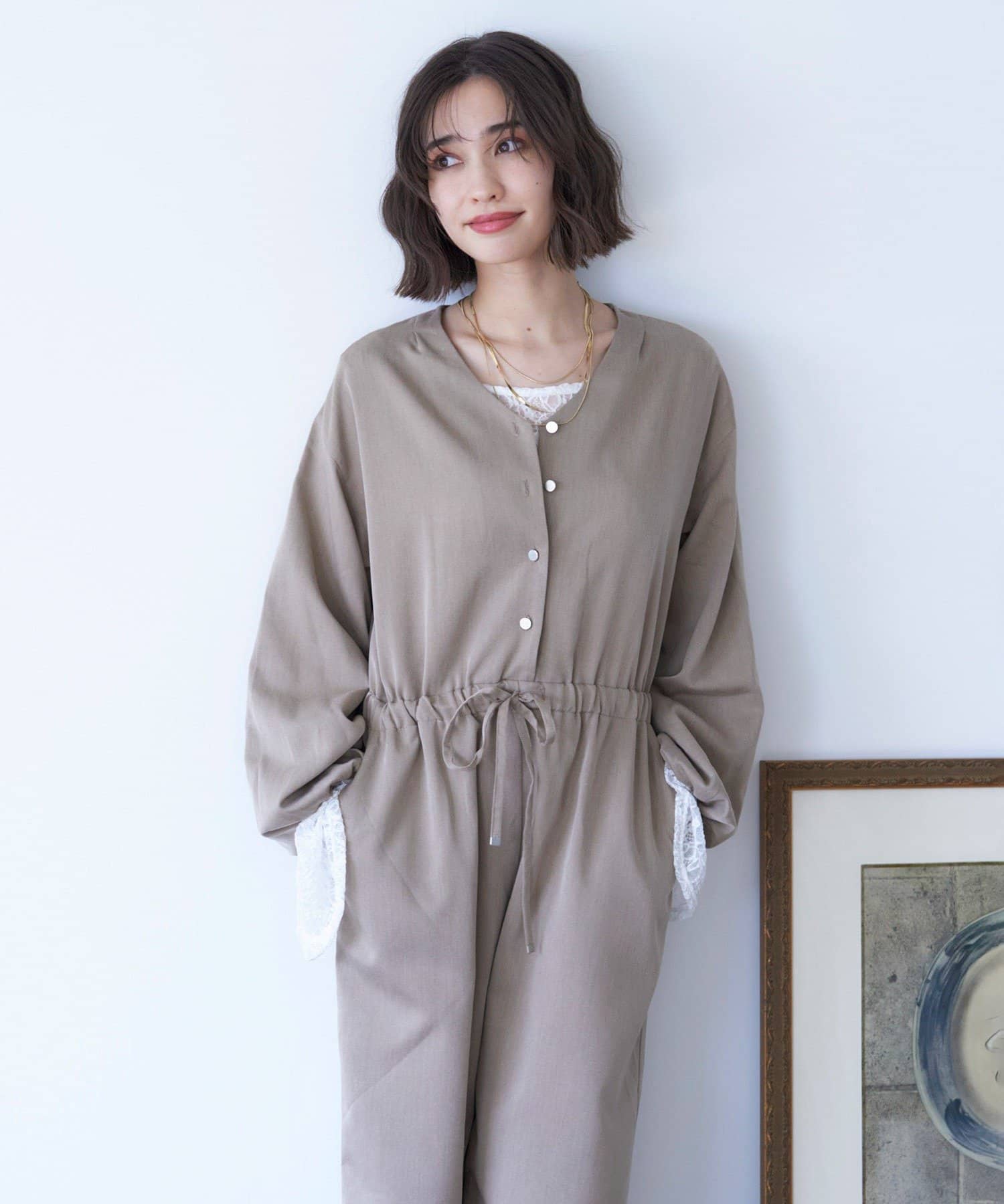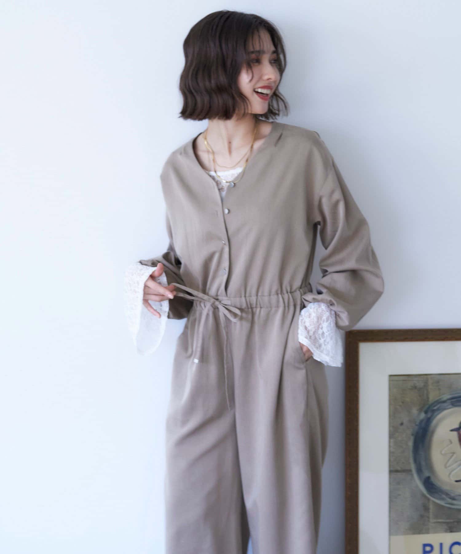 ・着るだけでコーデが完成するので足元をスニーカーでラフに、パンプスで綺麗めにと幅広いシーンに着て頂けます。