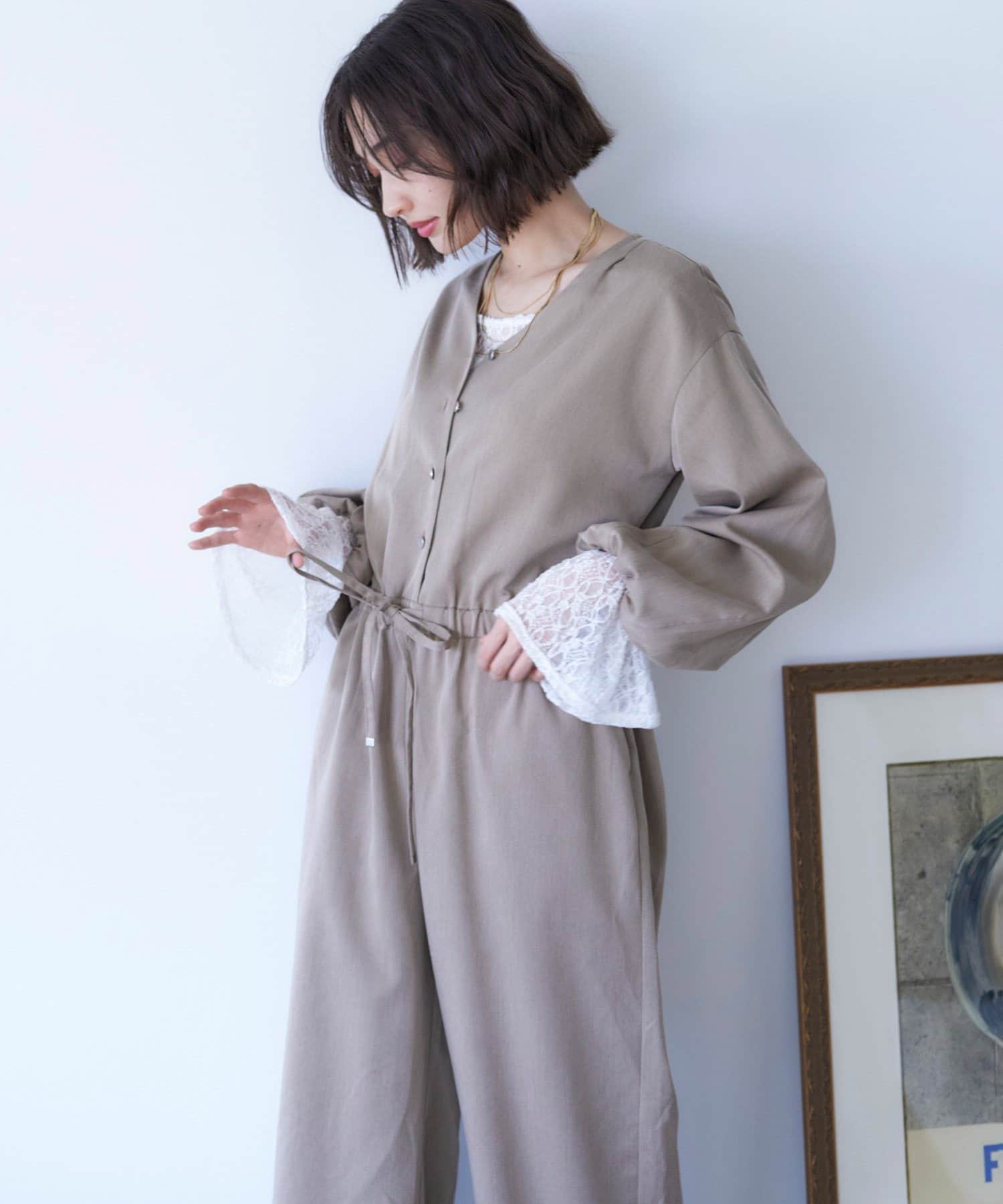 【nane】《サイズ展開有》ボリュームスリーブオールインワン