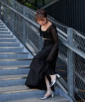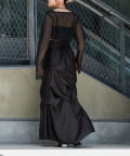 ・タックが印象的で華やかなデザイン。ボリューム感と細見えが同時にかなうようにタックの位置にこだわりました。