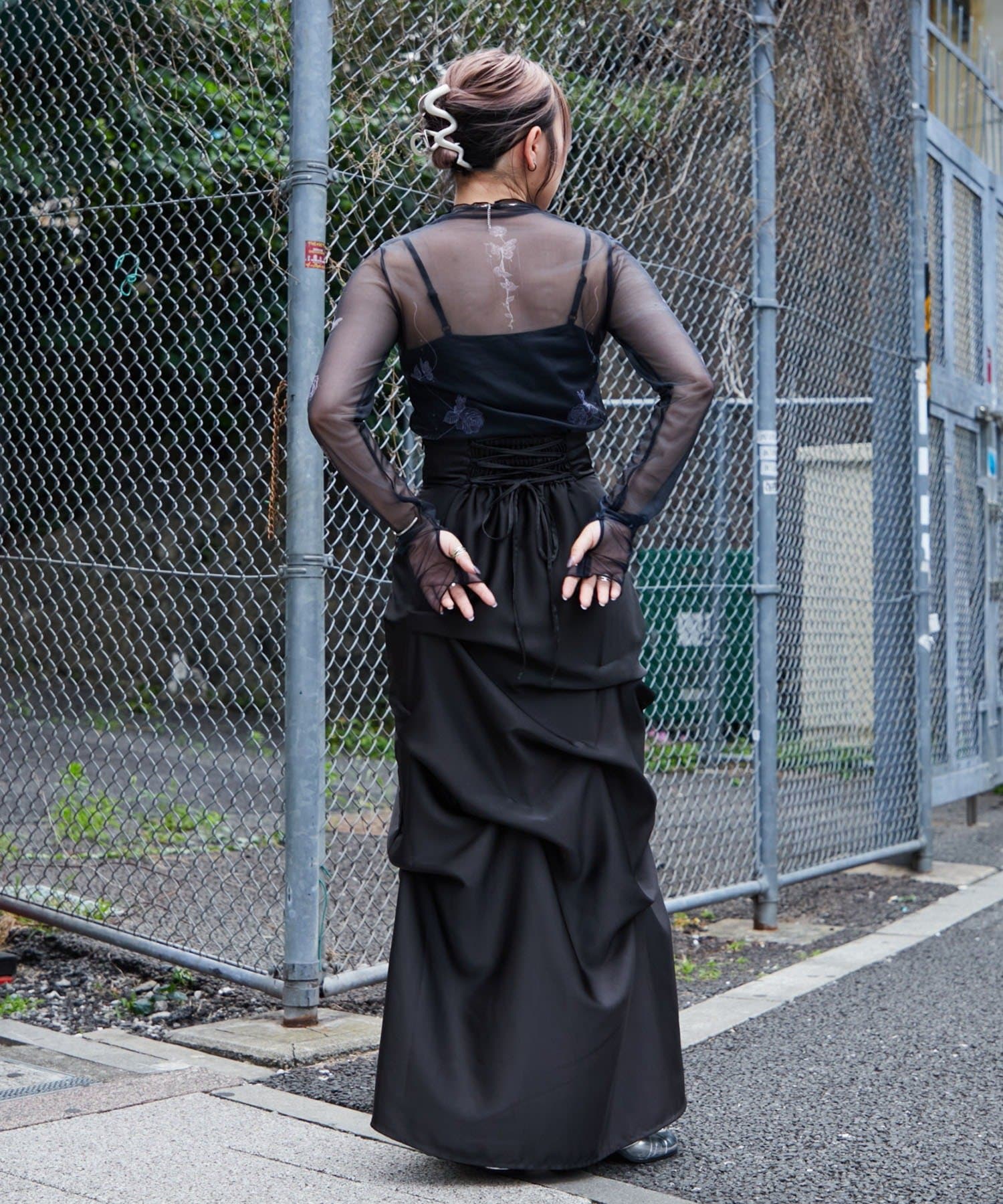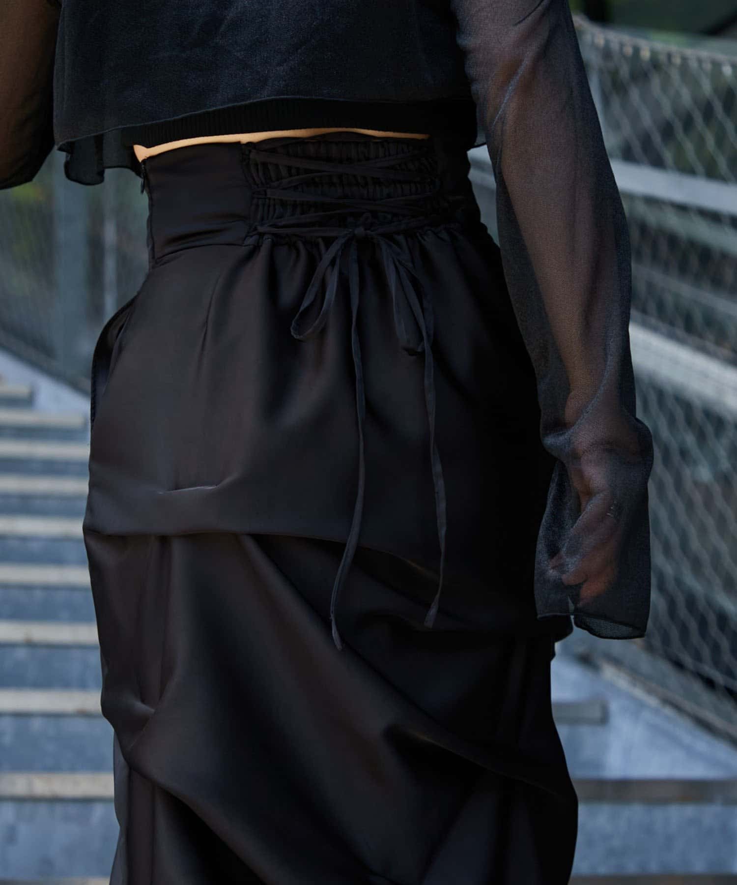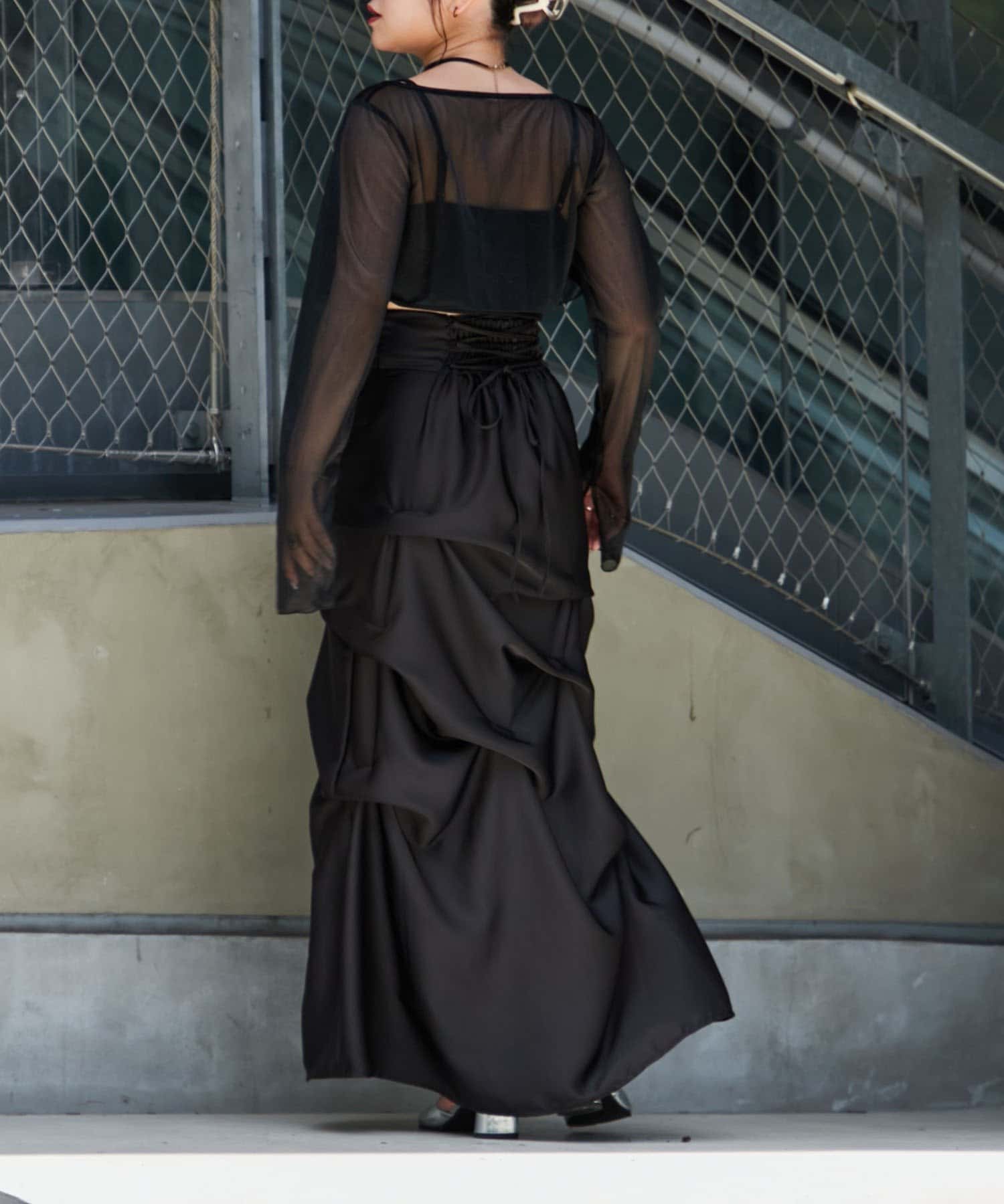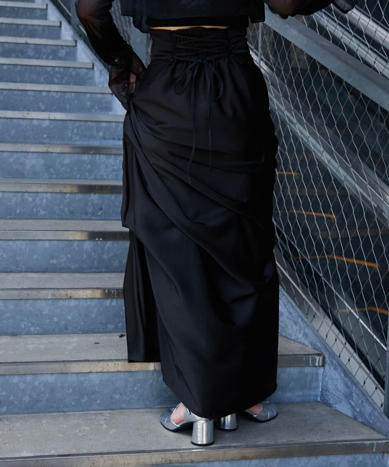 【Mavie..7】後ろレースアップサテンタックスカート