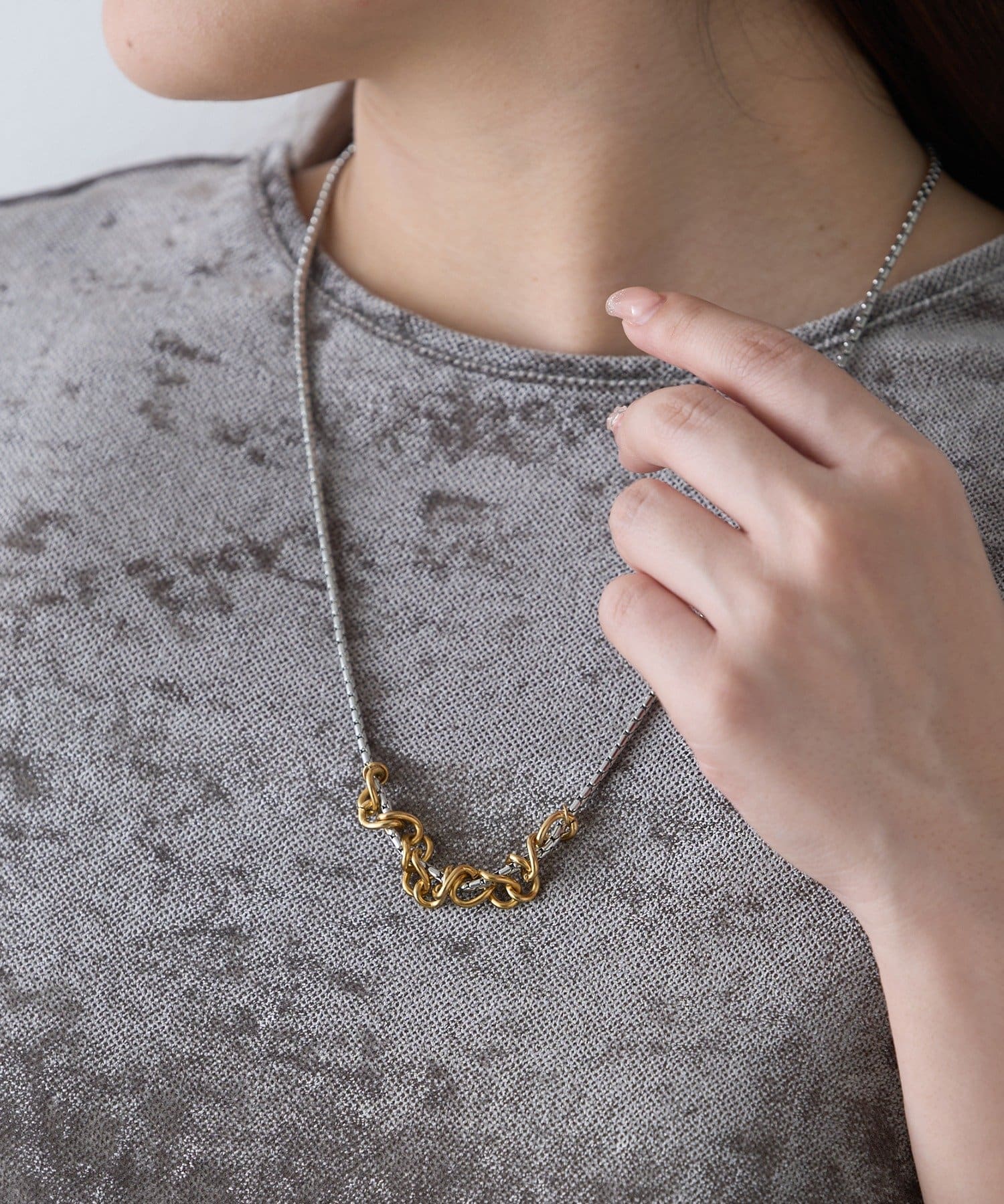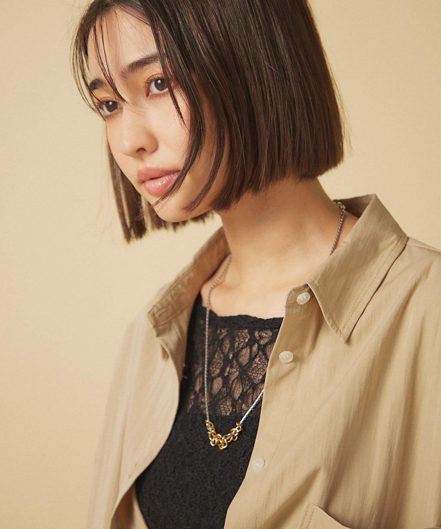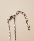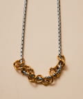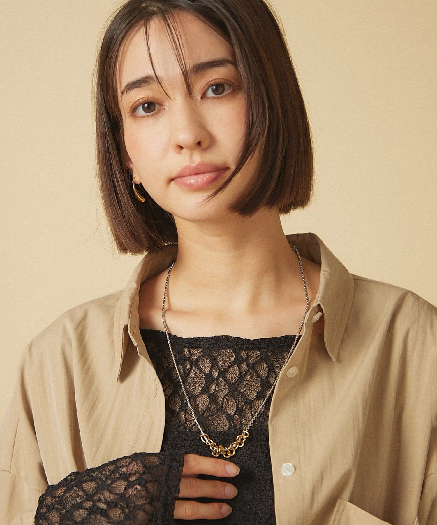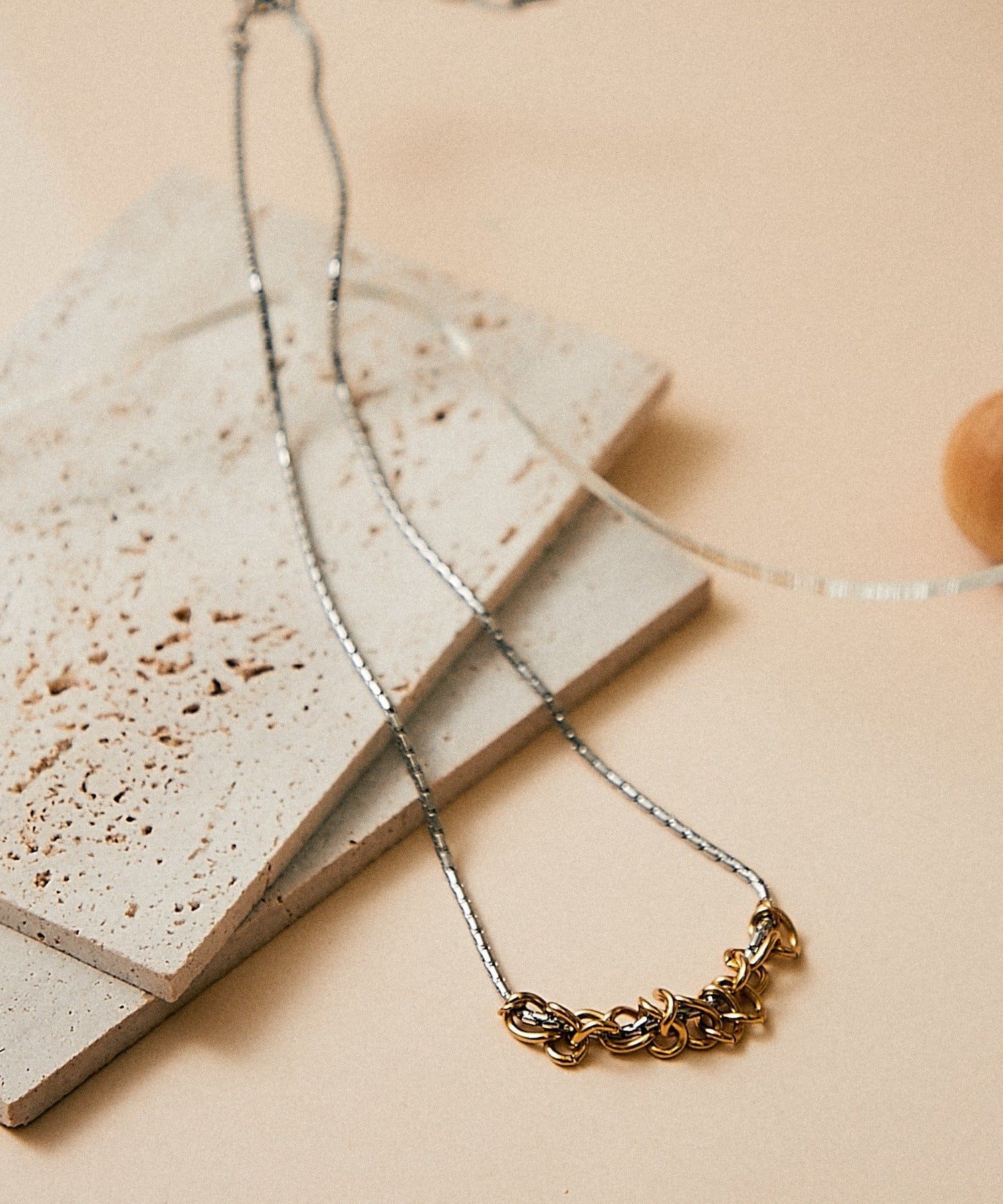 ・シルバーのチェーンにゴールドのサークルパーツが連なったデザインがポイント