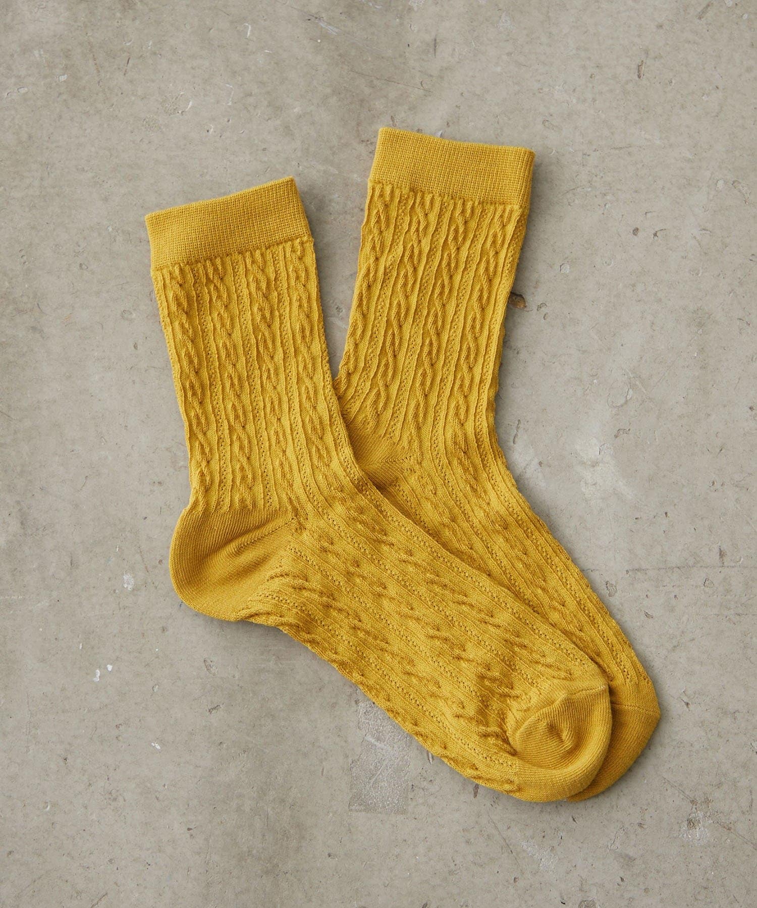 ・どんなシューズとも合わせやすいケーブルデザインのソックス