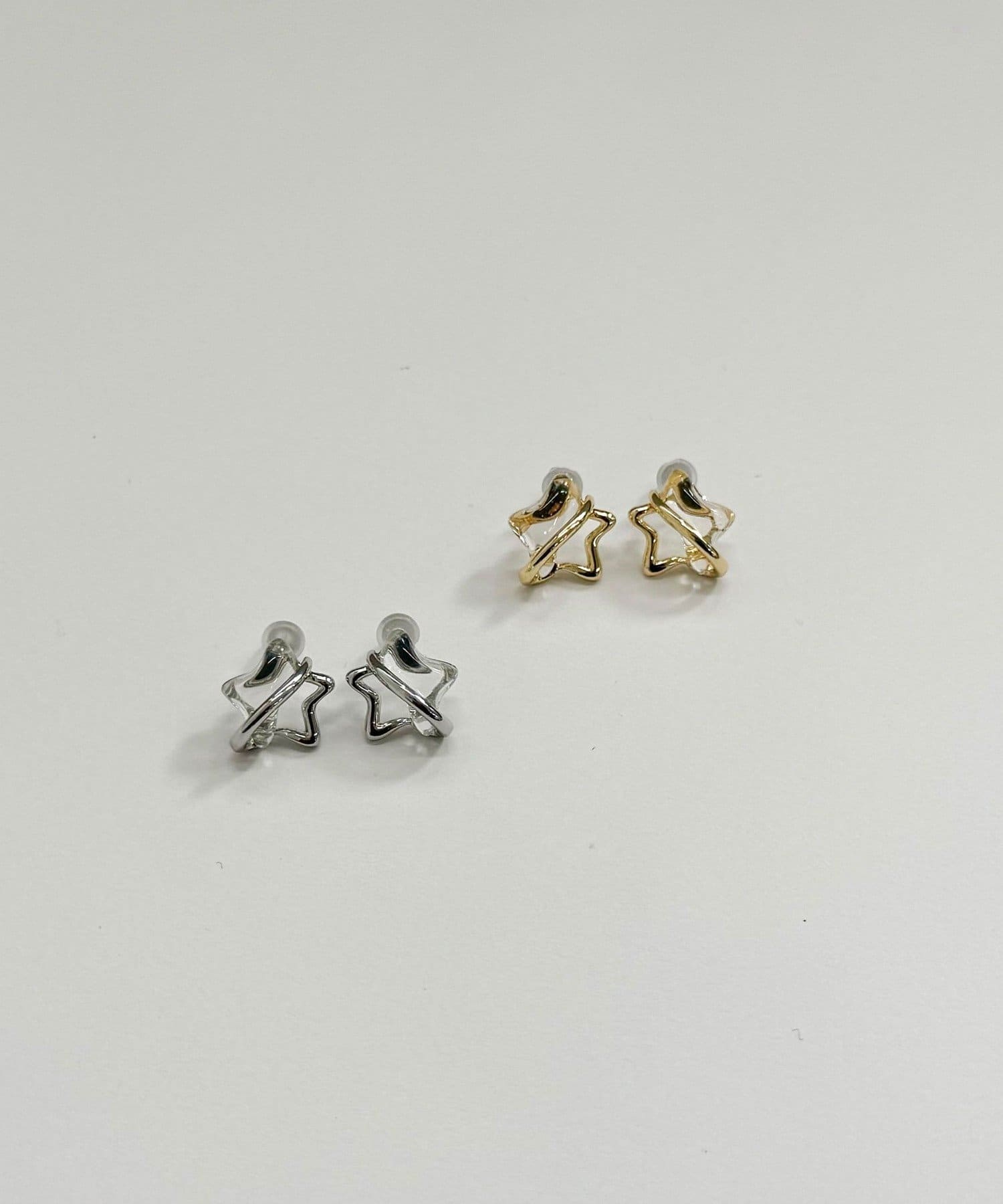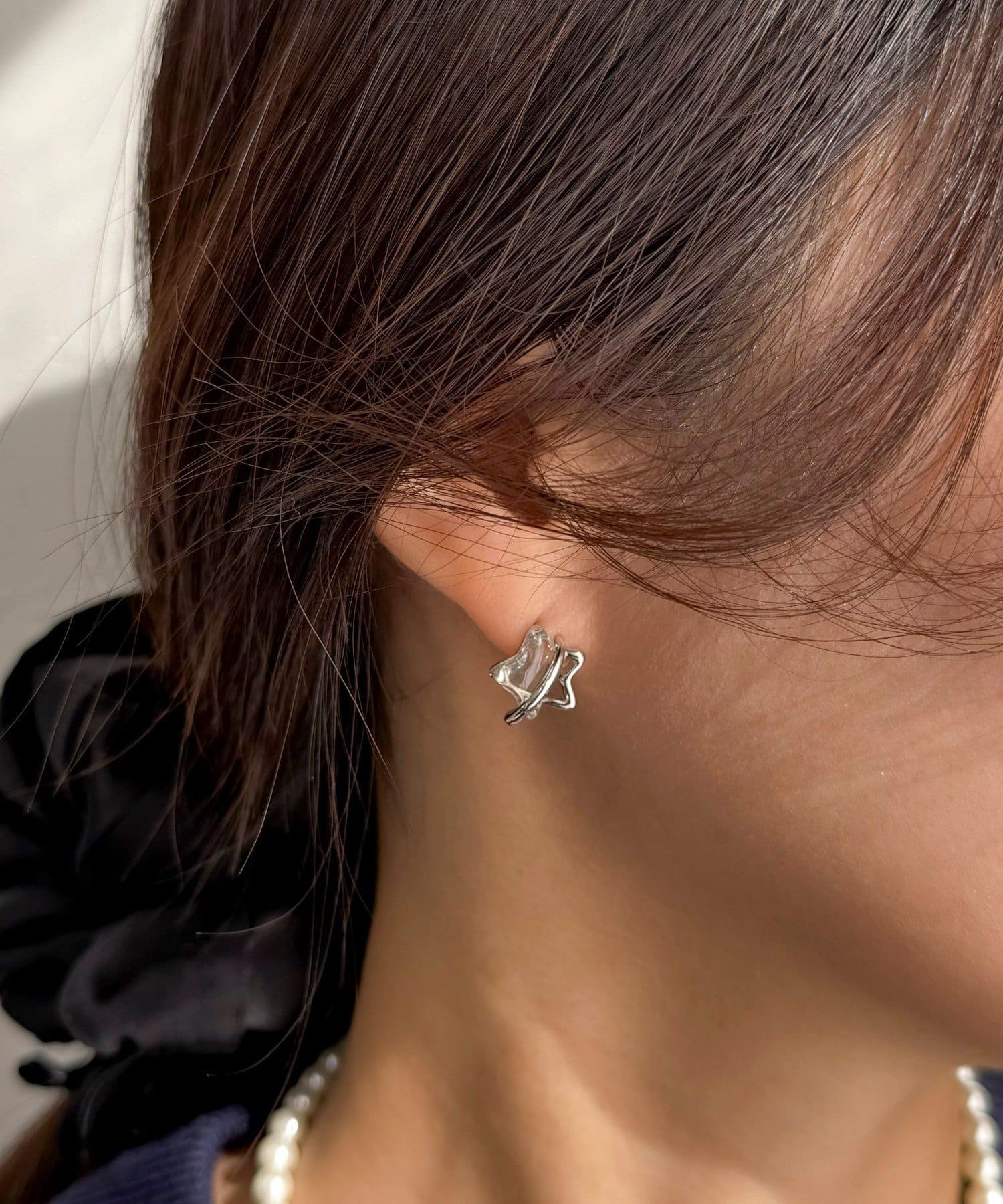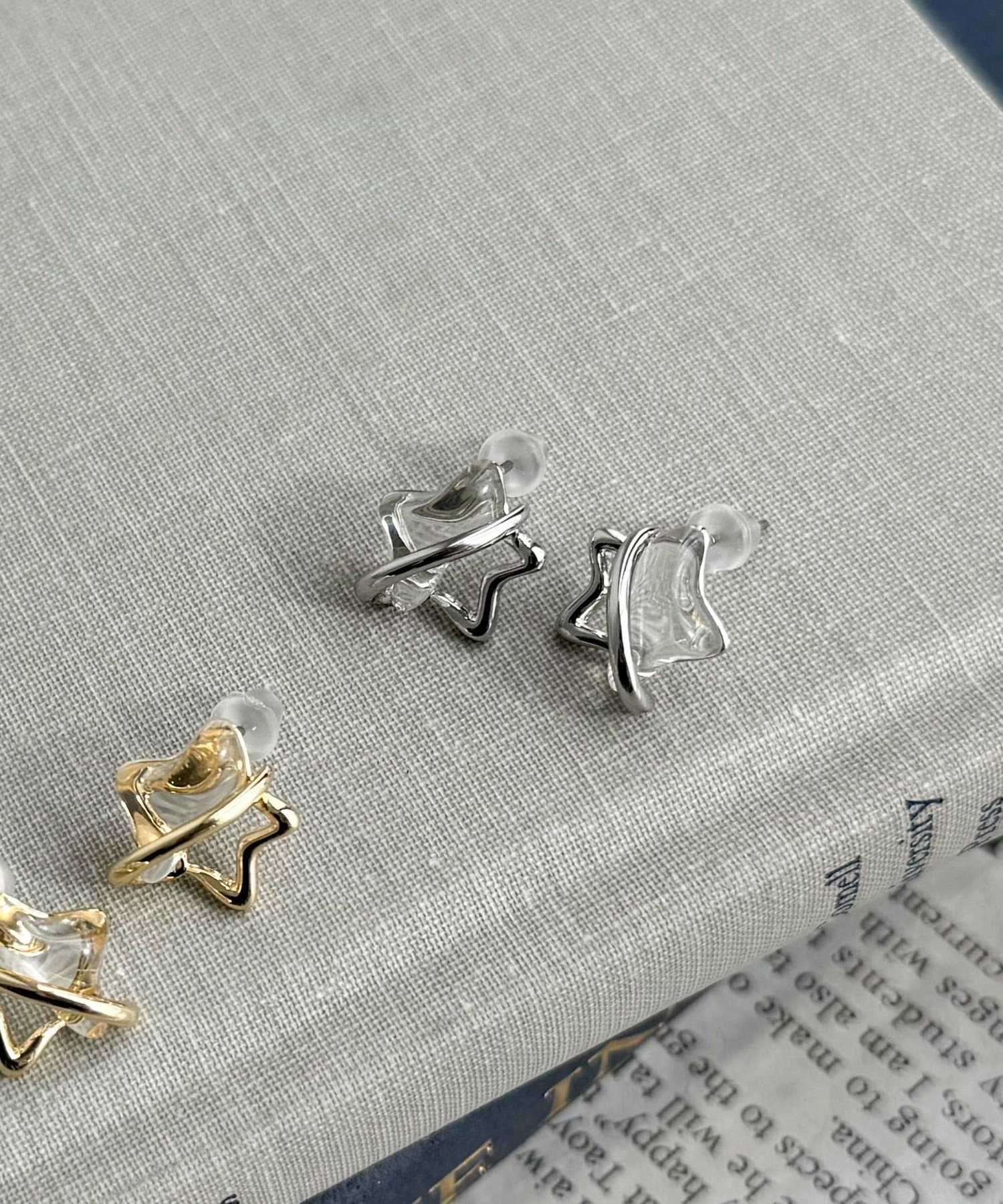 耳元に存在感を与えてくれるメタル&クリア星ピアス