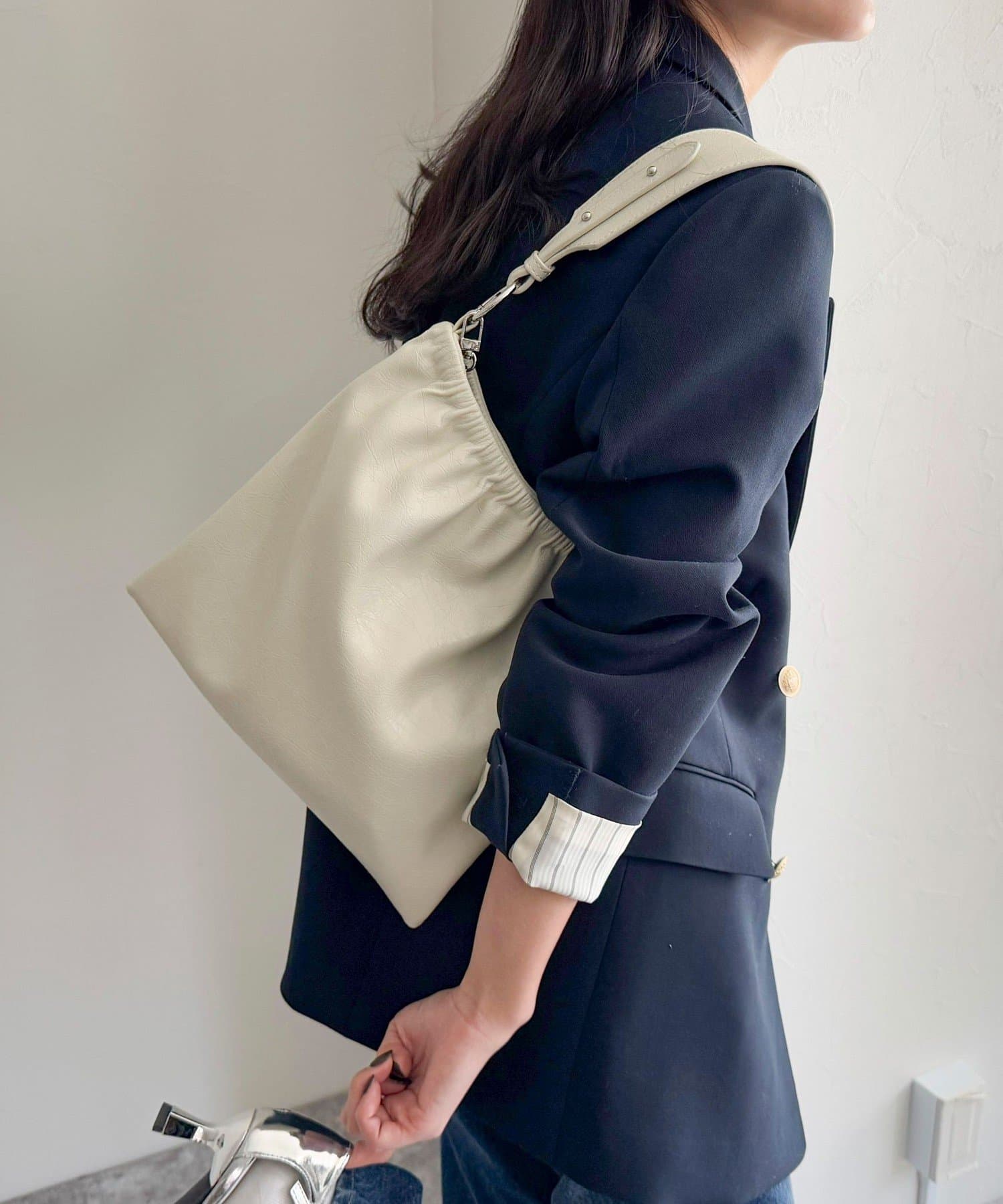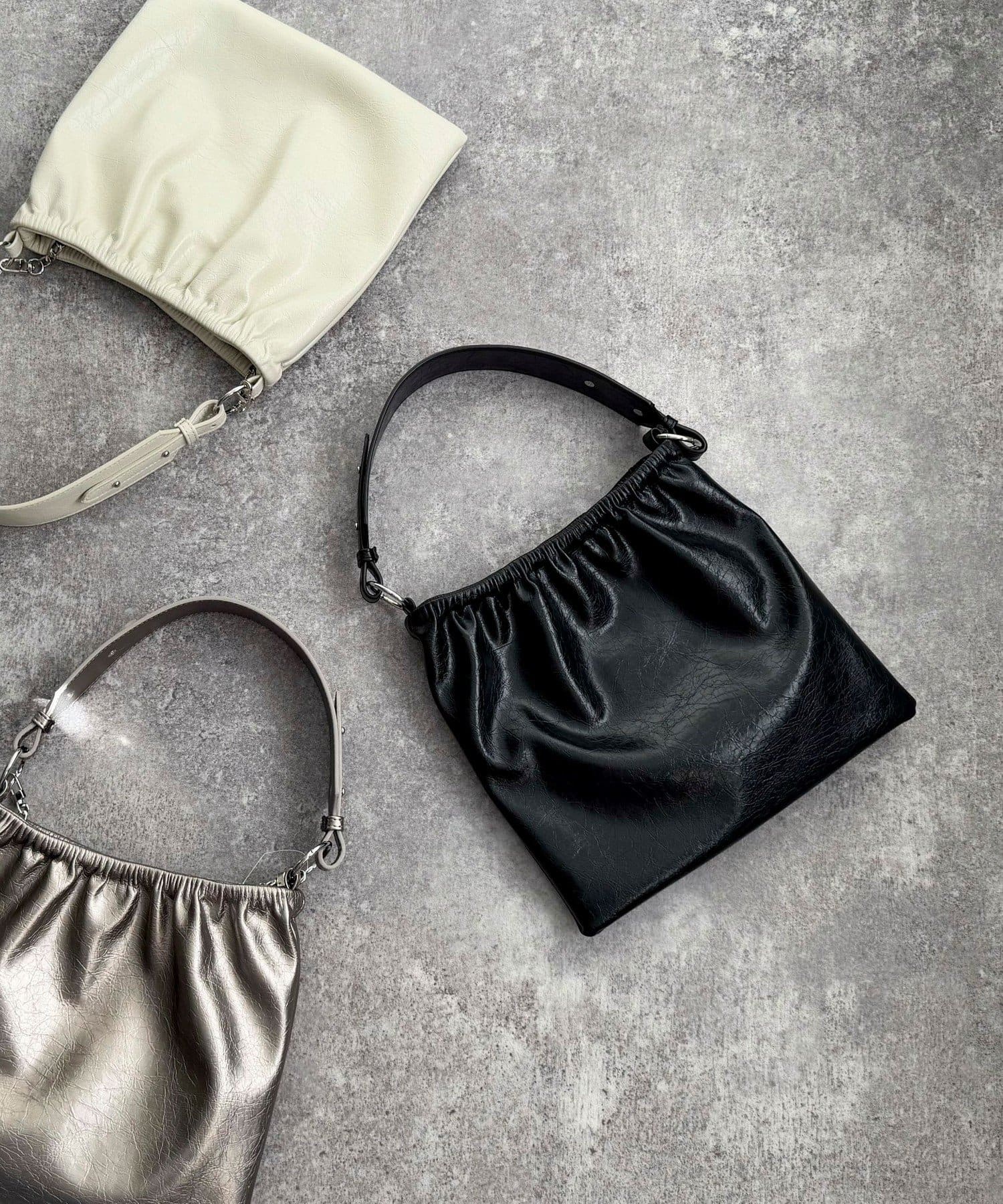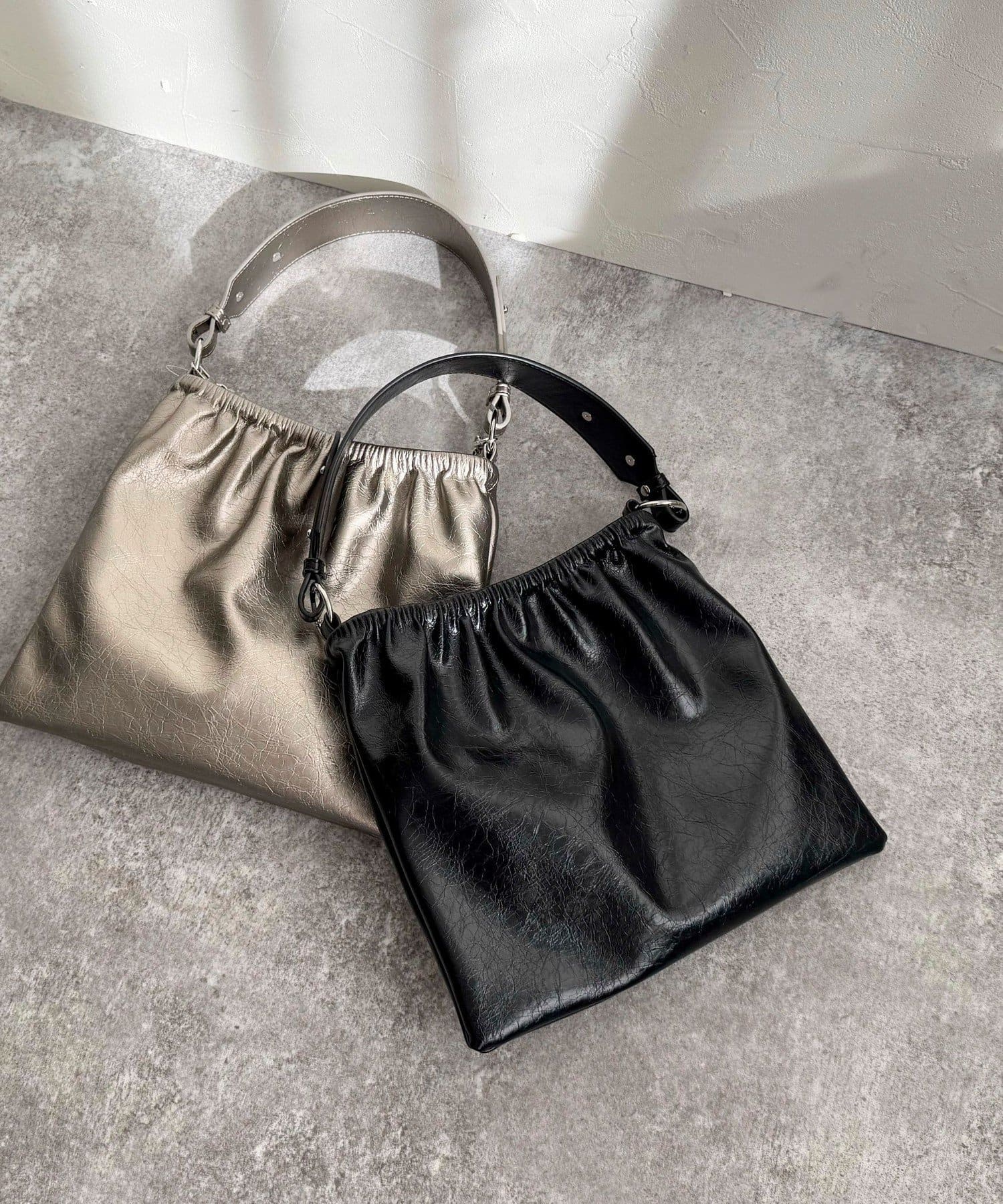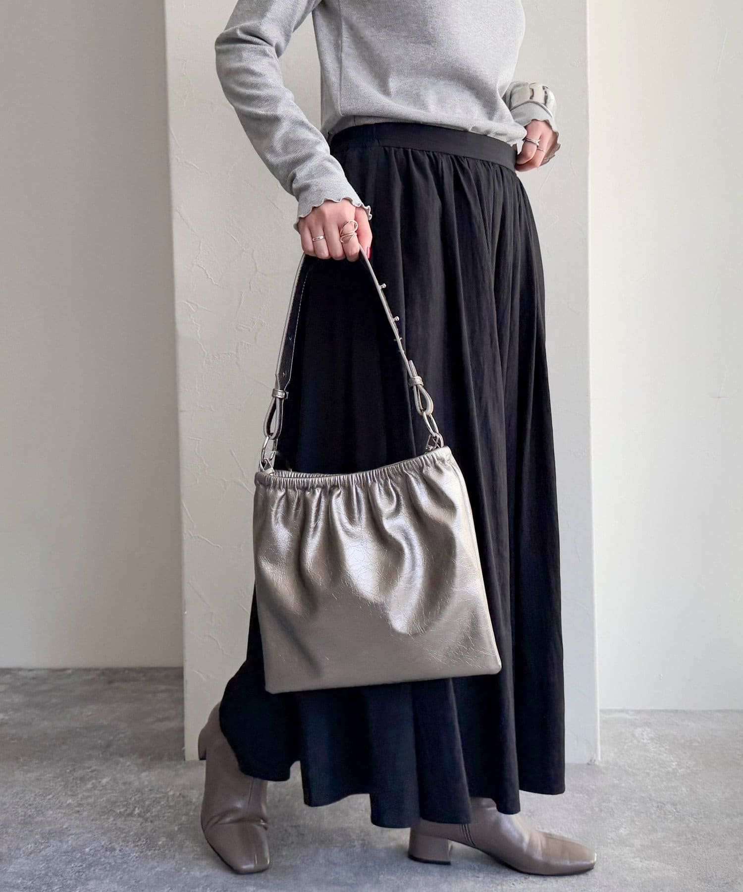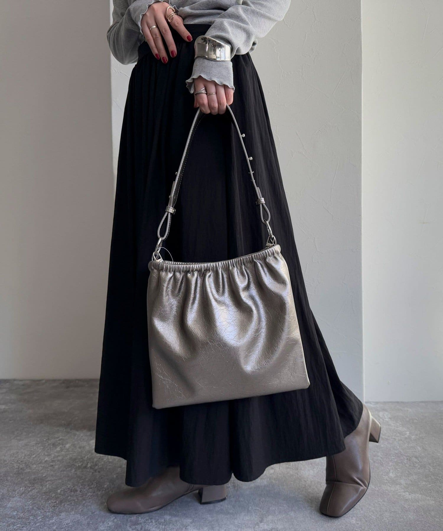 ・ギャザーデザインがポイントのトレンド感のあるワンハンドルバッグです