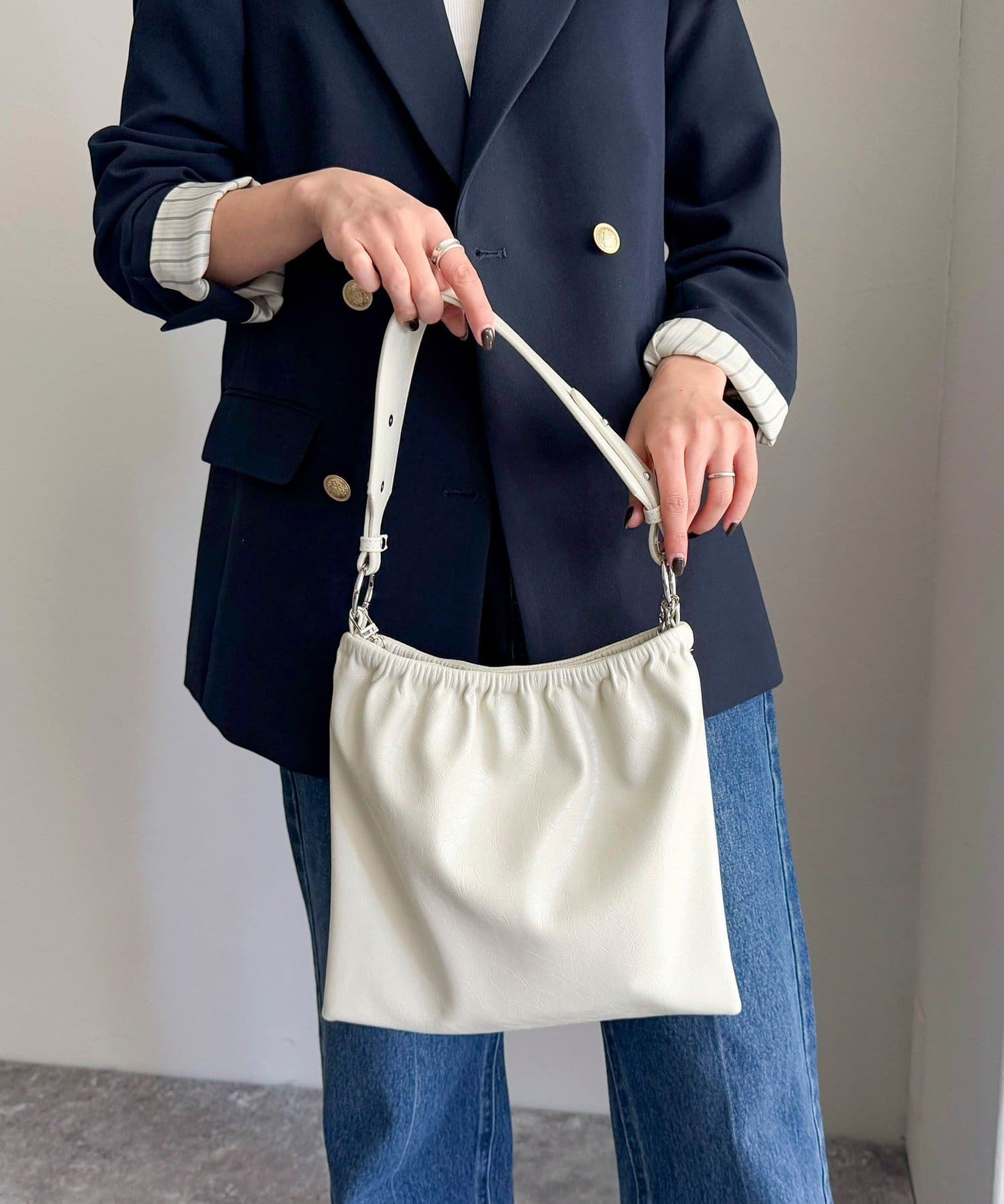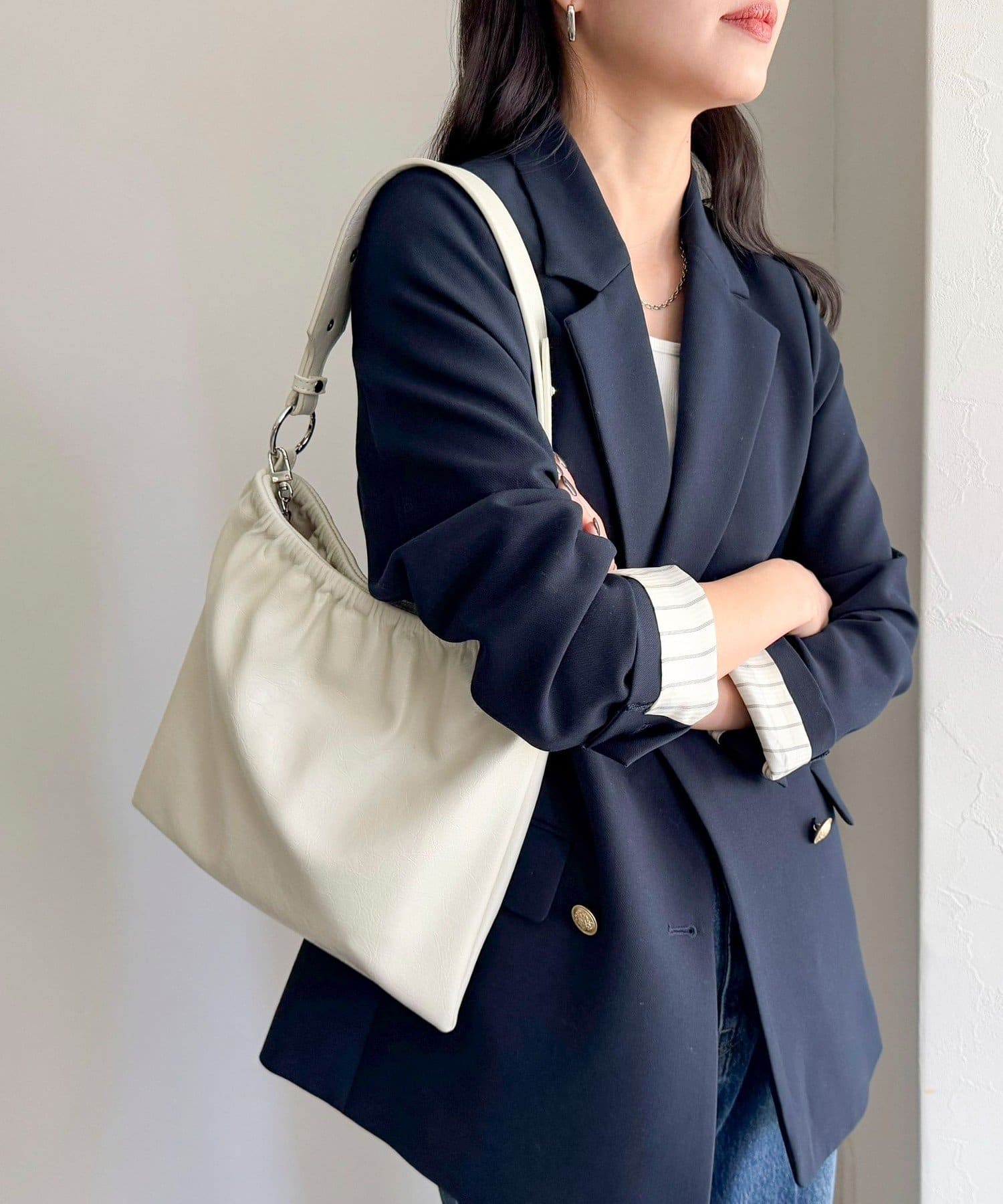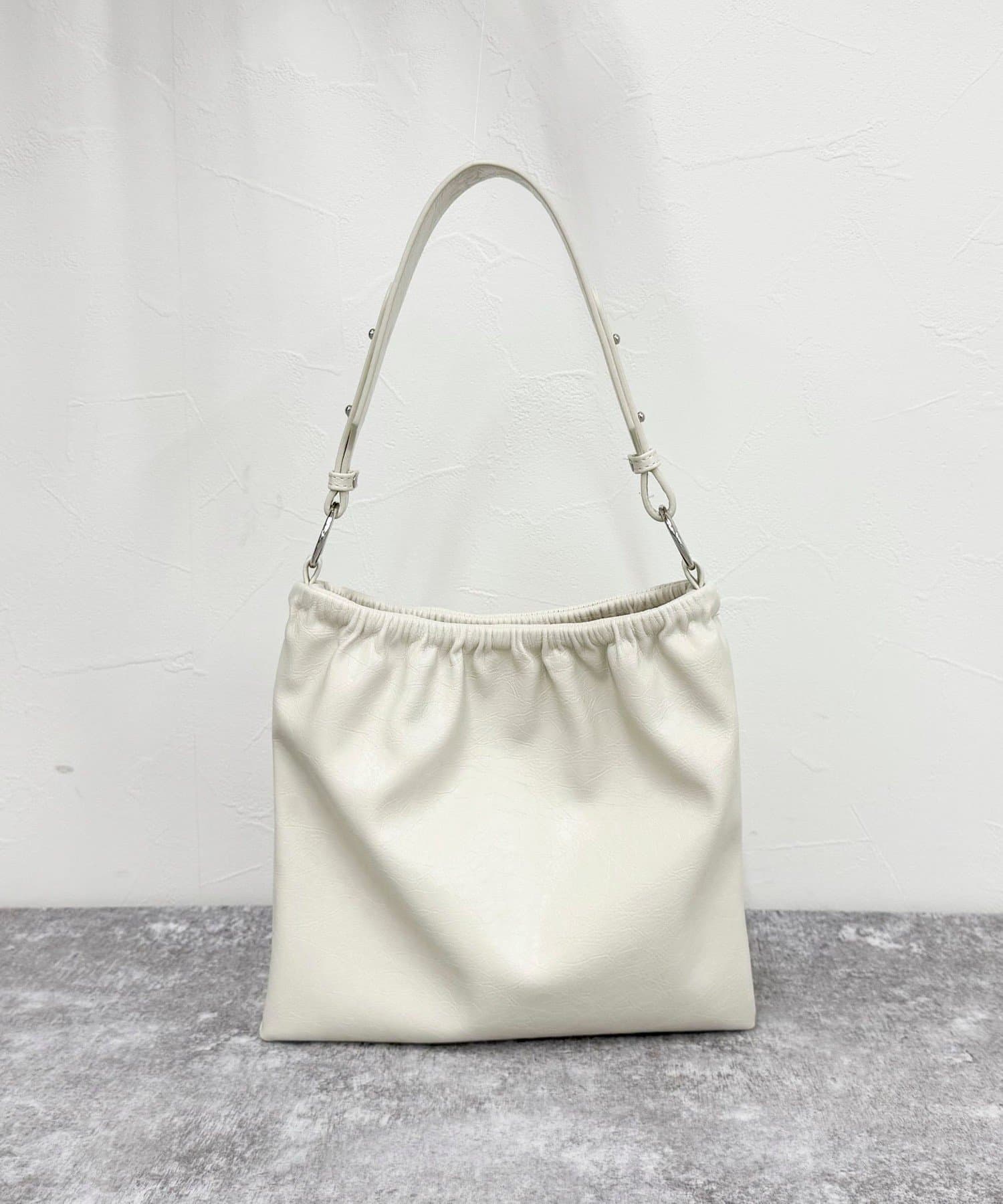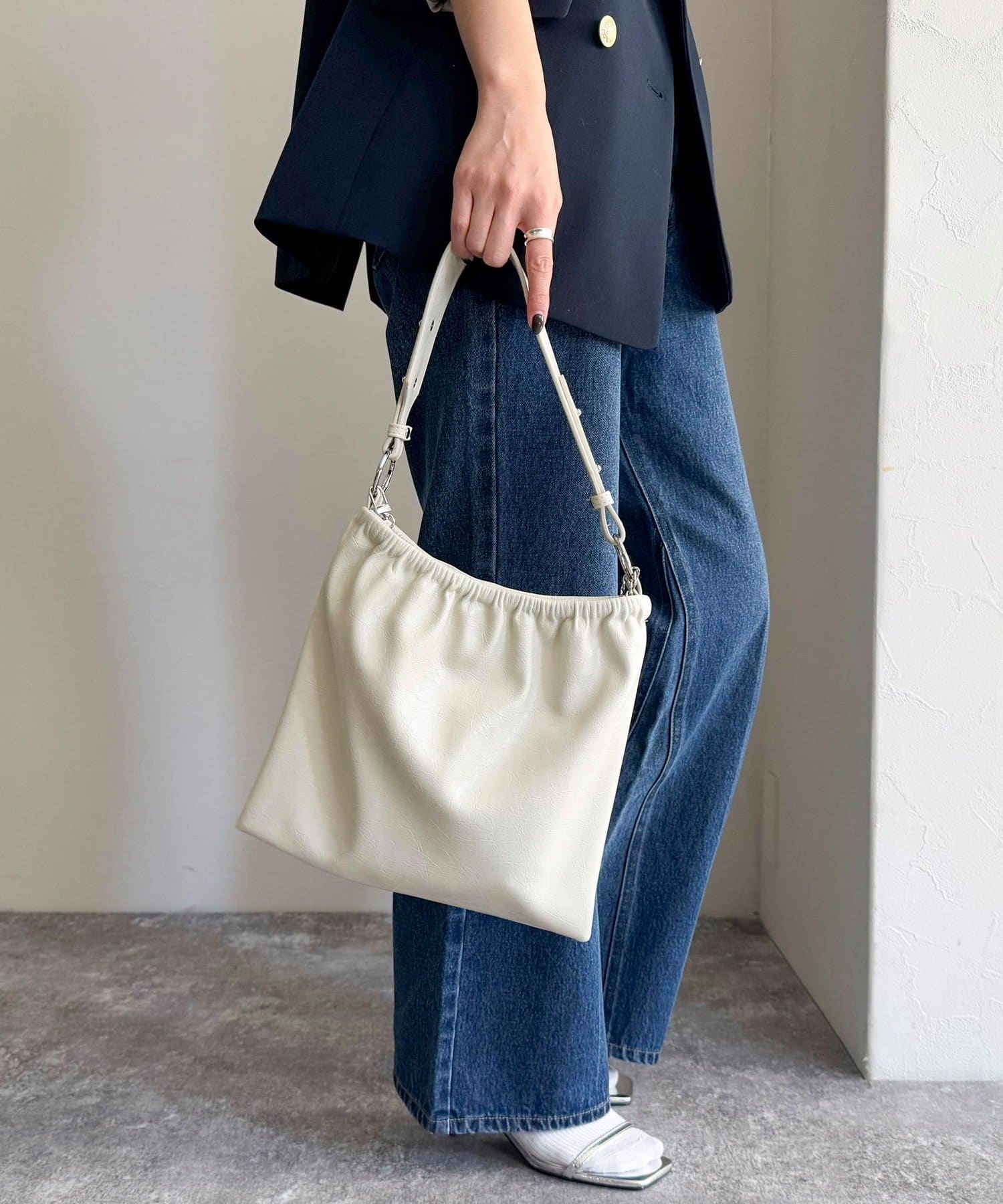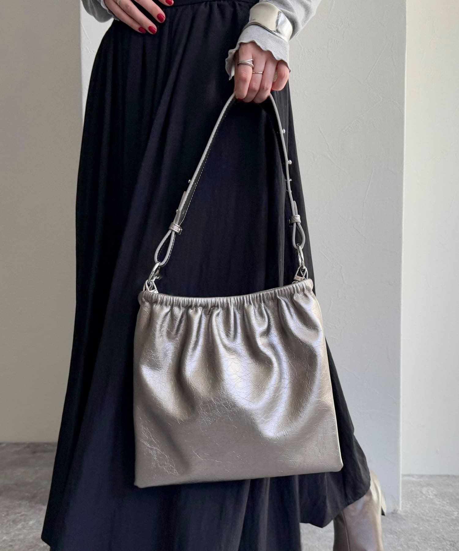 ・ギャザーデザインがポイントのトレンド感のあるワンハンドルバッグです