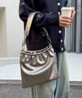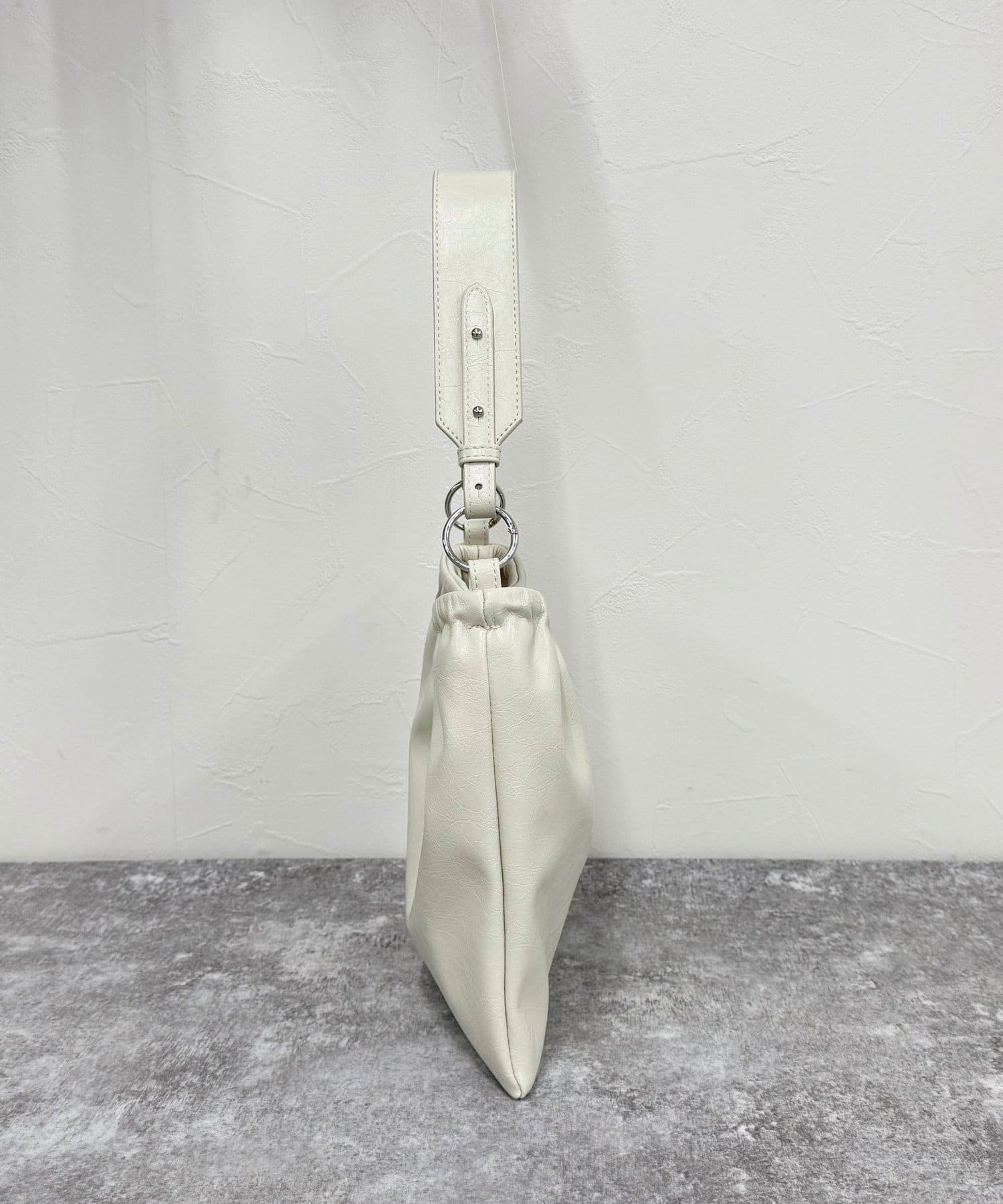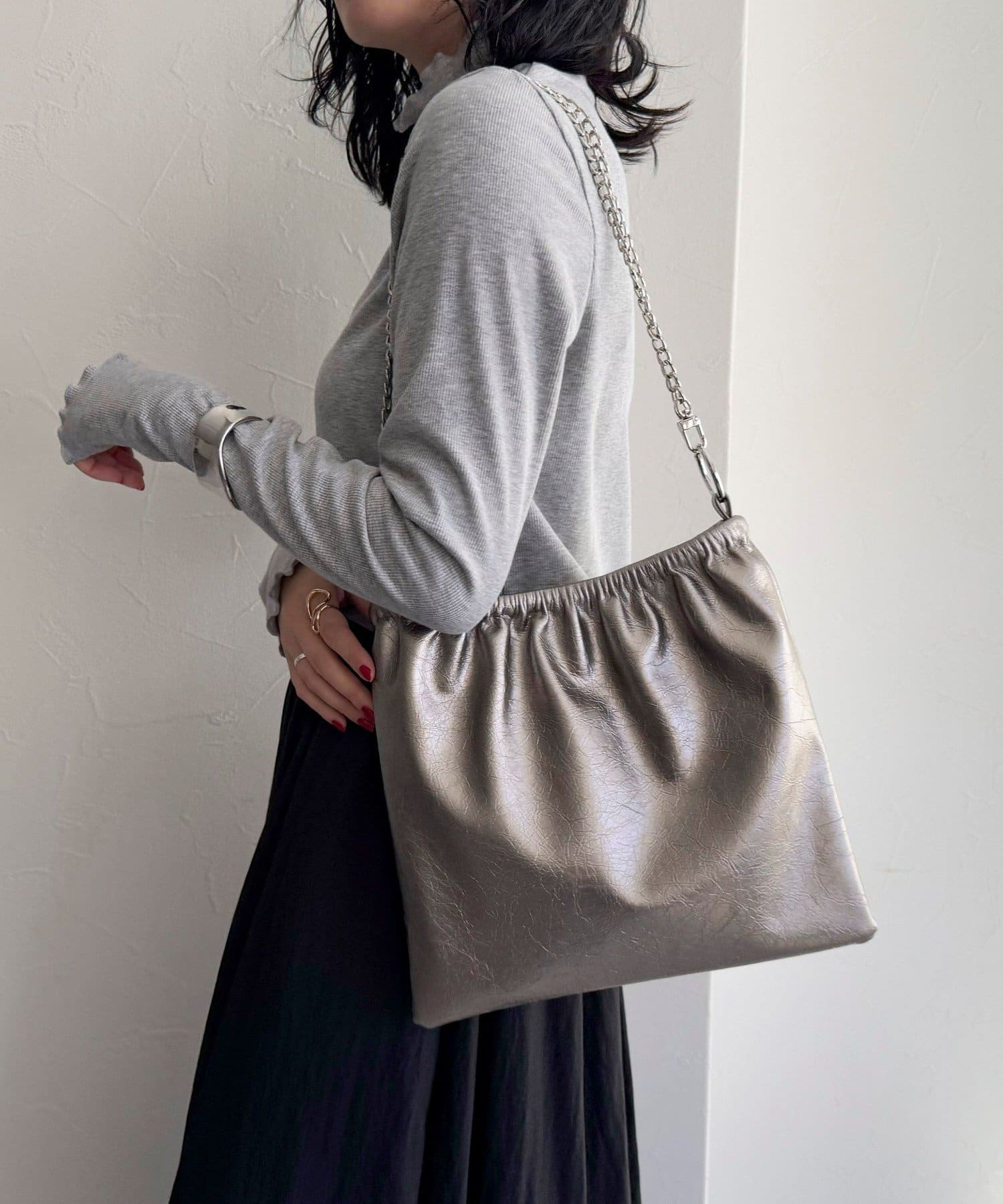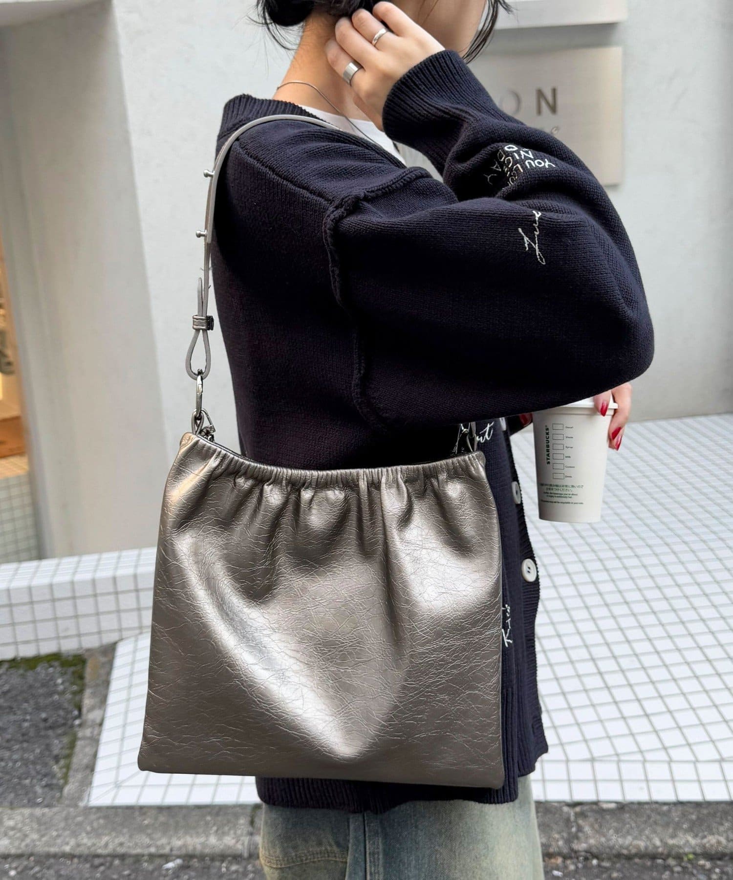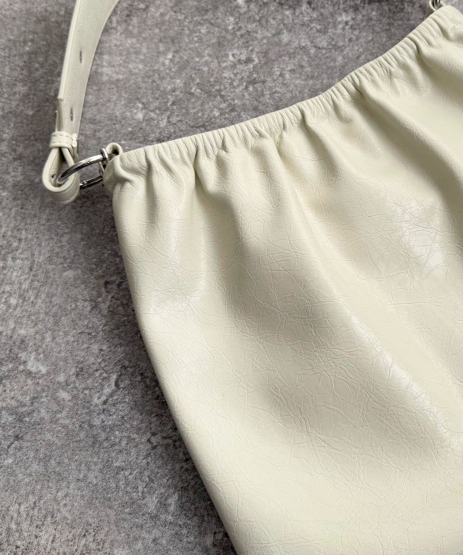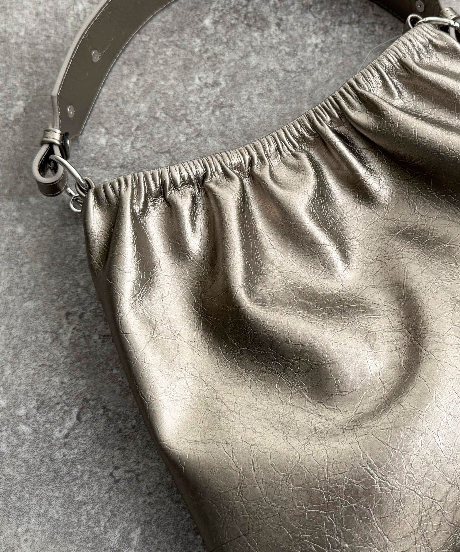 ・ギャザーデザインがポイントのトレンド感のあるワンハンドルバッグです