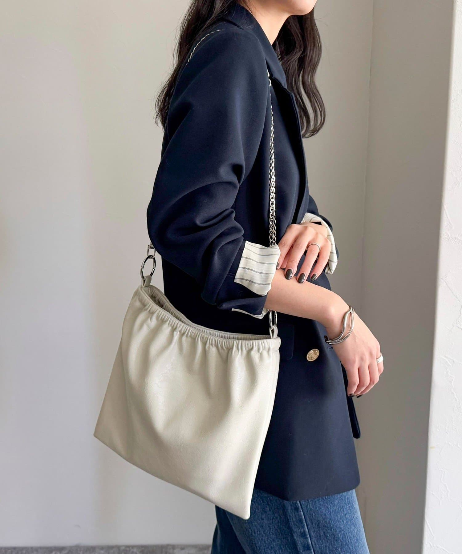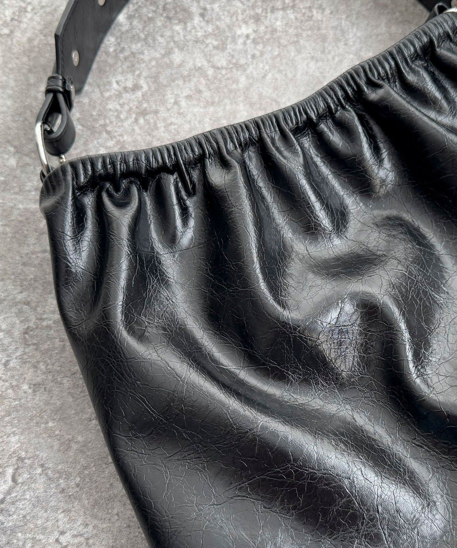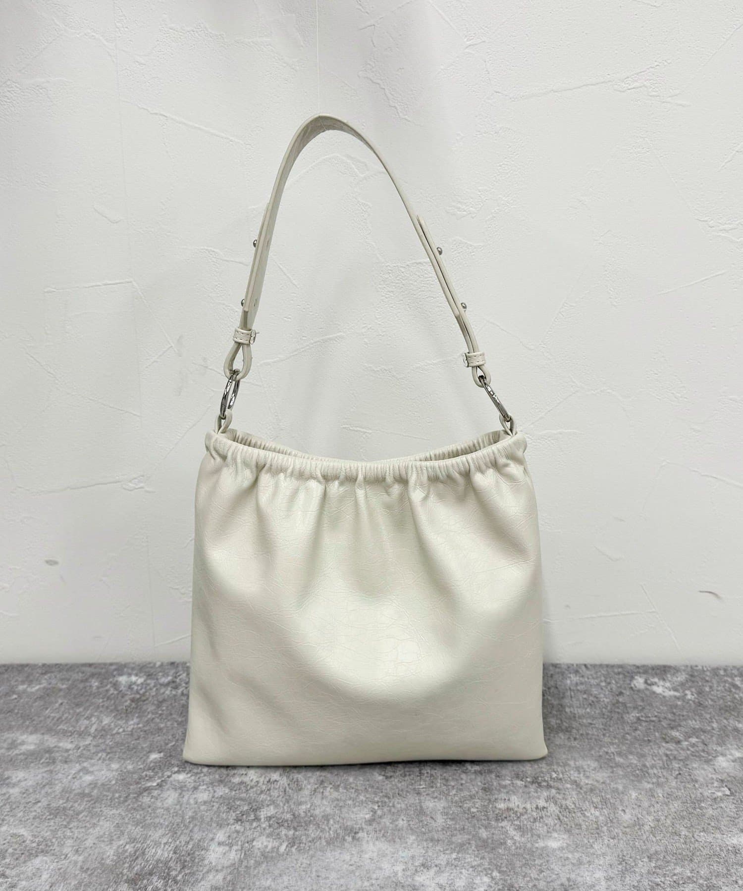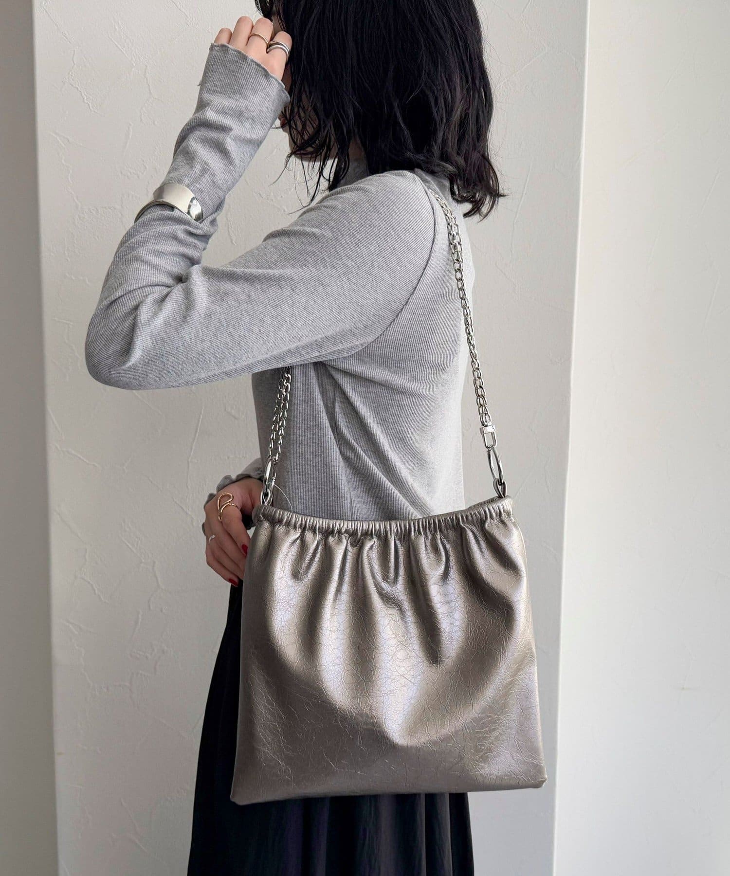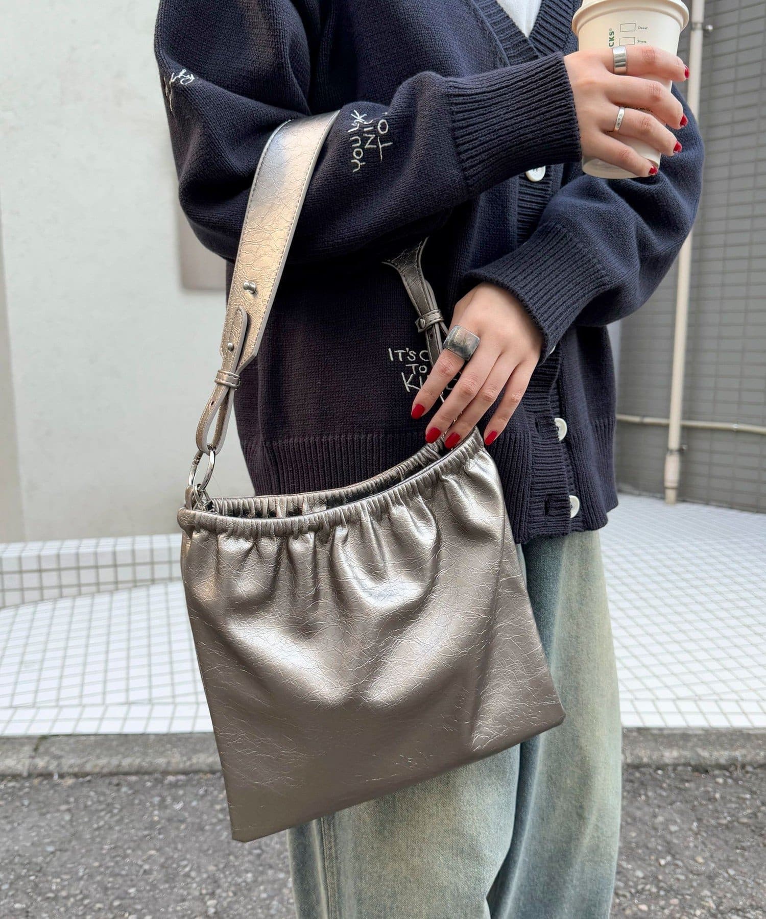 ・ギャザーデザインがポイントのトレンド感のあるワンハンドルバッグです