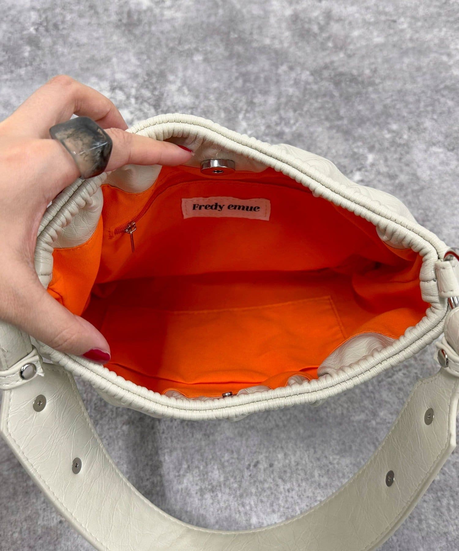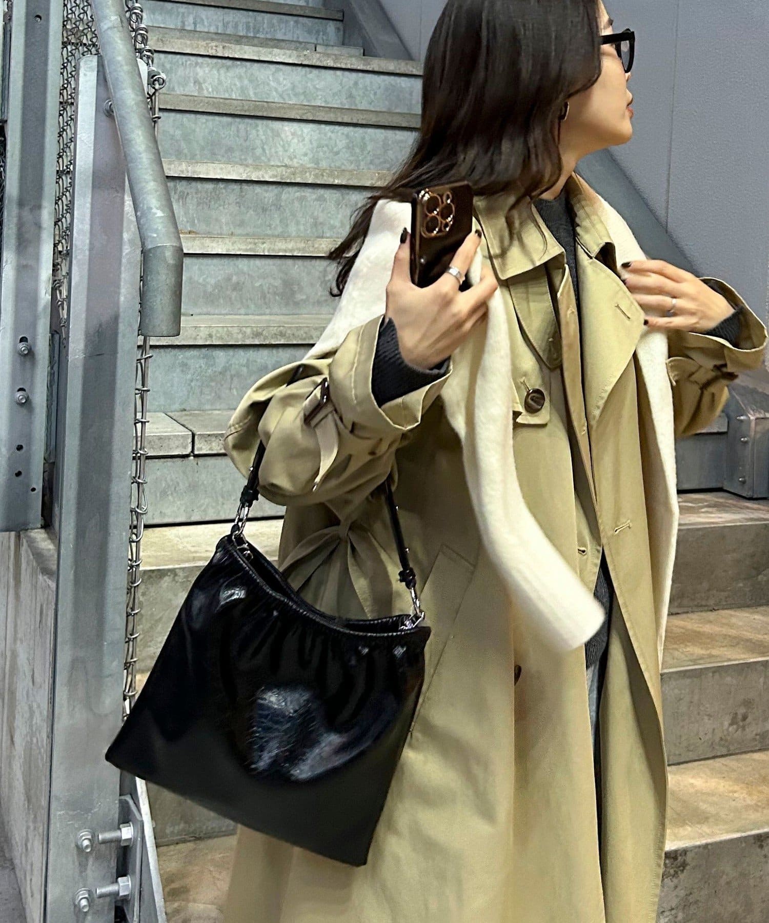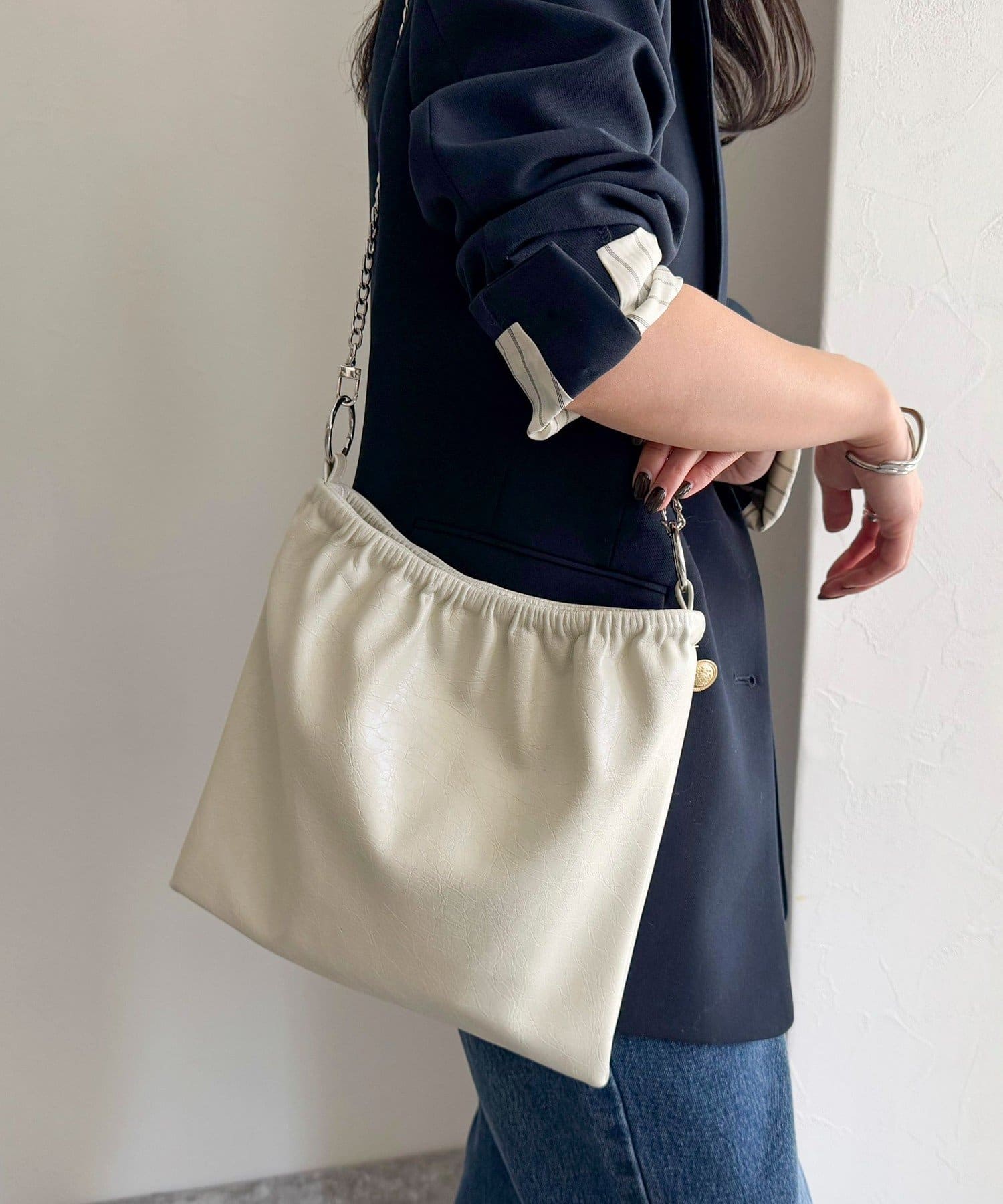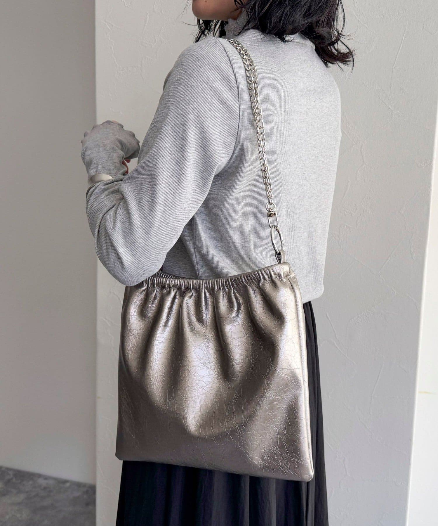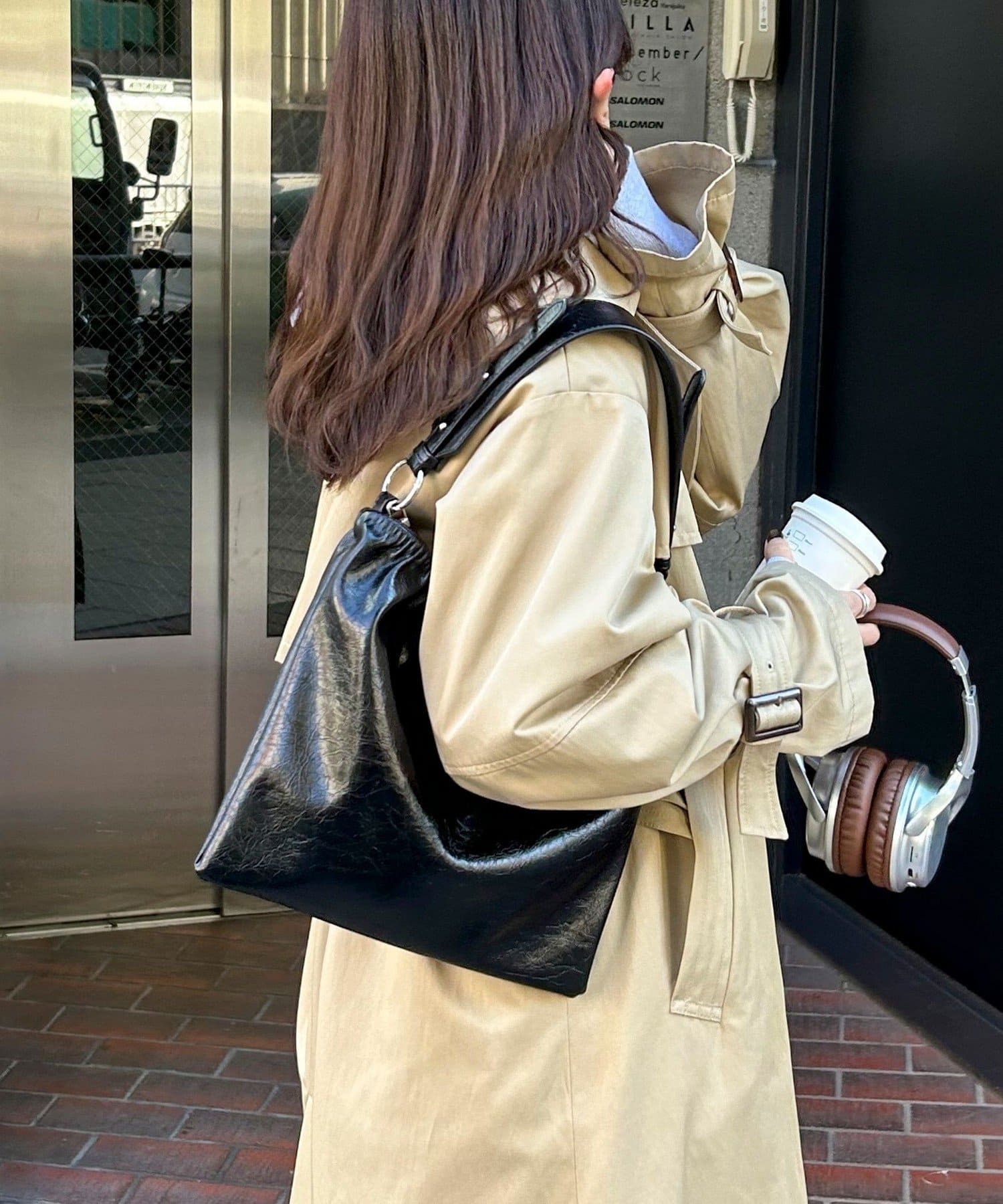 ・ギャザーデザインがポイントのトレンド感のあるワンハンドルバッグです