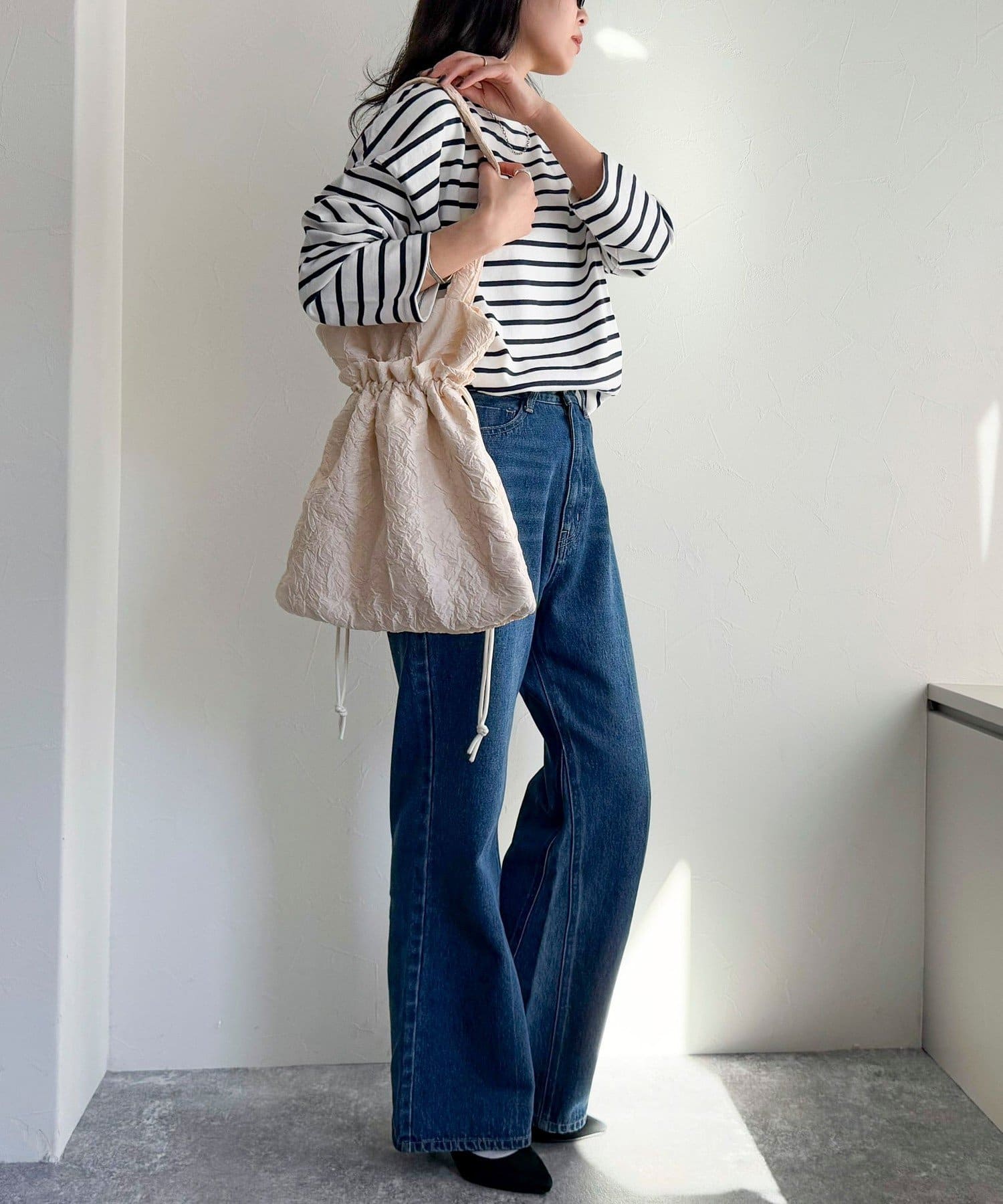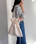・両サイドをギュッと絞ると今年らしい巾着型シルエットに!