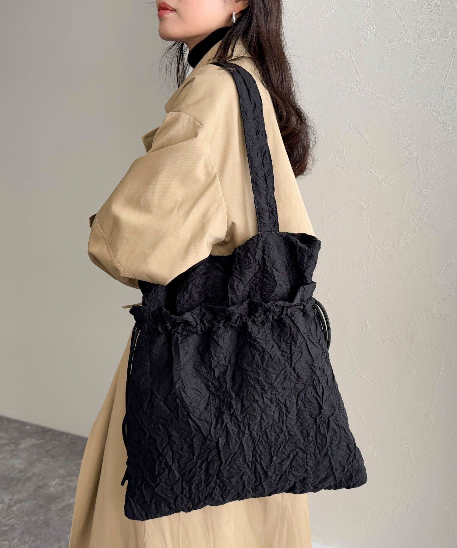 ・軽いクシュクシュっとした素材感がポイントのトートバックです