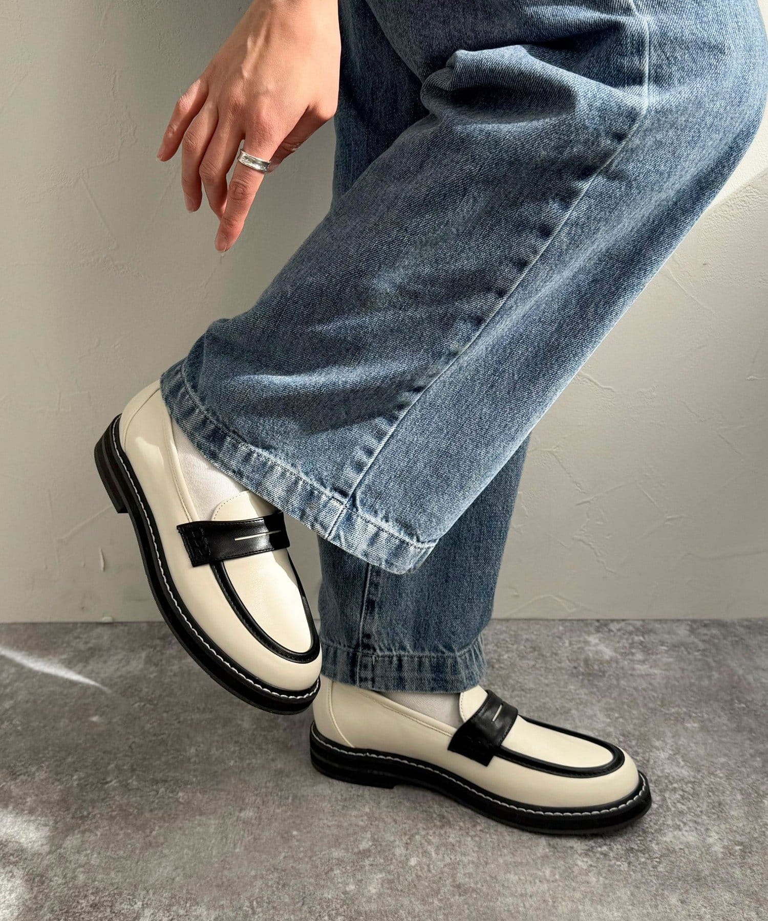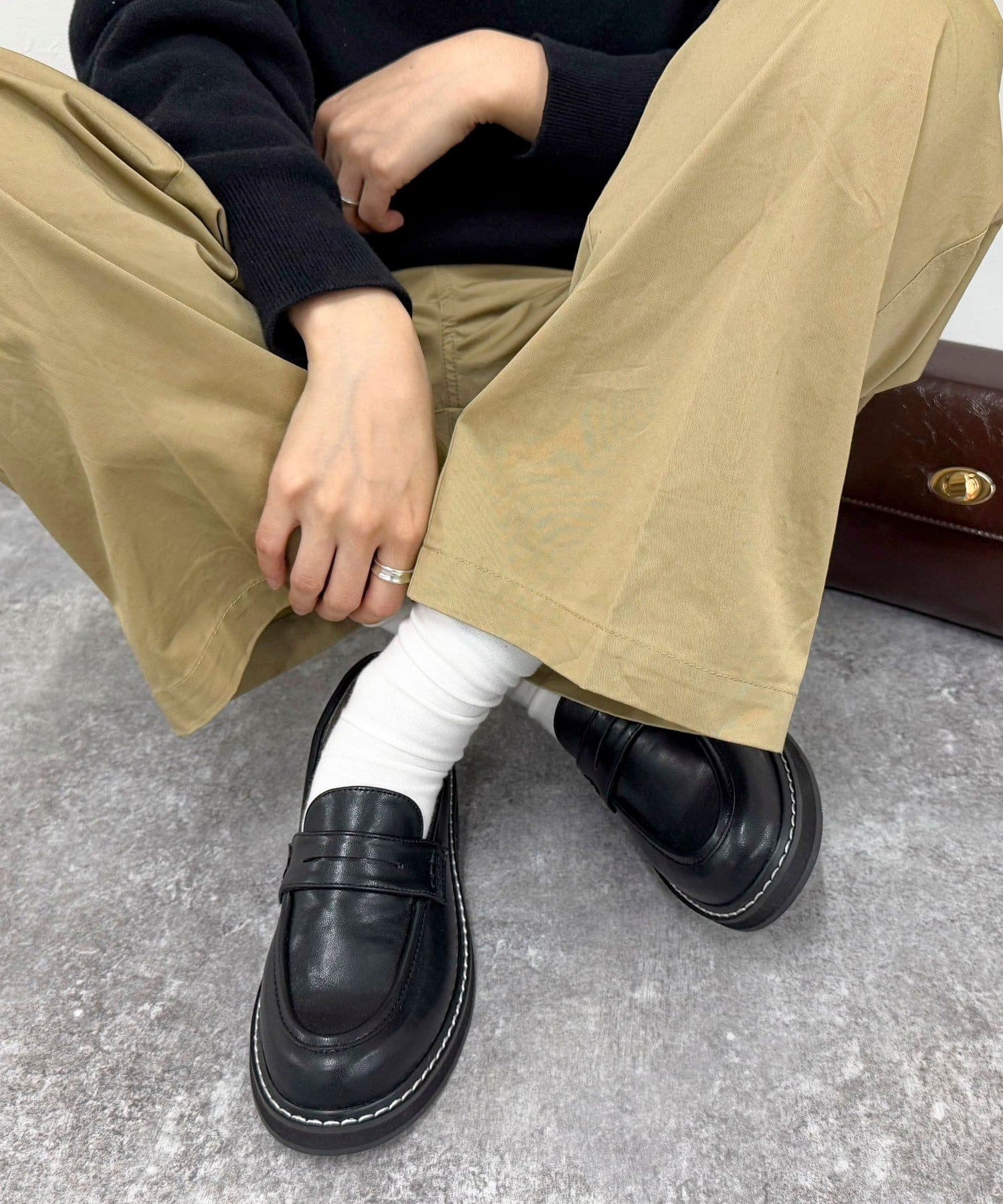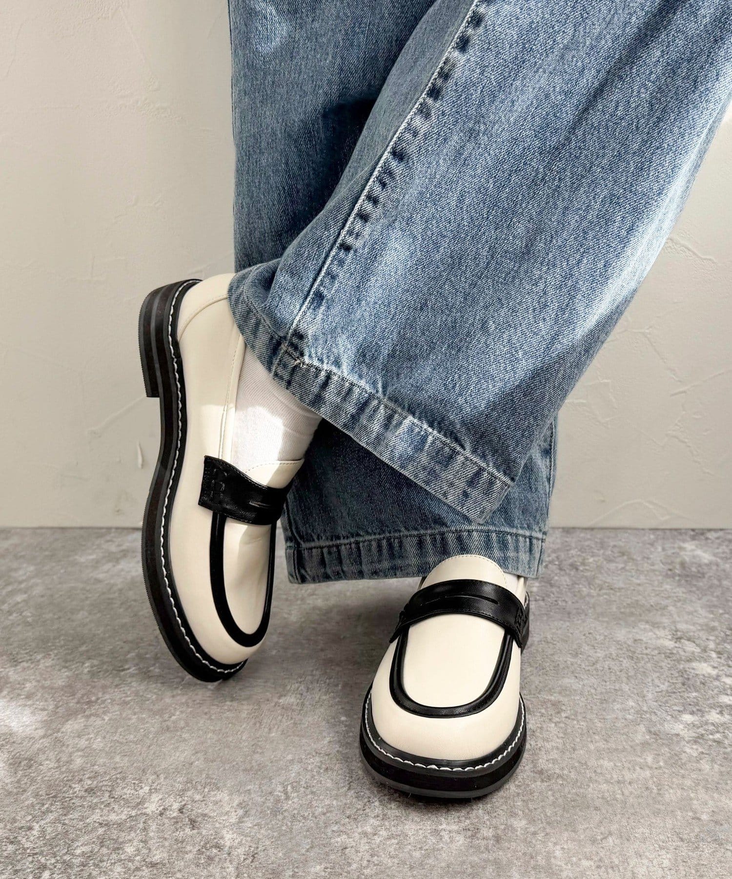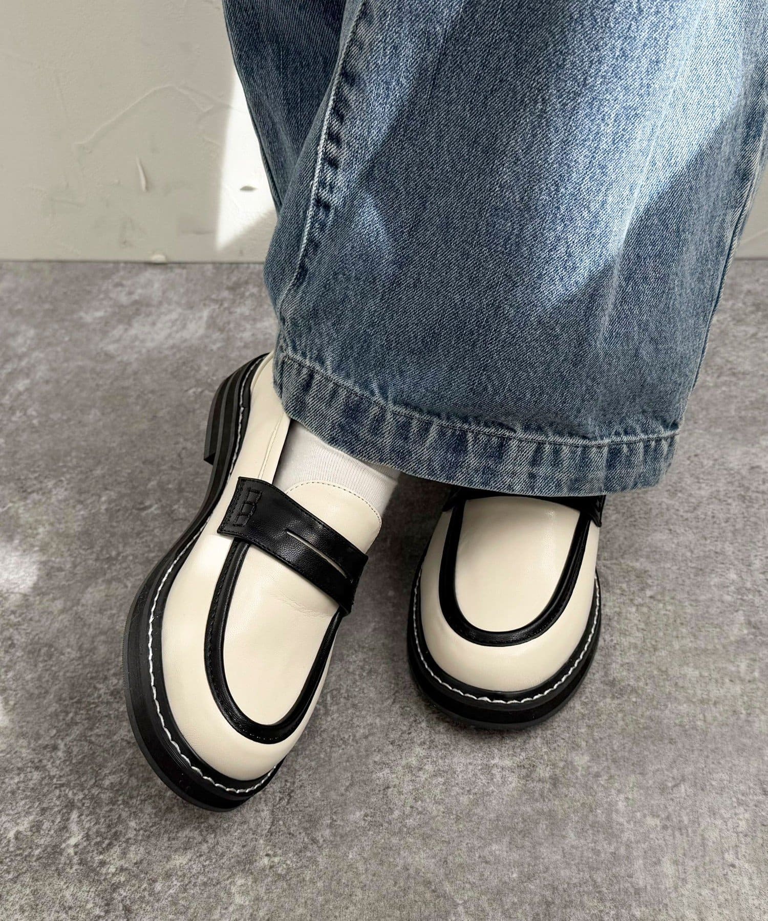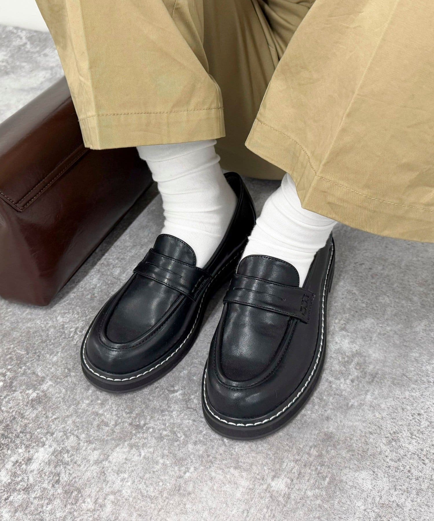・ステッチがポイントの幅広いコーデに合わせやすいローファーです