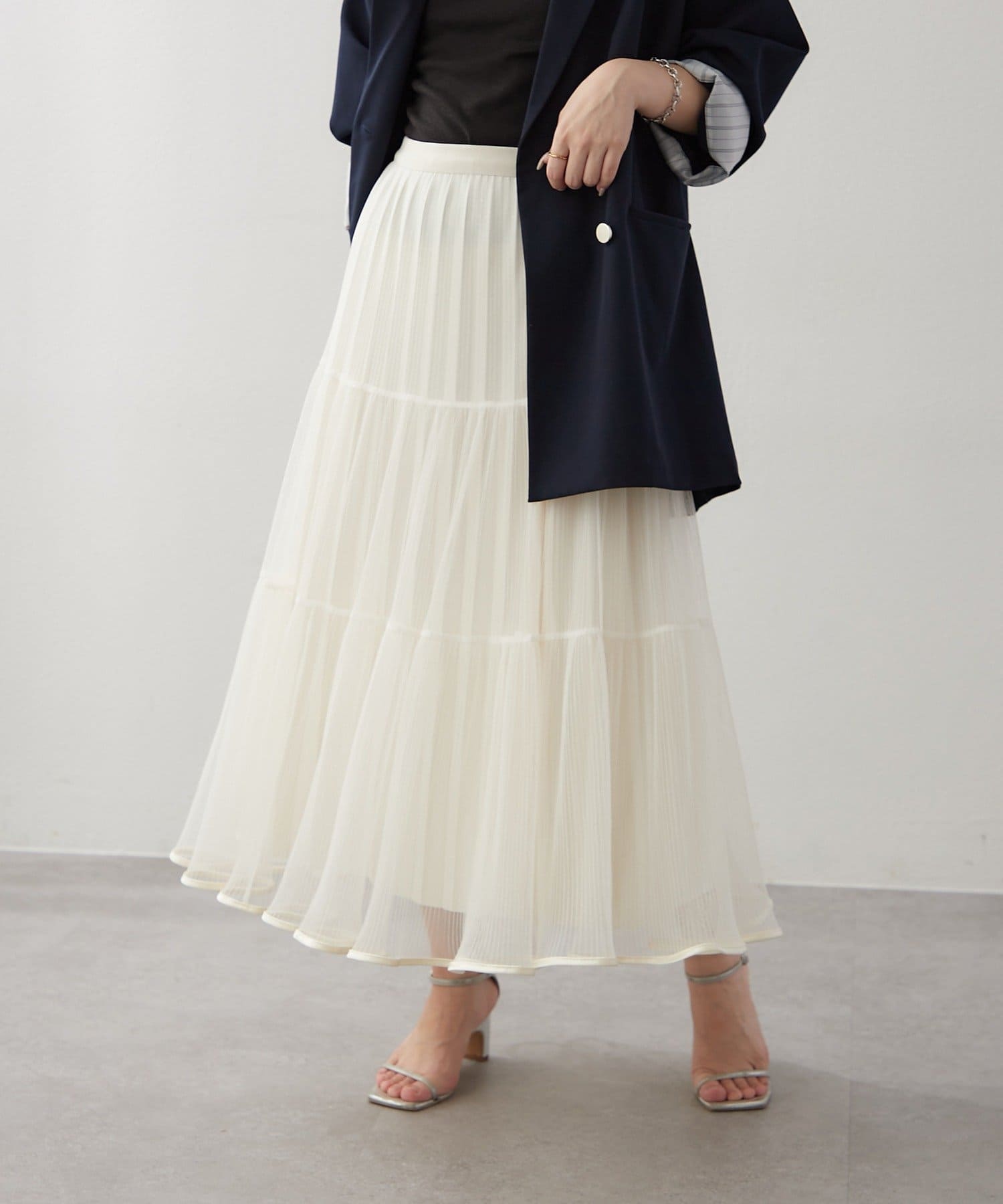 ・ラメ入り素材がさりげなくきらめくチュールスカート