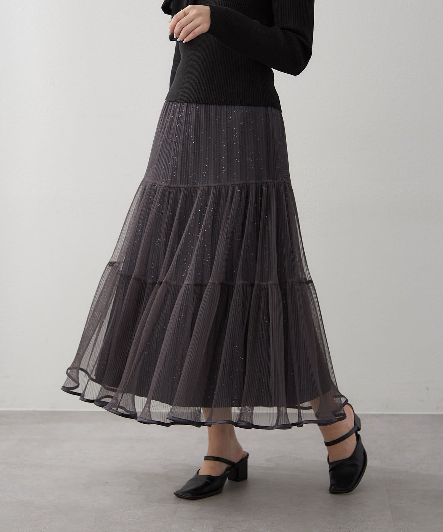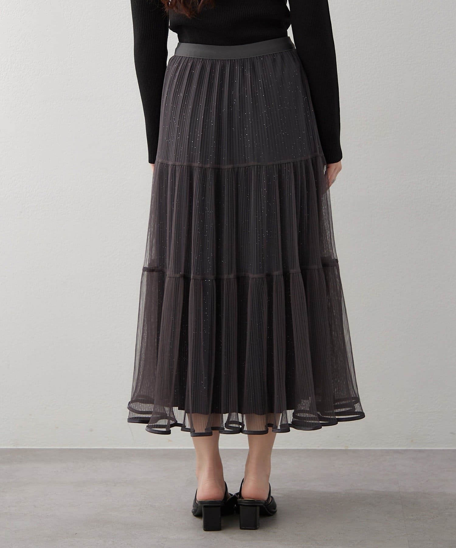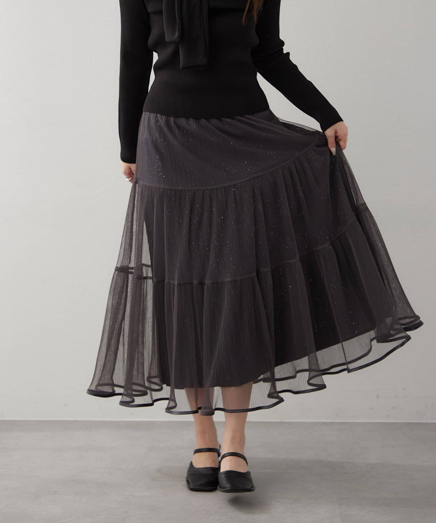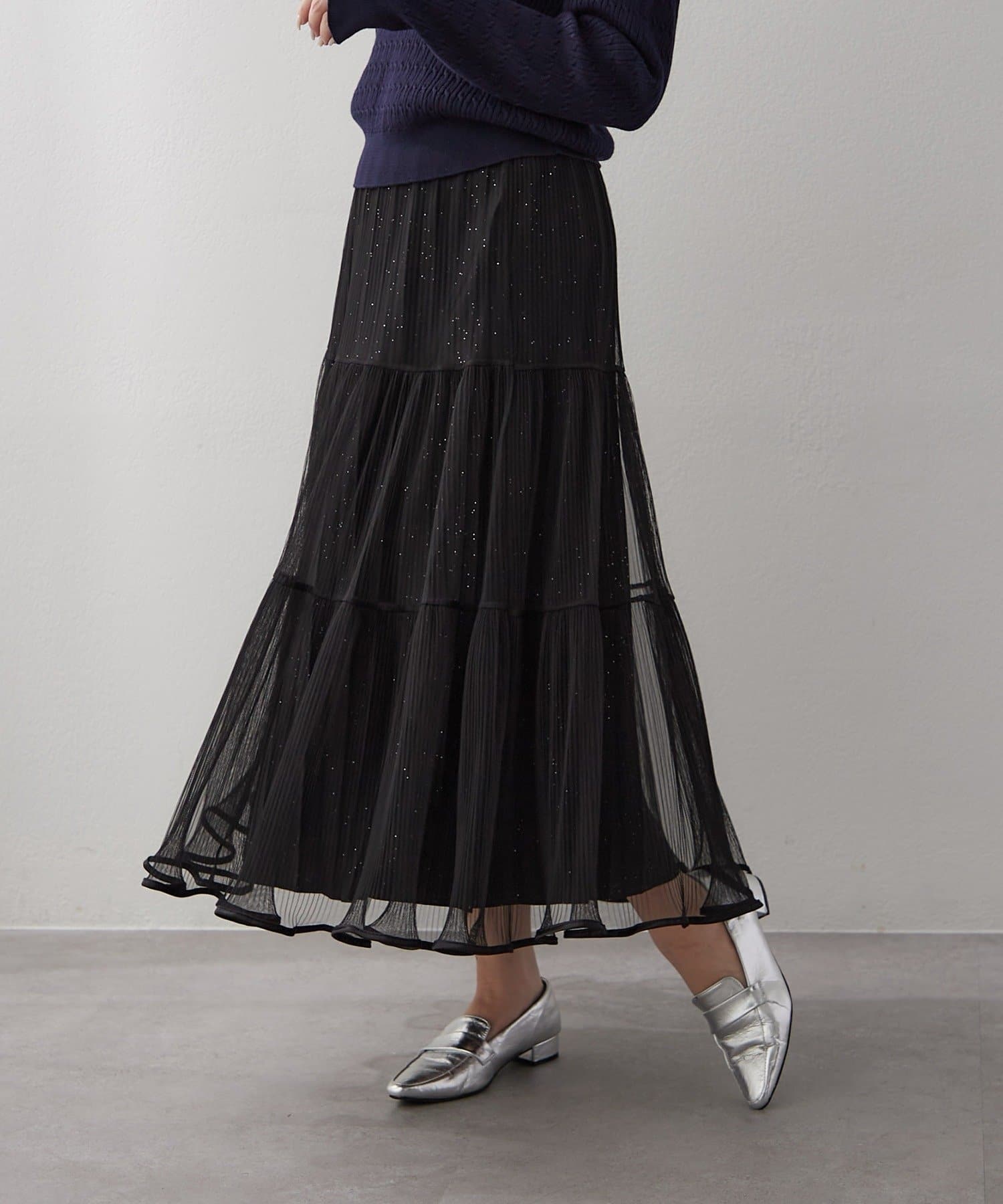 ・ラメ入り素材がさりげなくきらめくチュールスカート