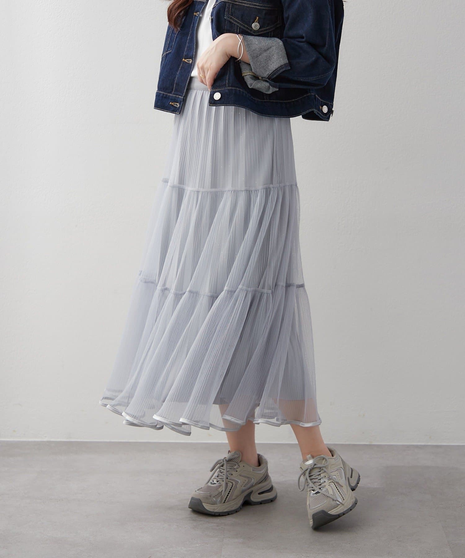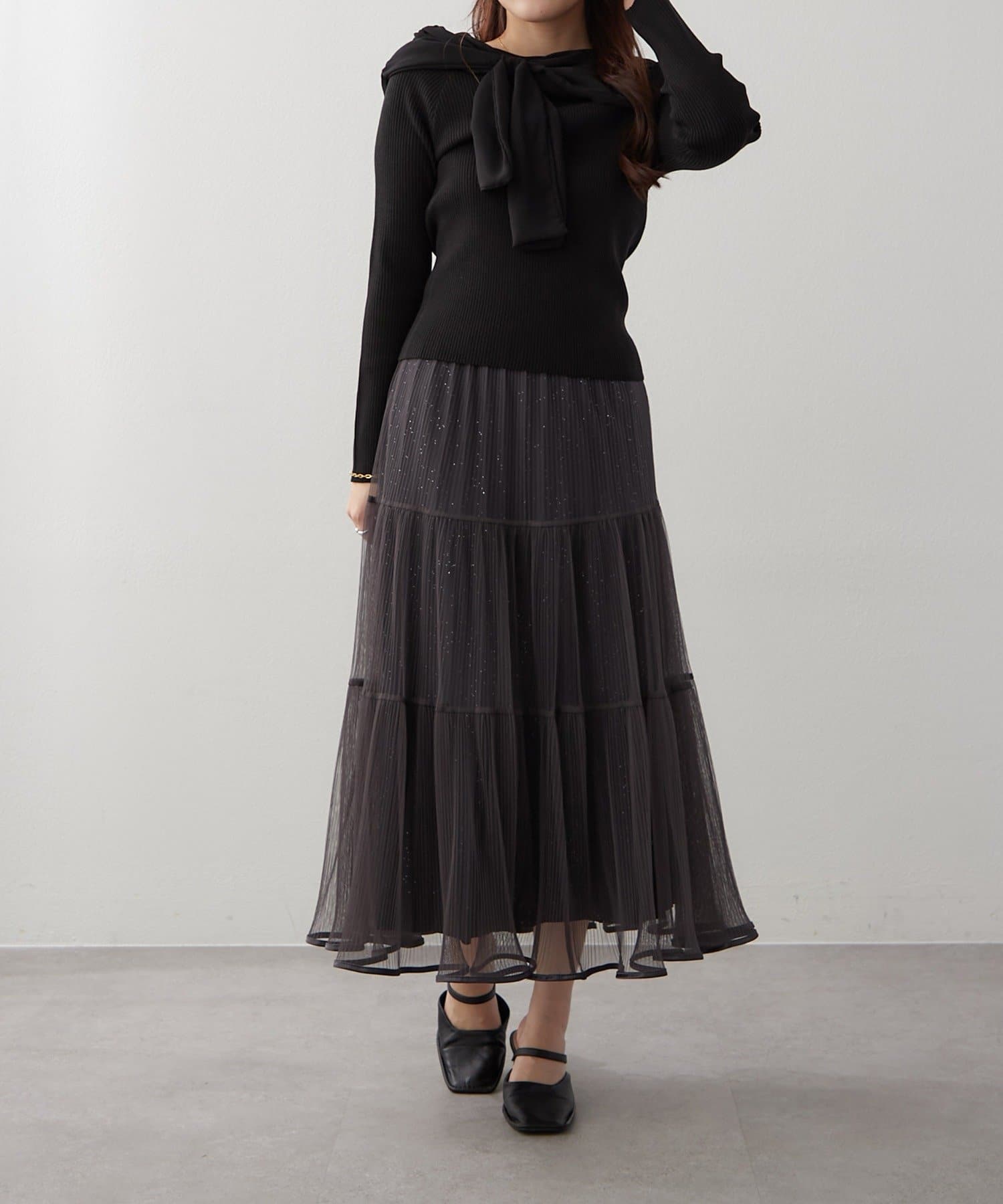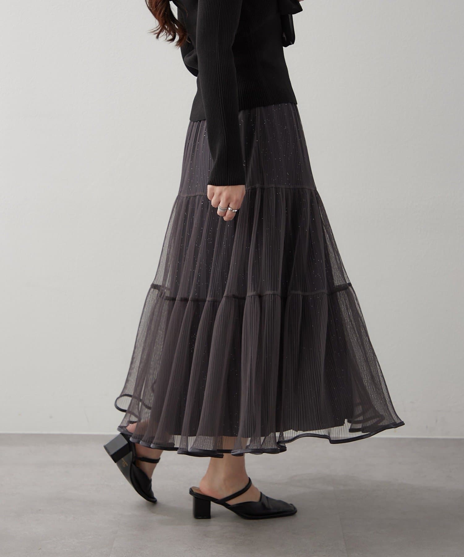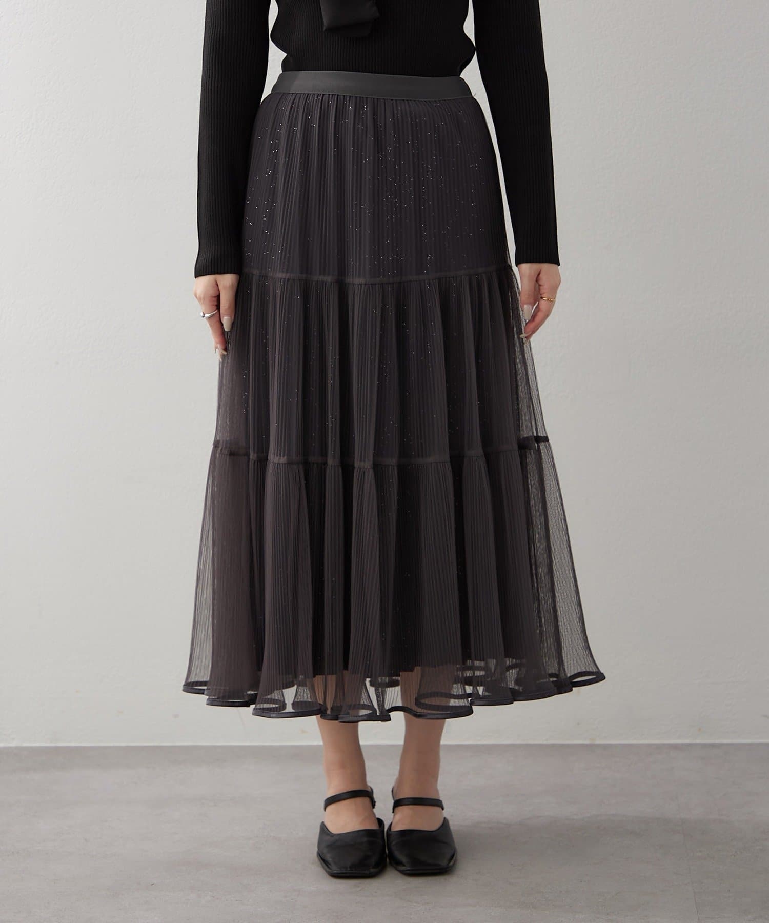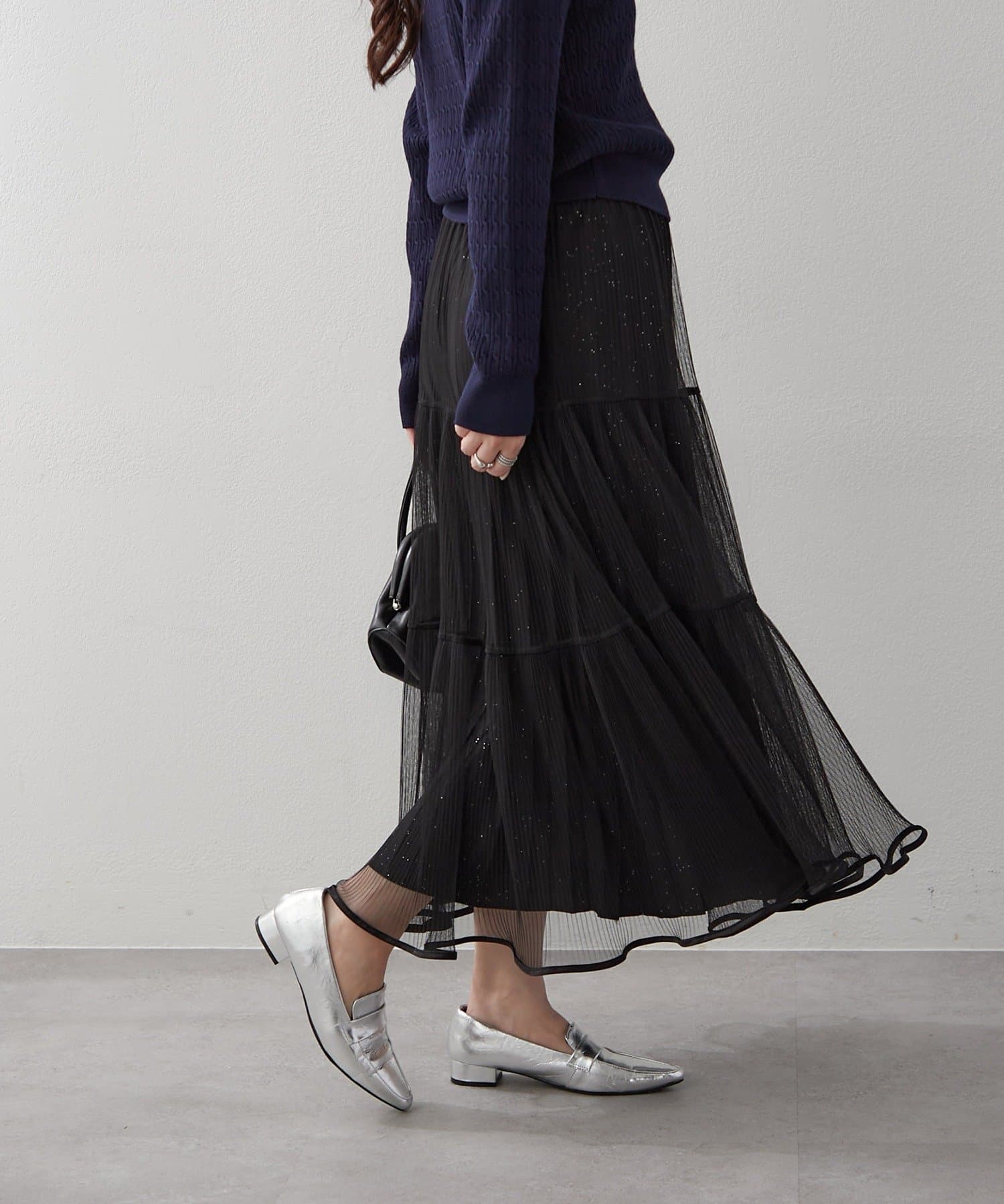 ・ラメ入り素材がさりげなくきらめくチュールスカート