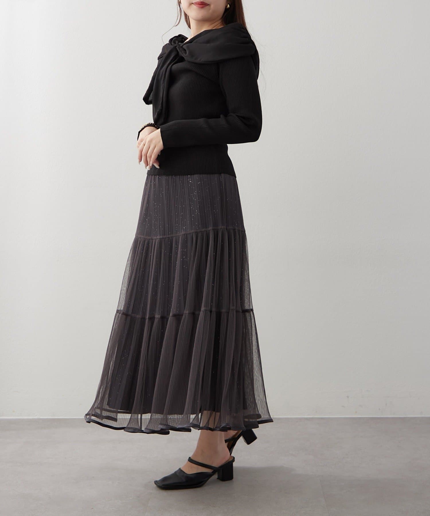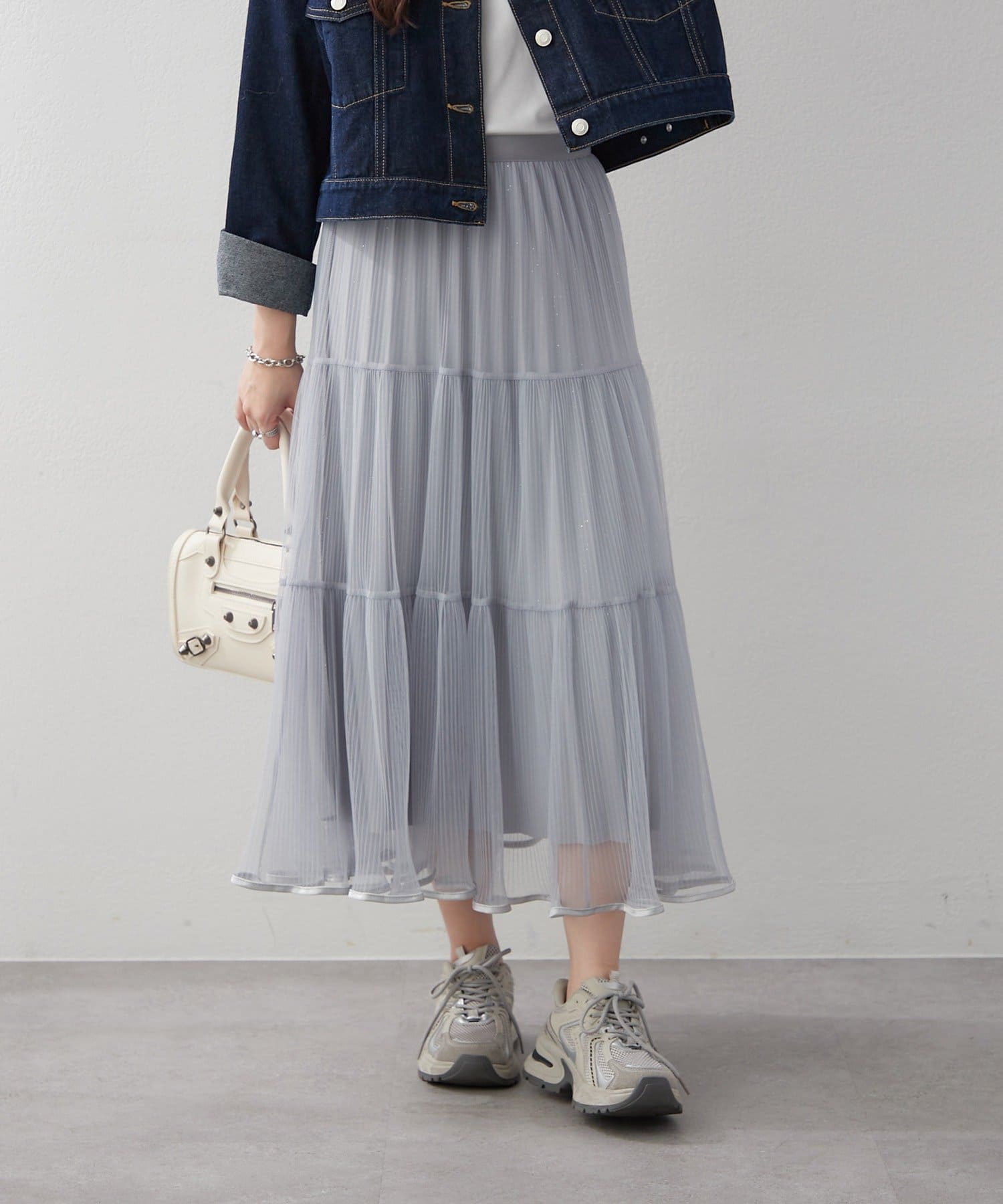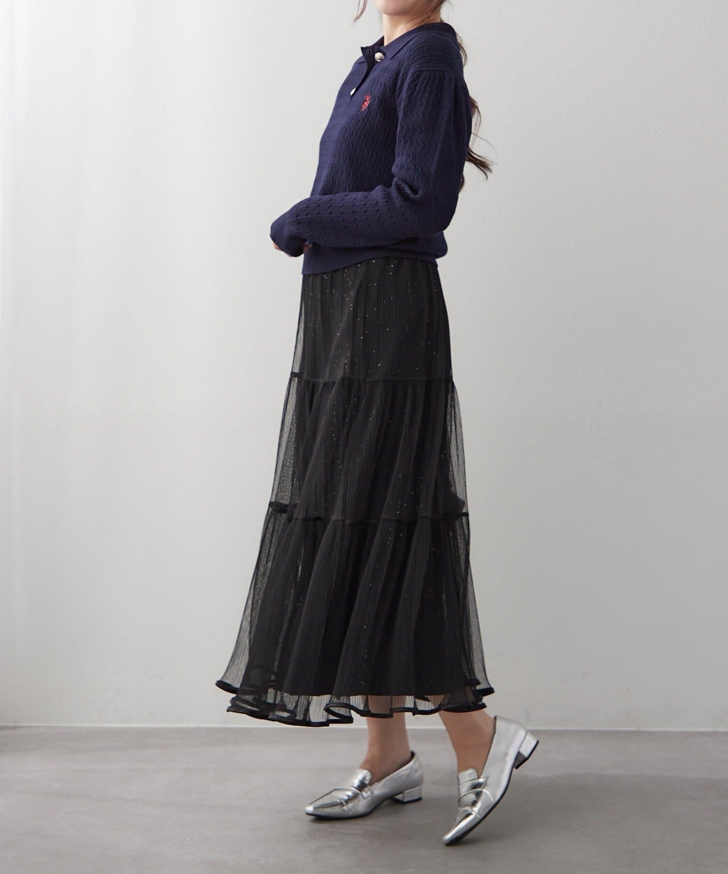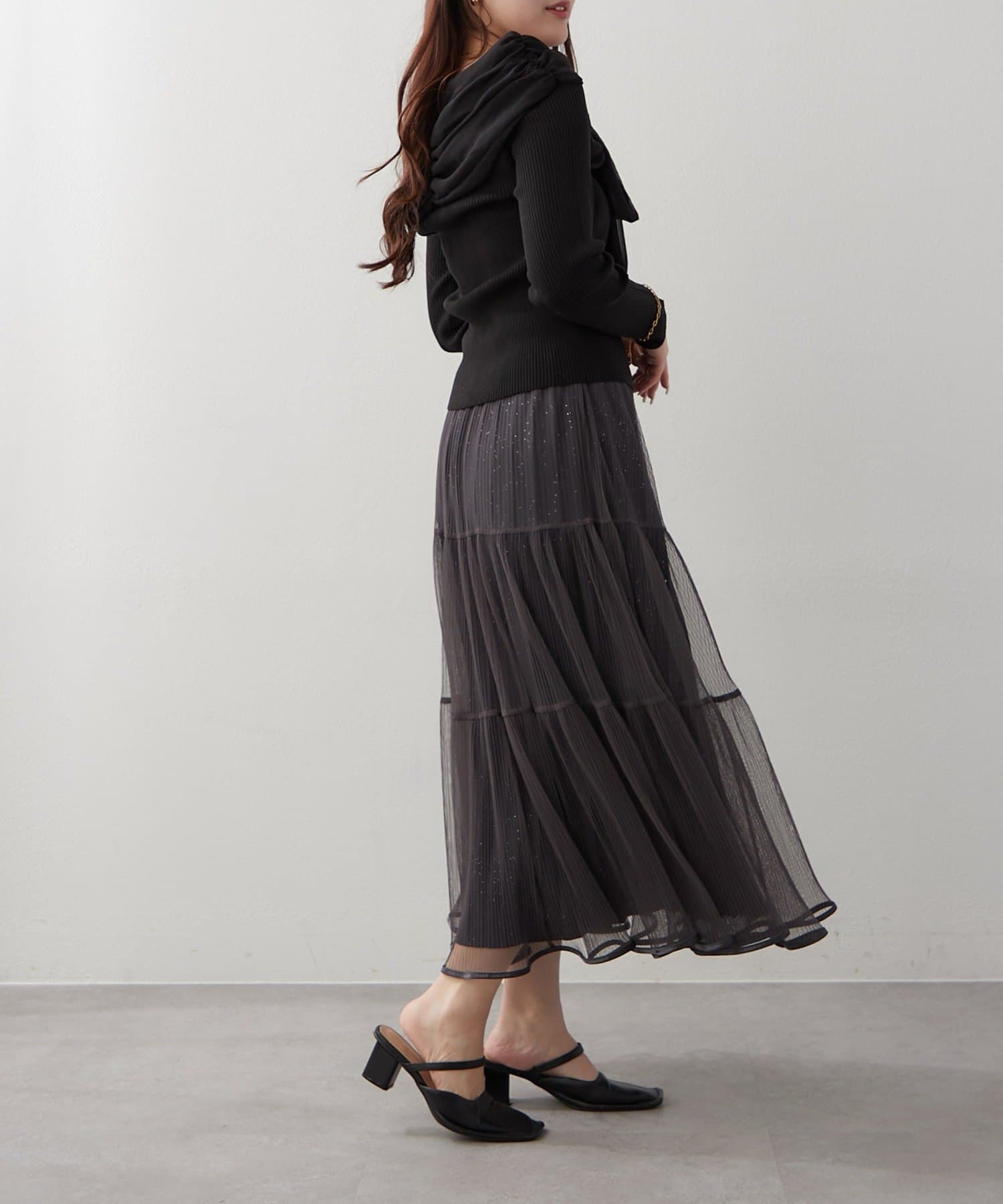 ・ラメ入り素材がさりげなくきらめくチュールスカート