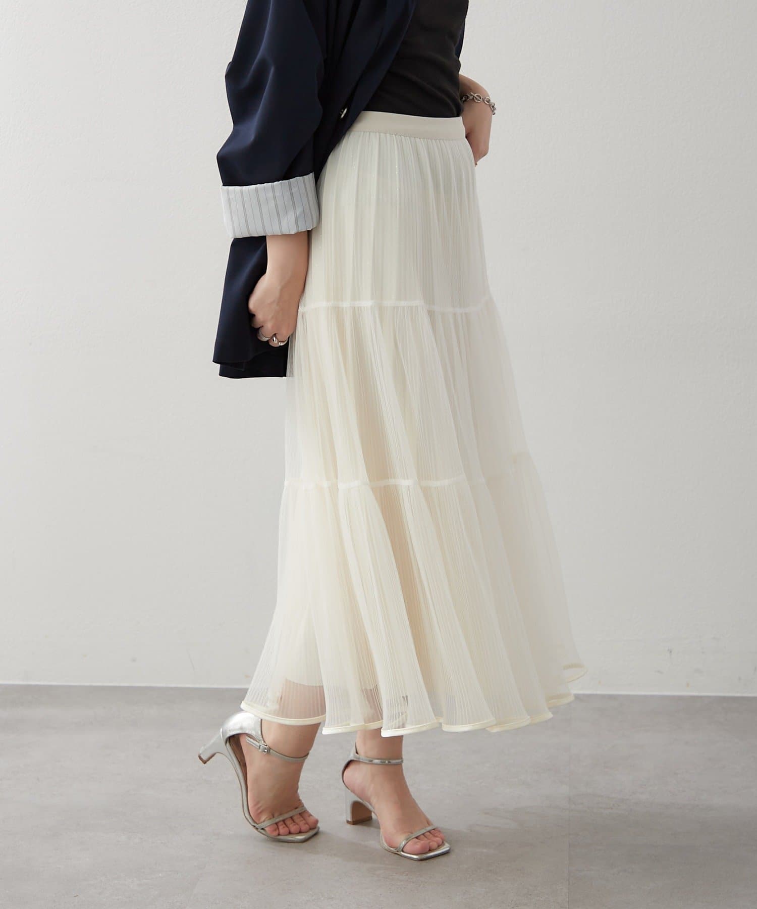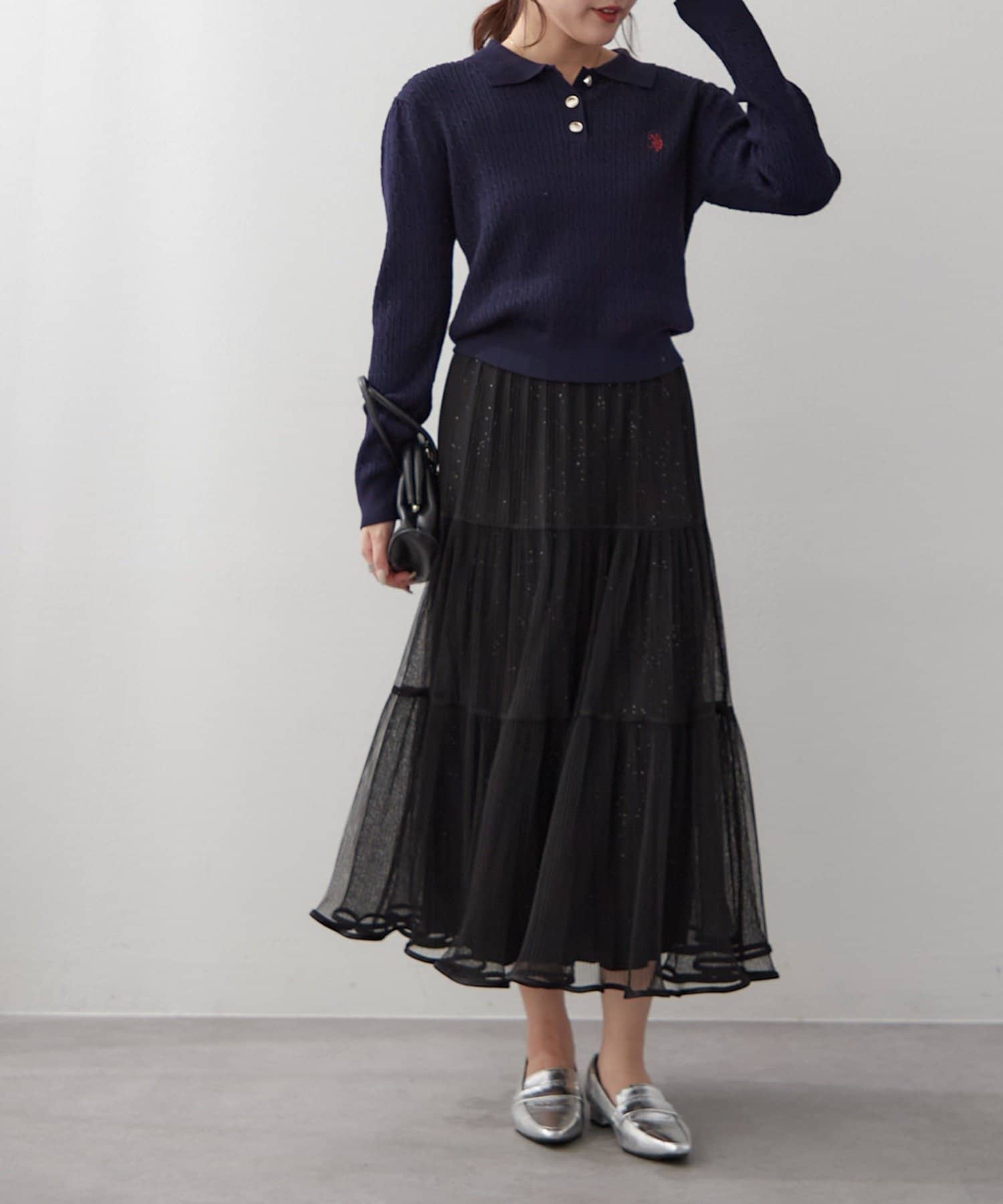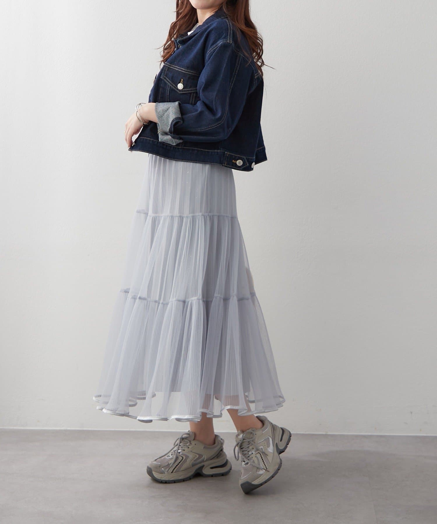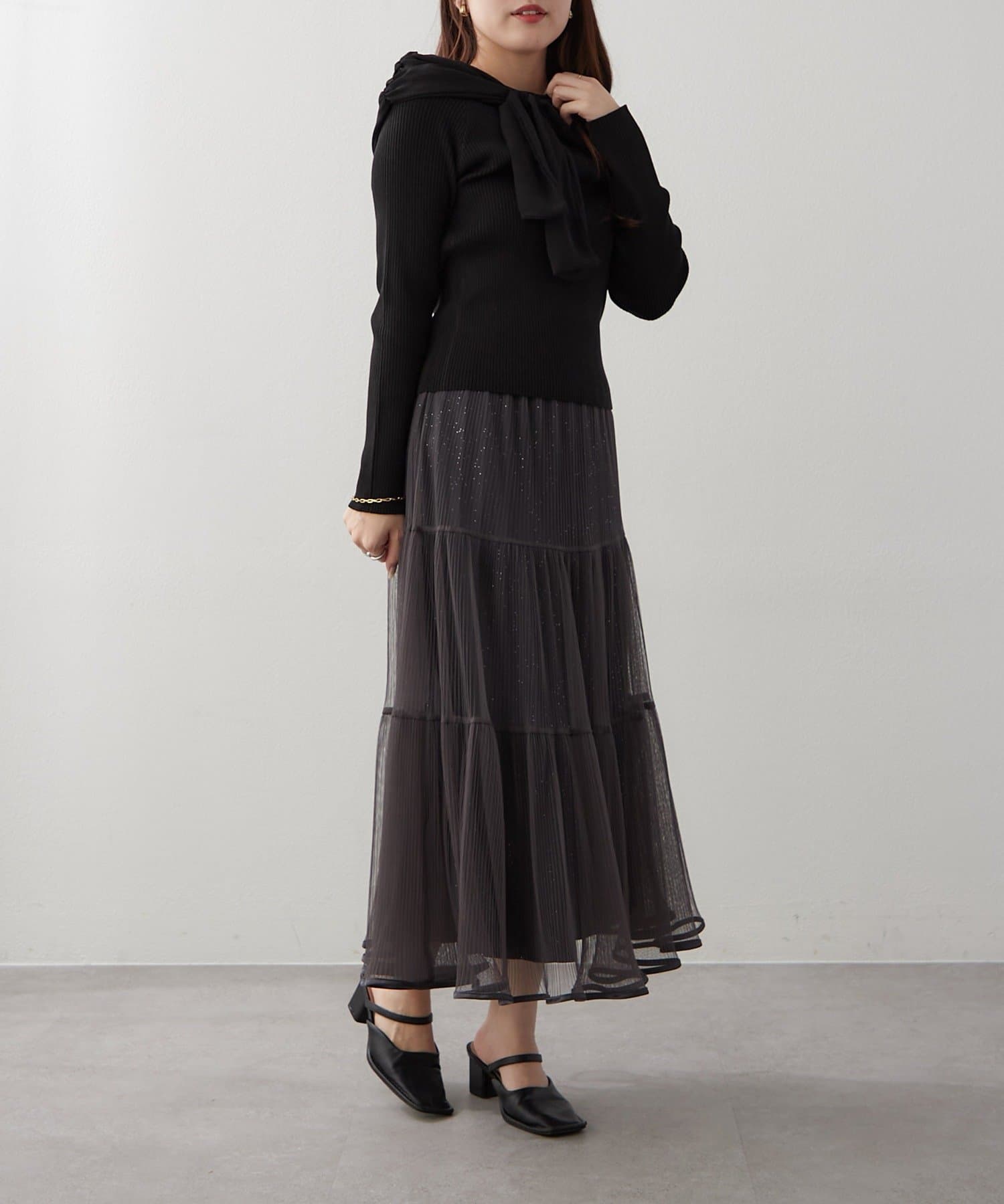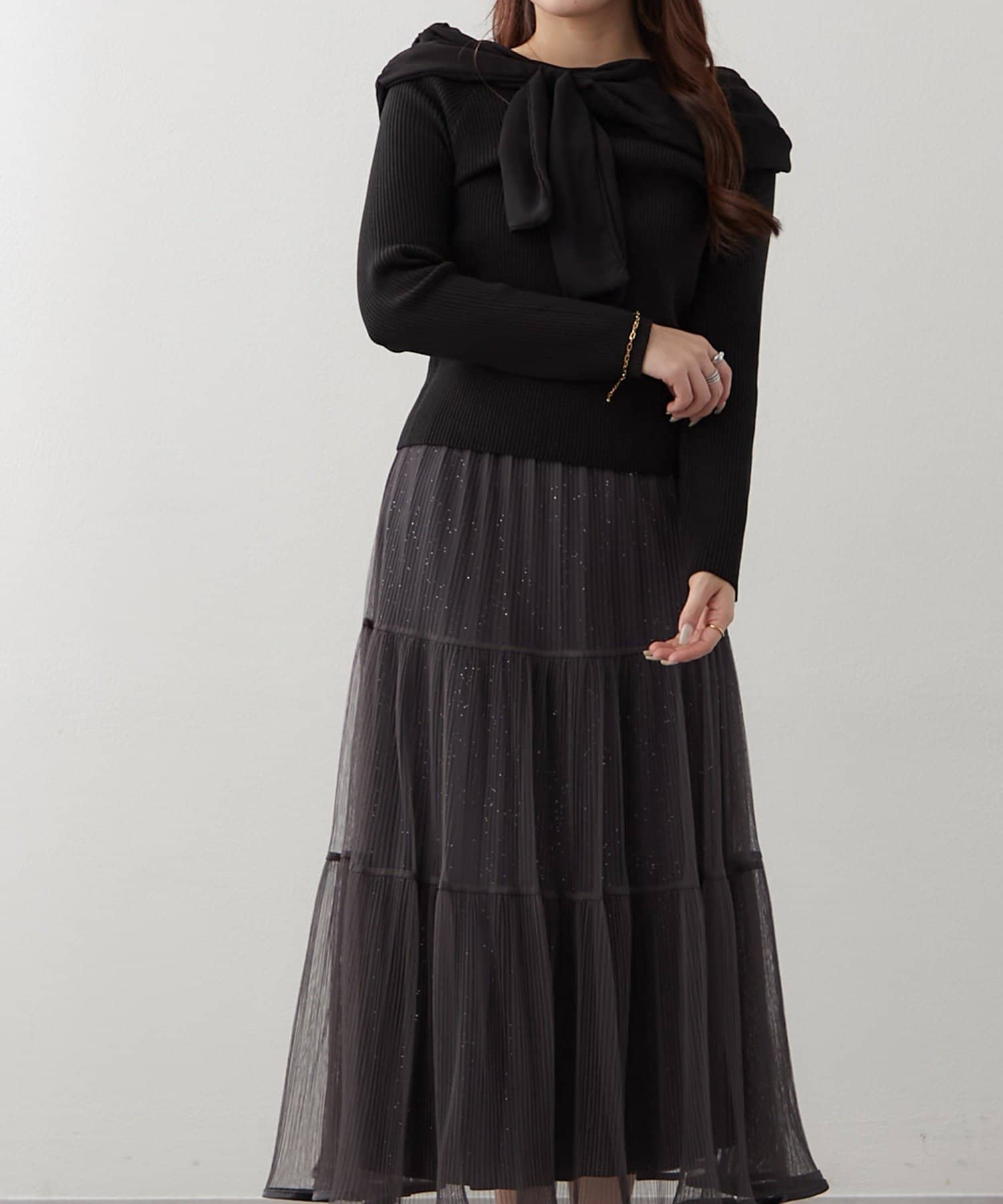 ・ラメ入り素材がさりげなくきらめくチュールスカート