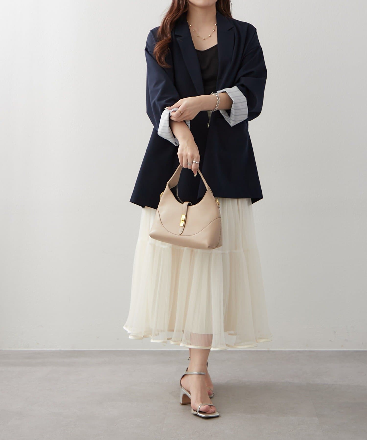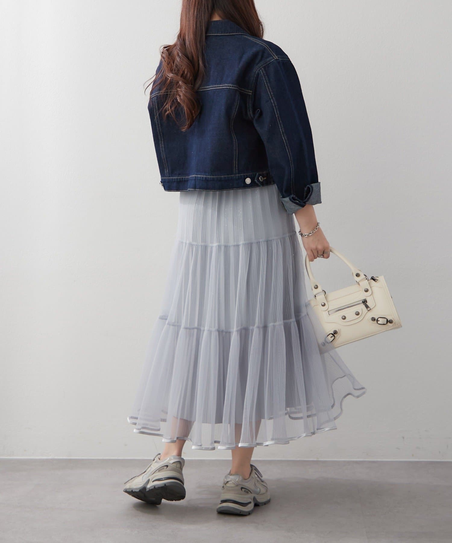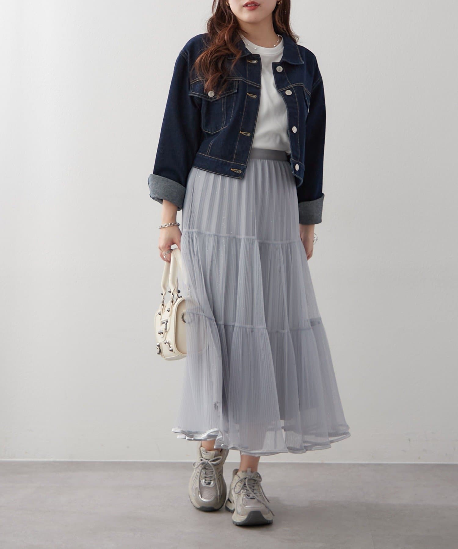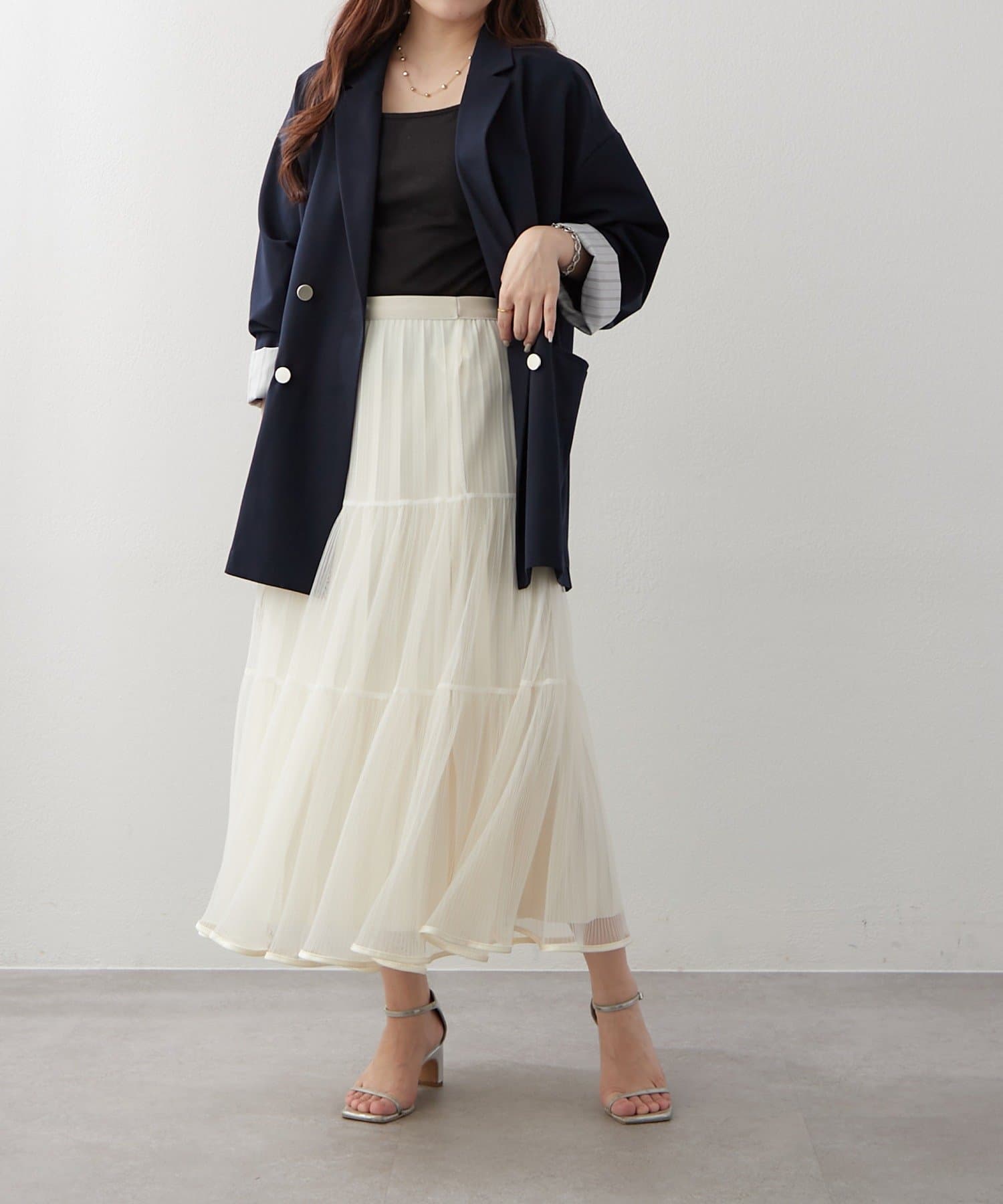 ・ラメ入り素材がさりげなくきらめくチュールスカート