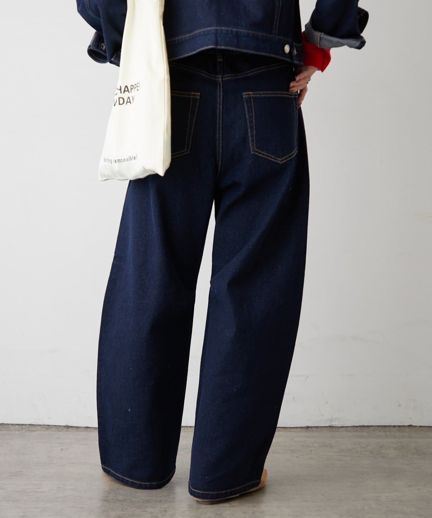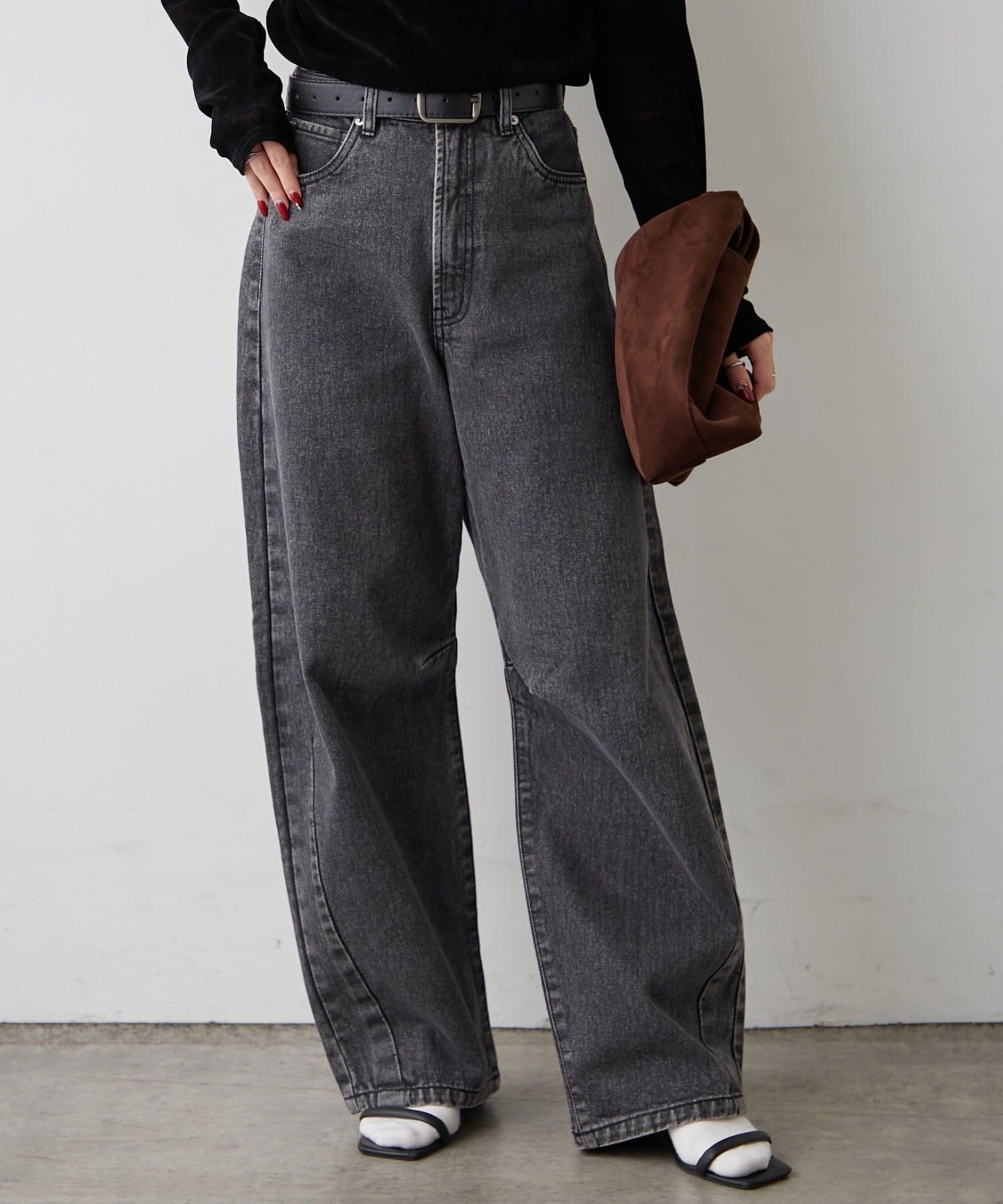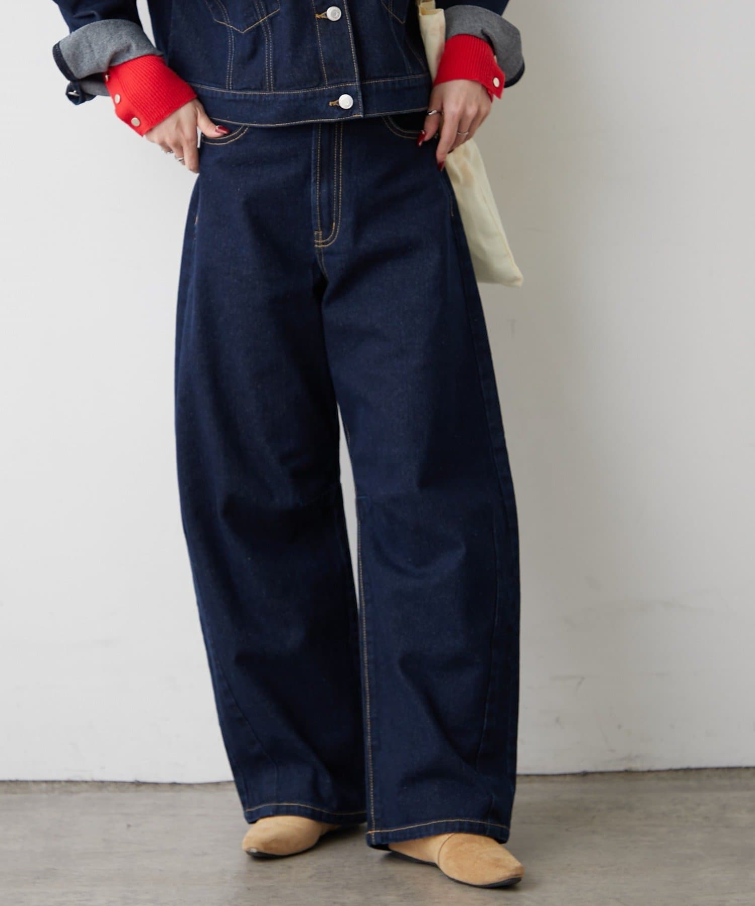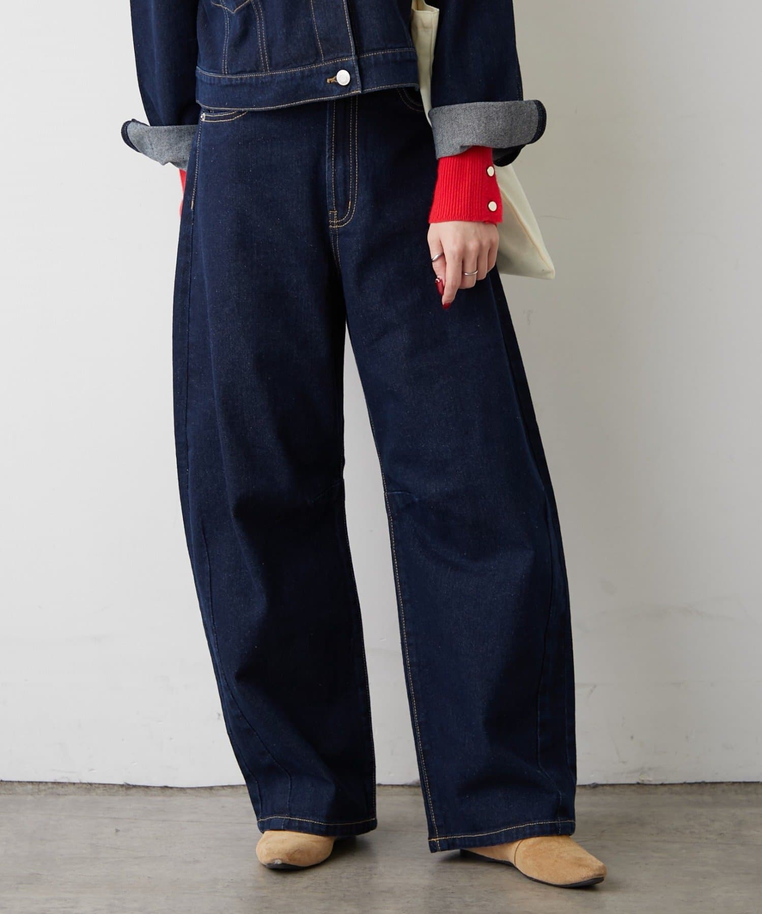 ・ウエストはすっきり、裾にかけて立体感のあるカーブデニムパンツ