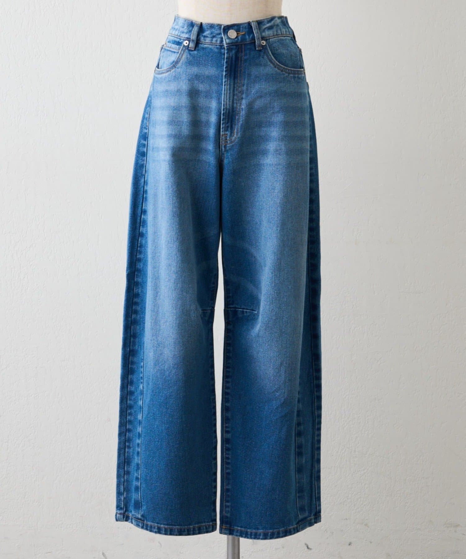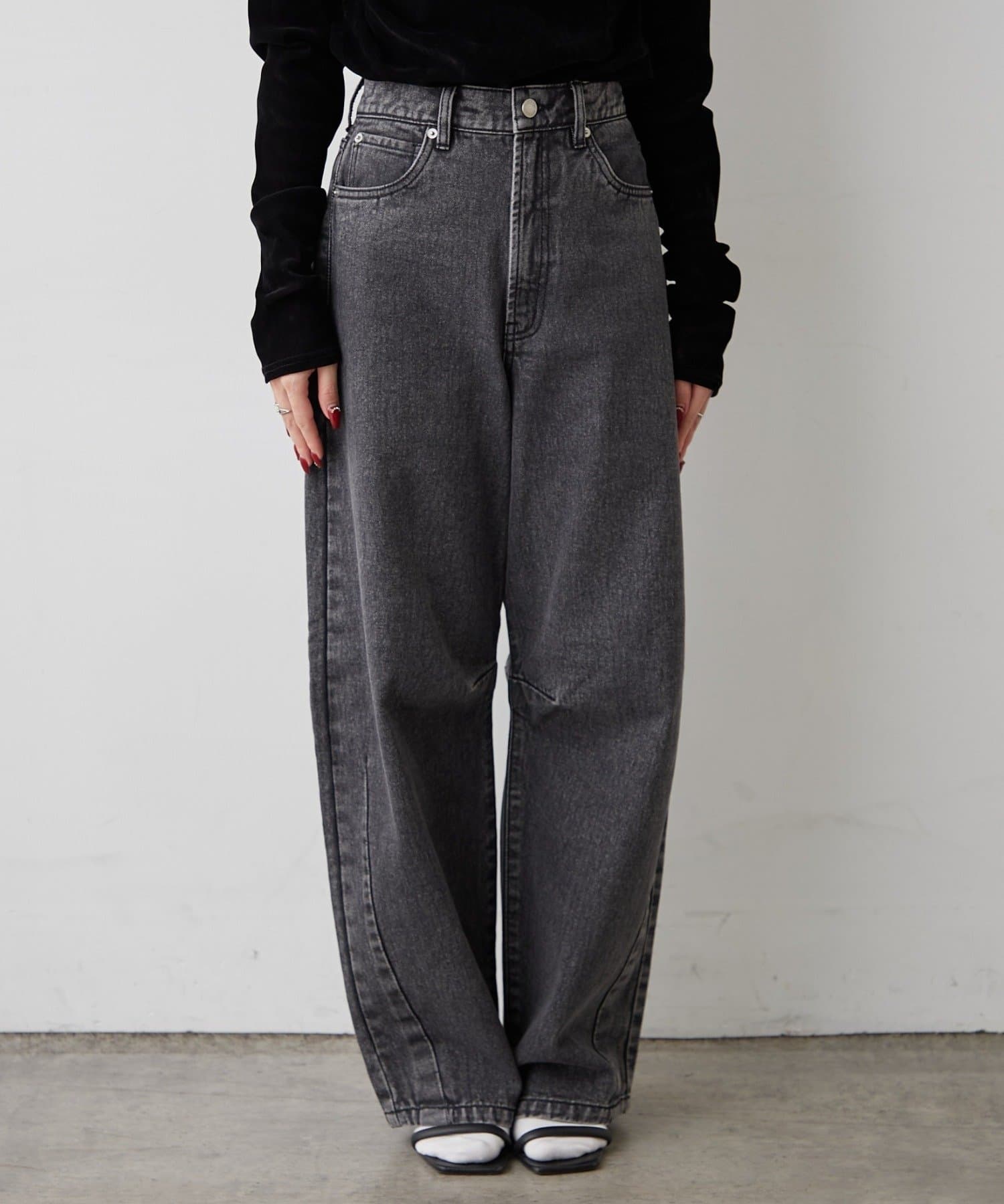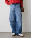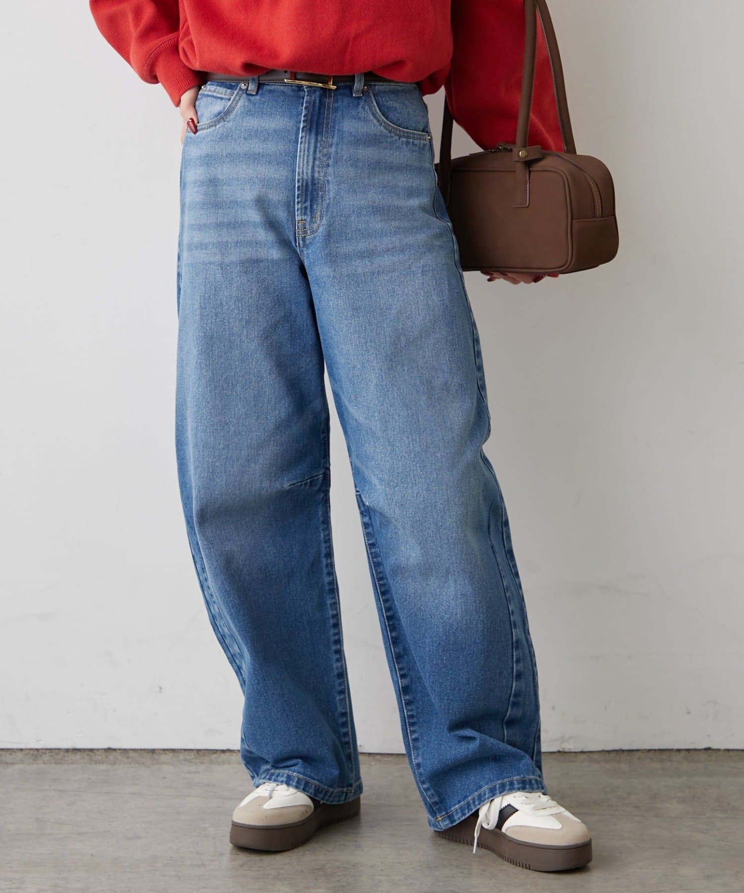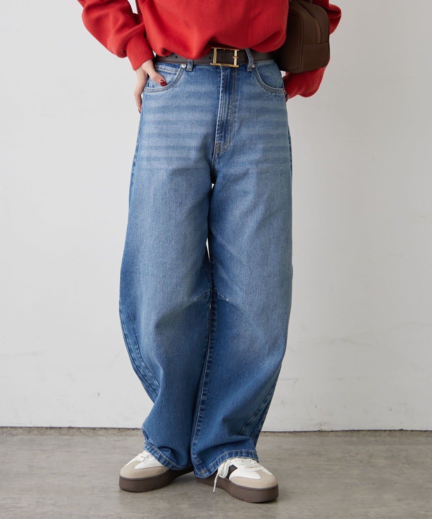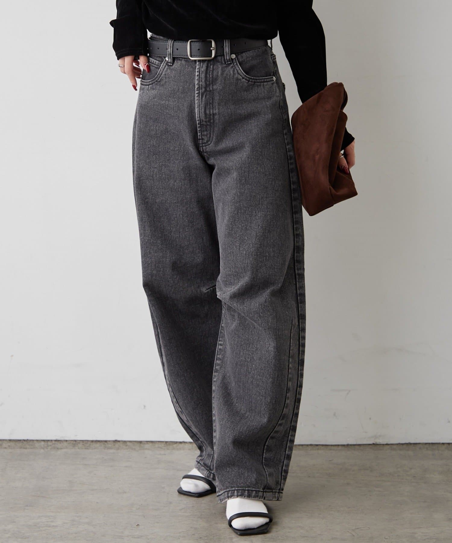 ・ウエストはすっきり、裾にかけて立体感のあるカーブデニムパンツ