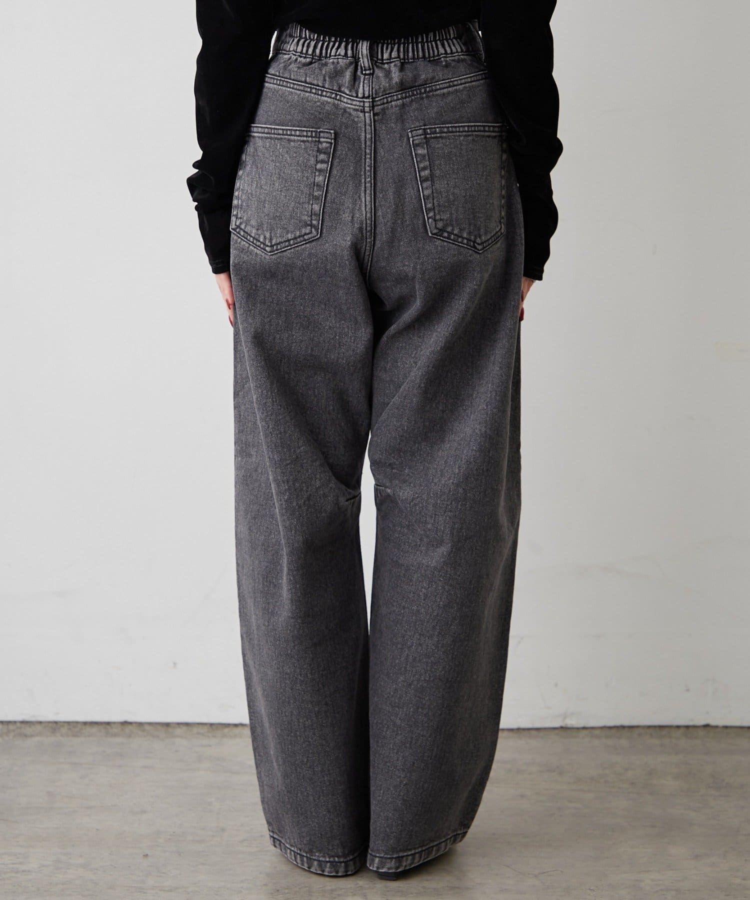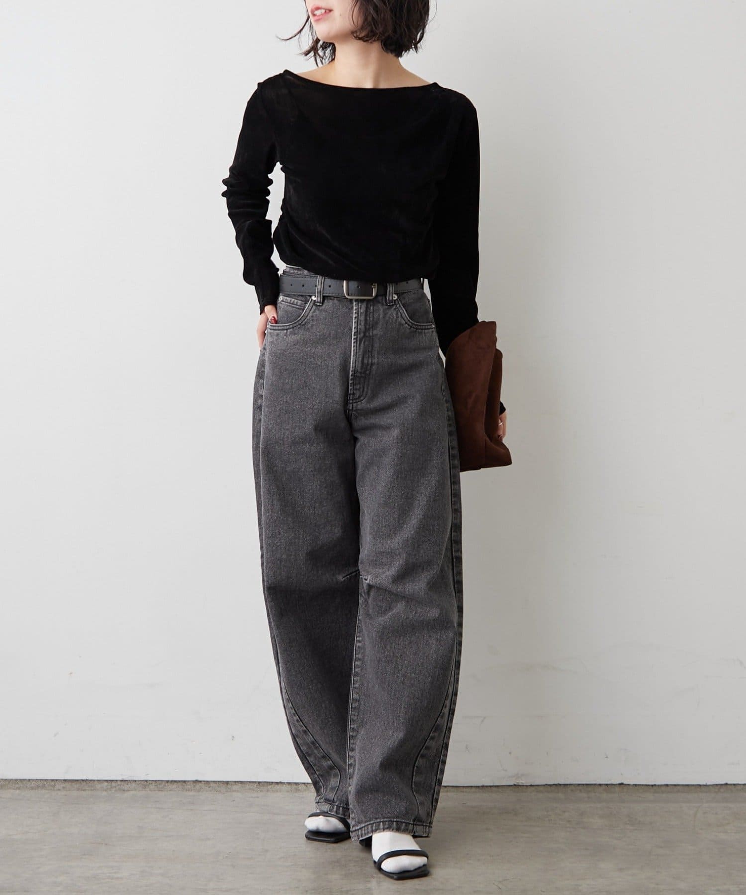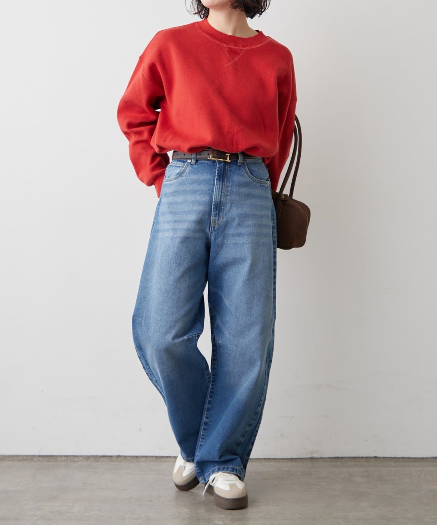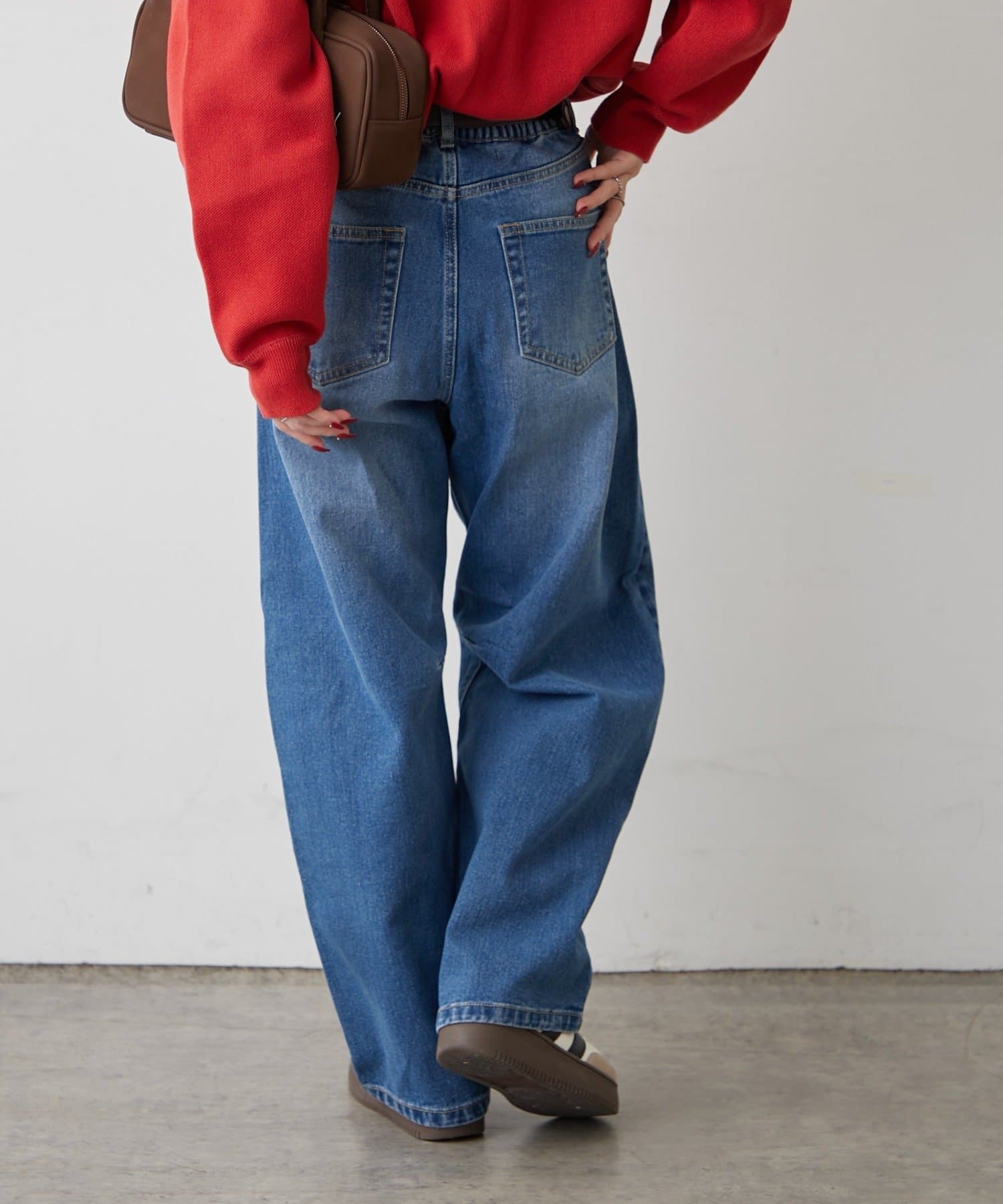 ・ウエストはすっきり、裾にかけて立体感のあるカーブデニムパンツ