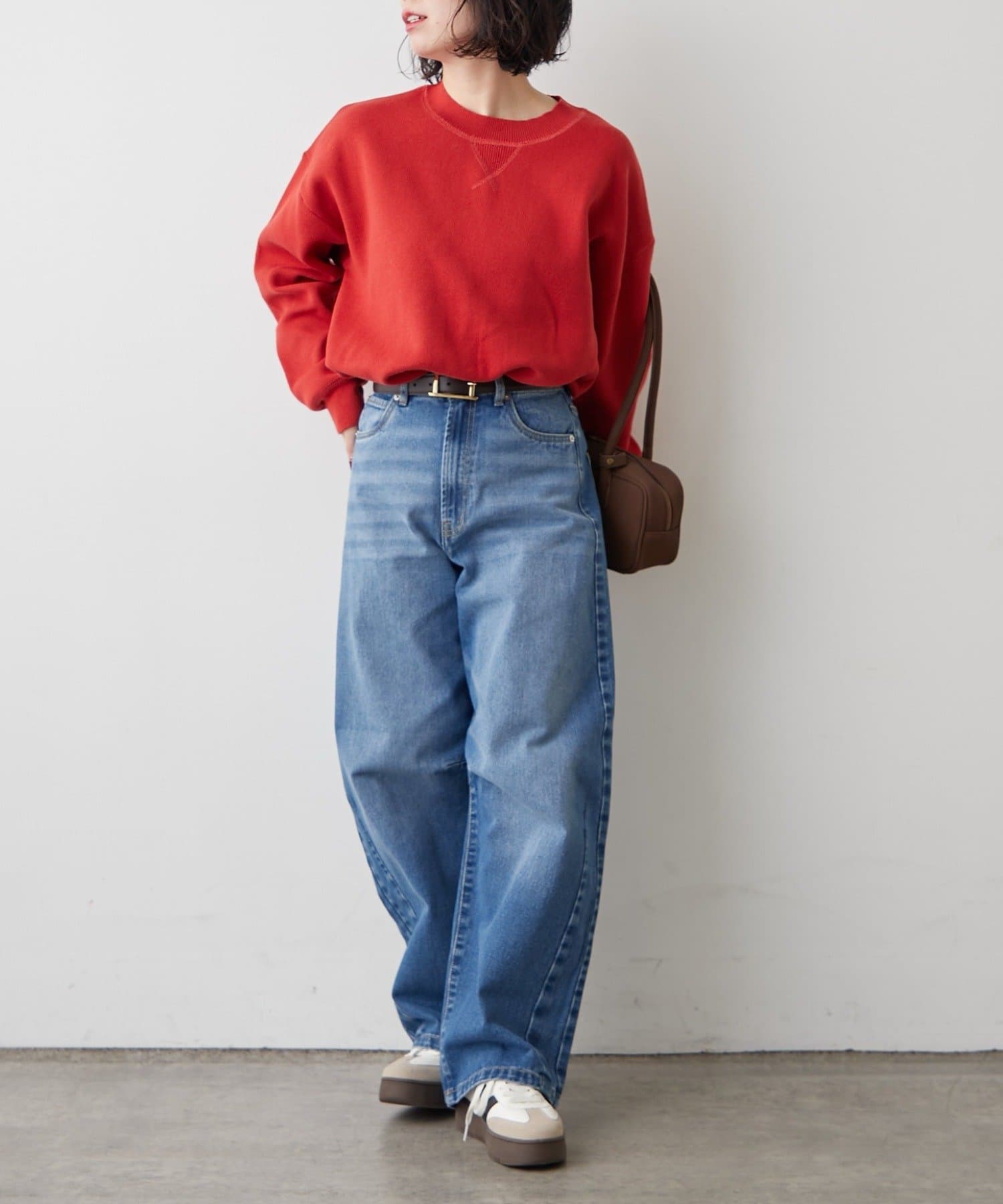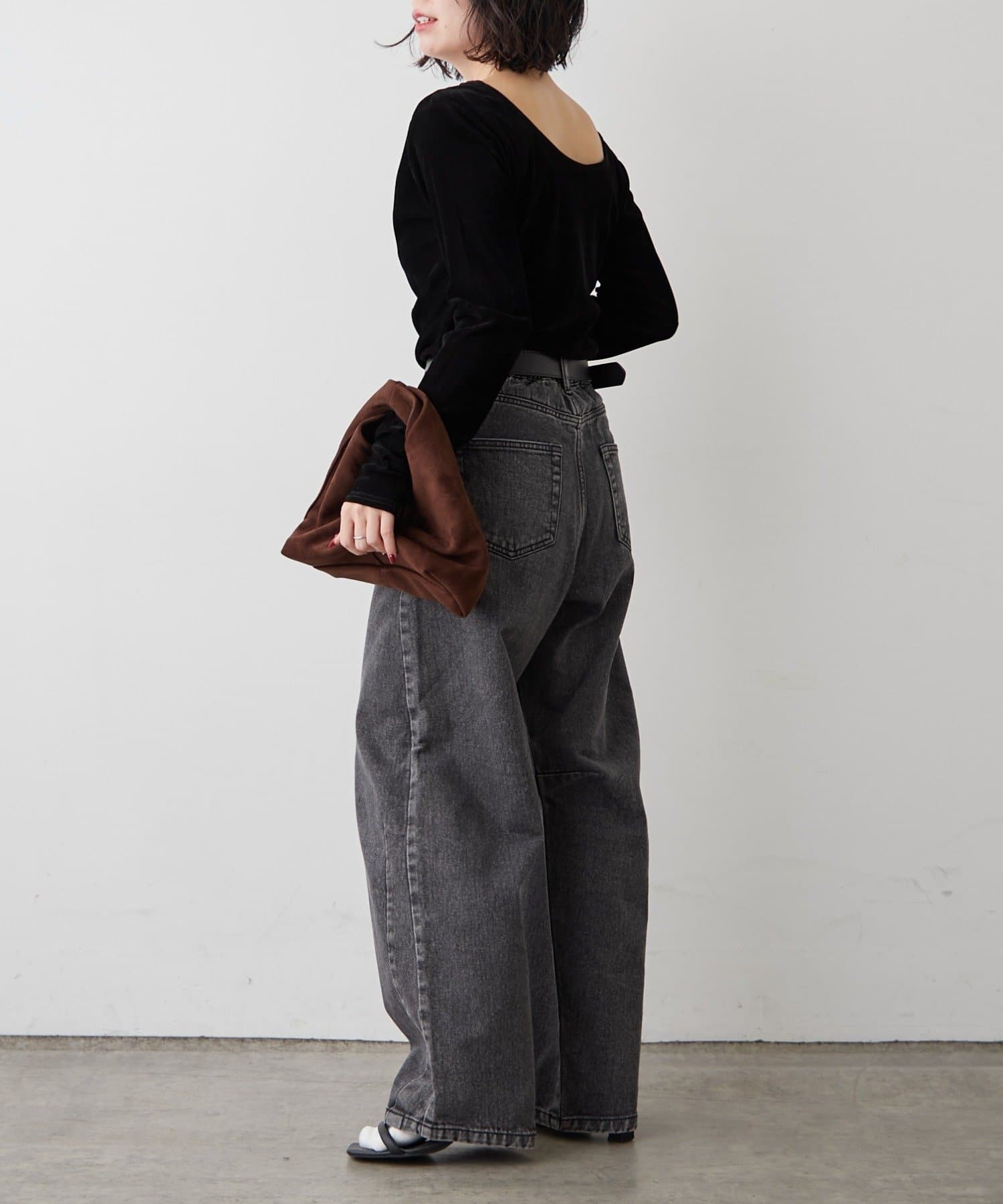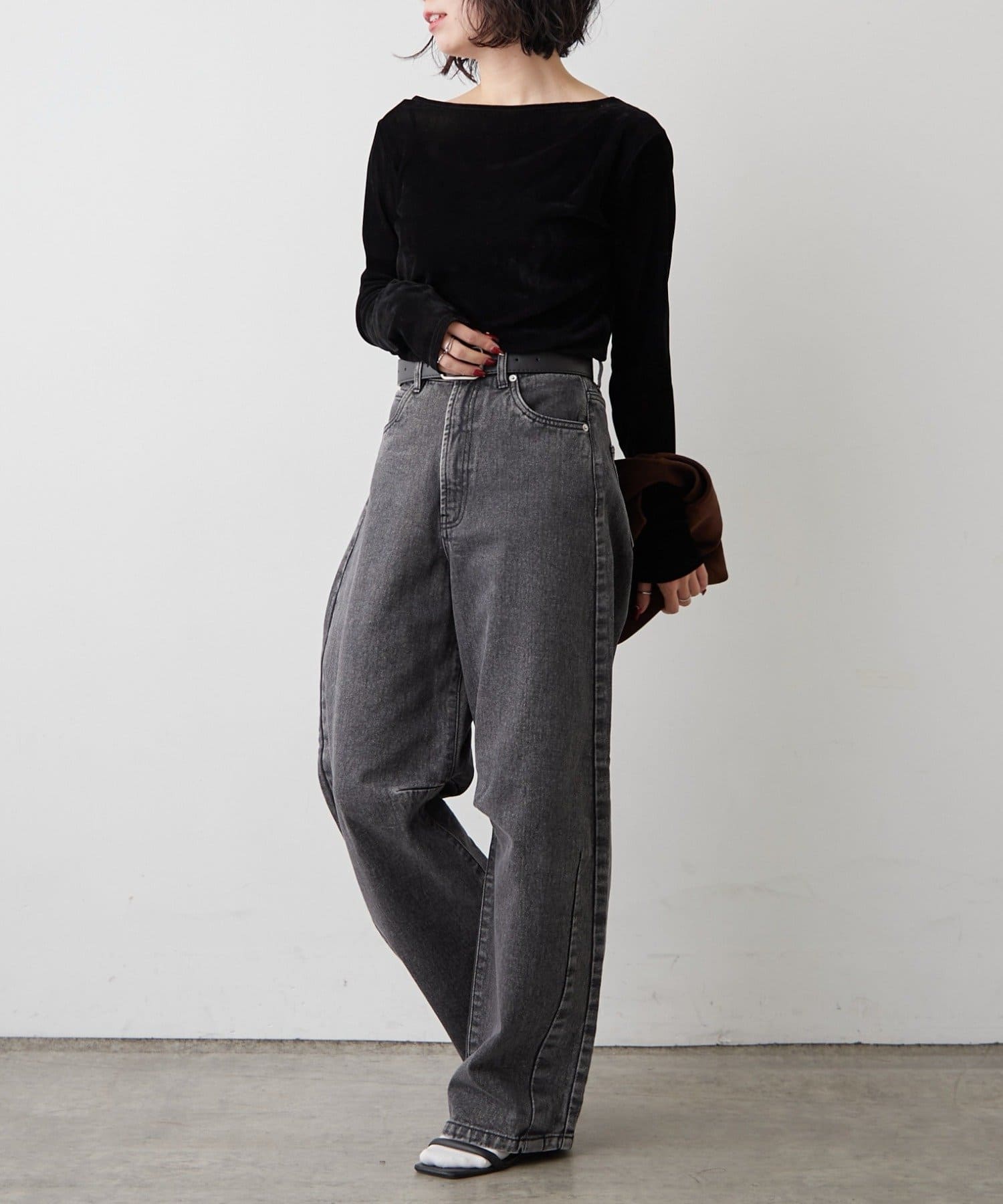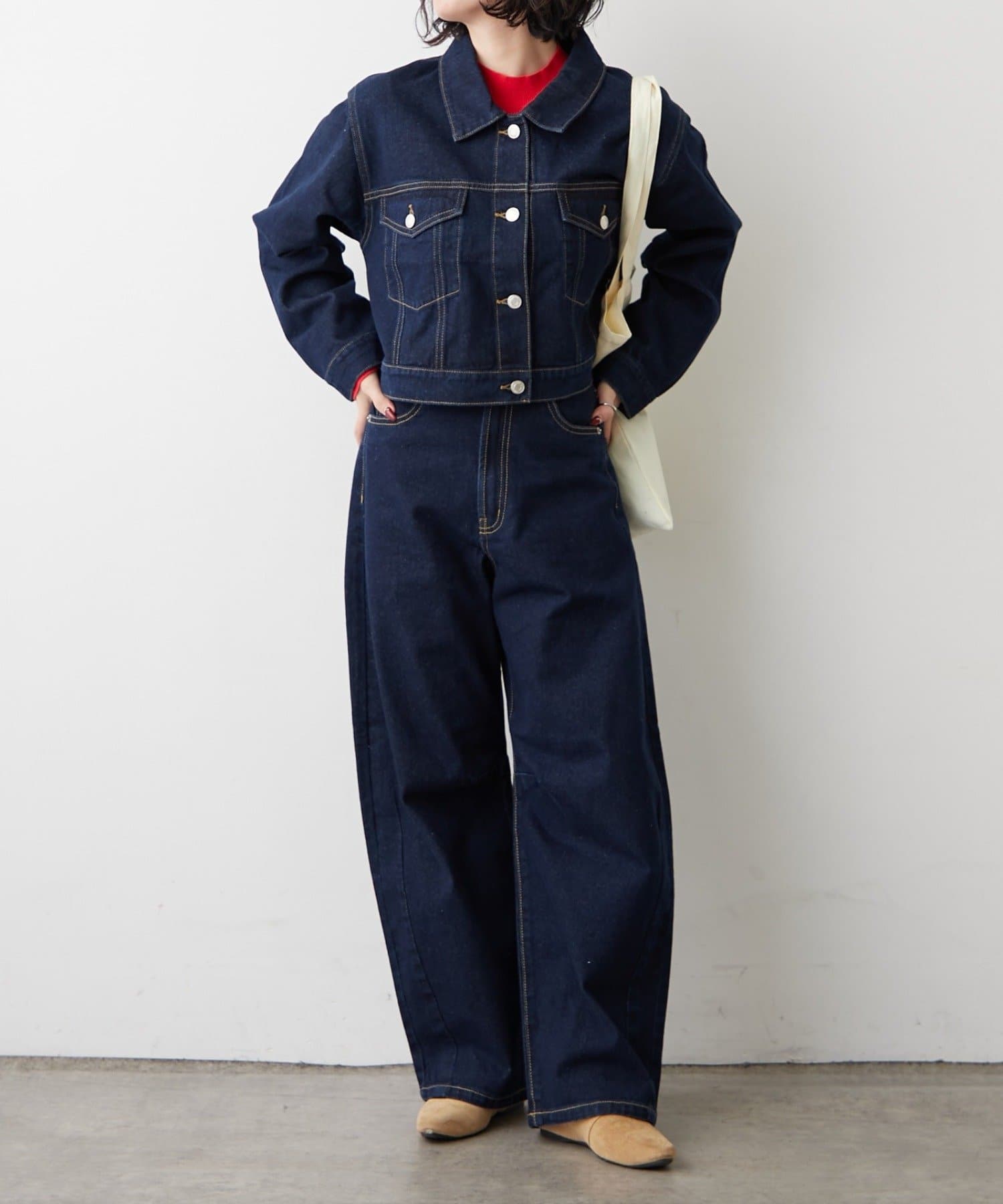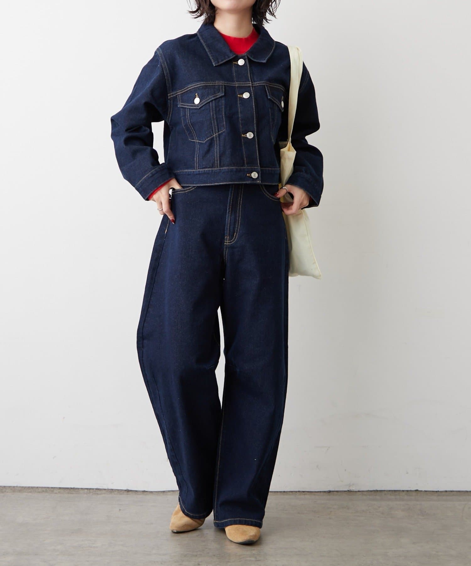 ・ウエストはすっきり、裾にかけて立体感のあるカーブデニムパンツ