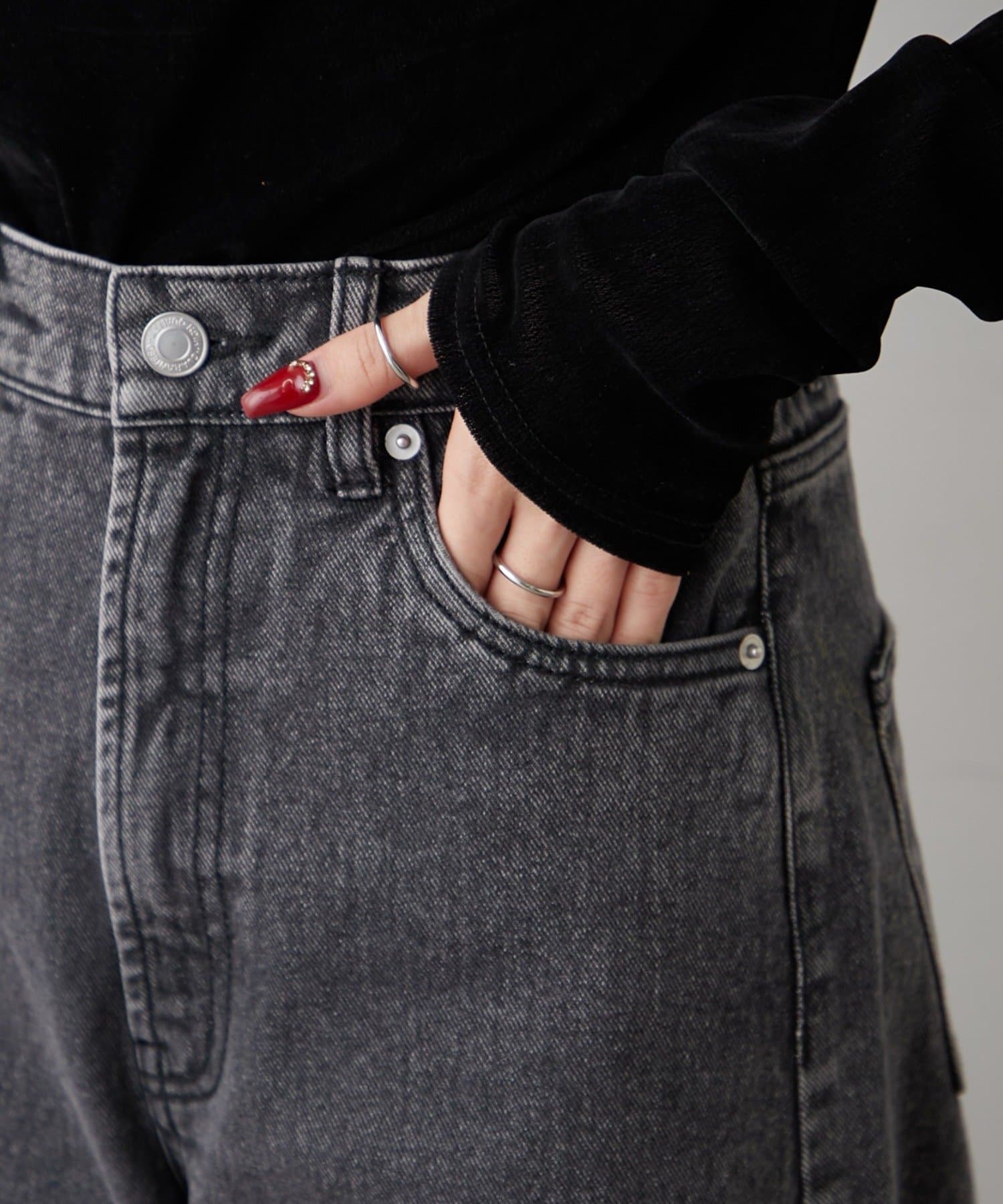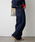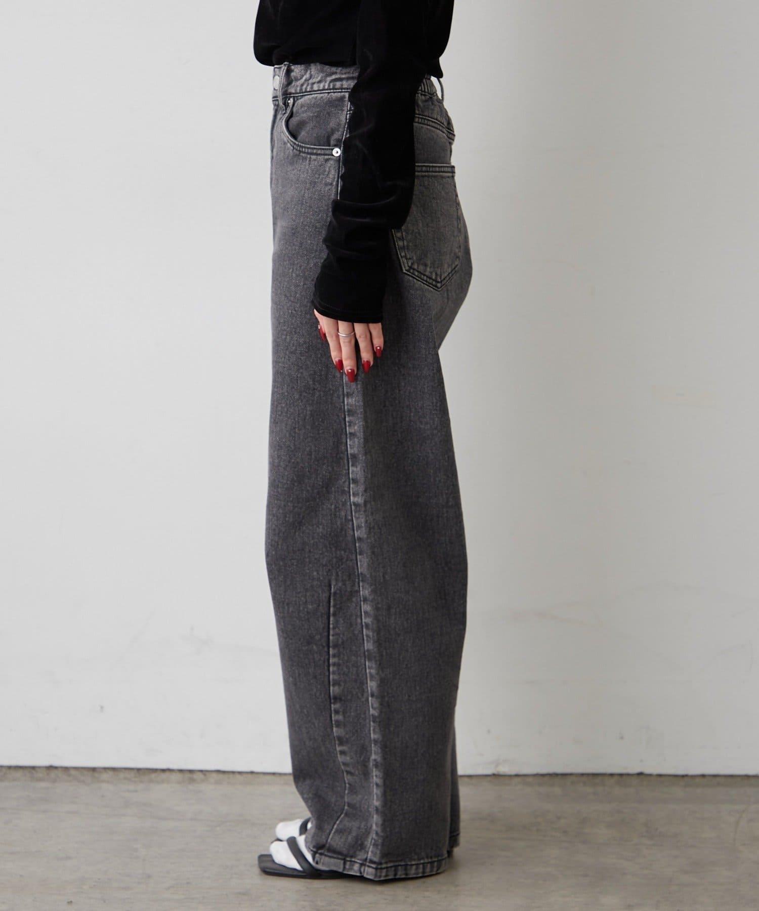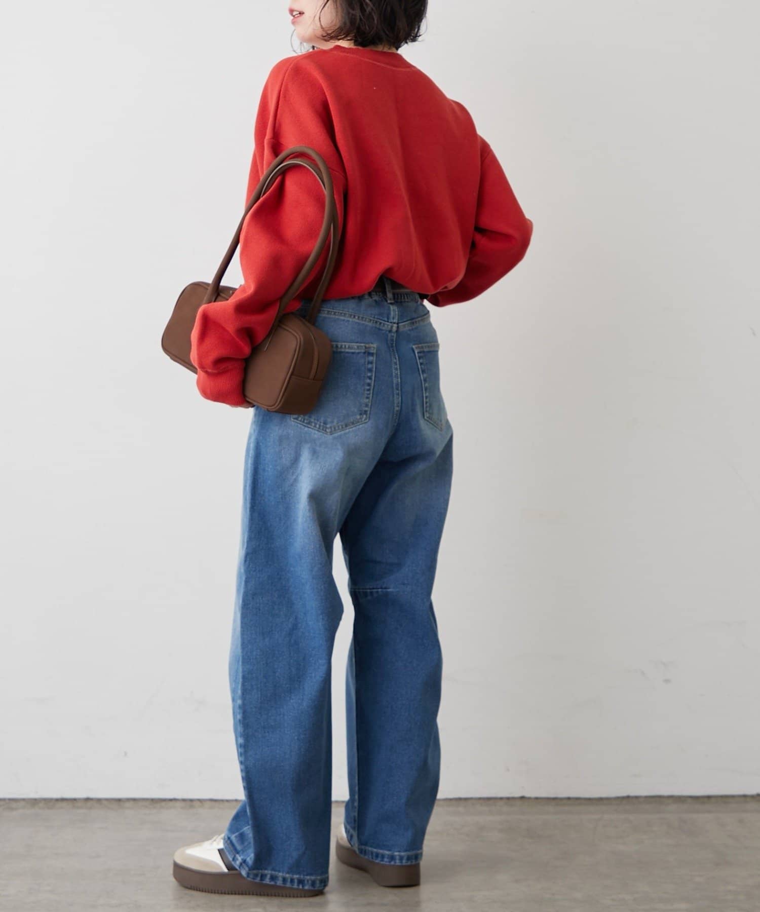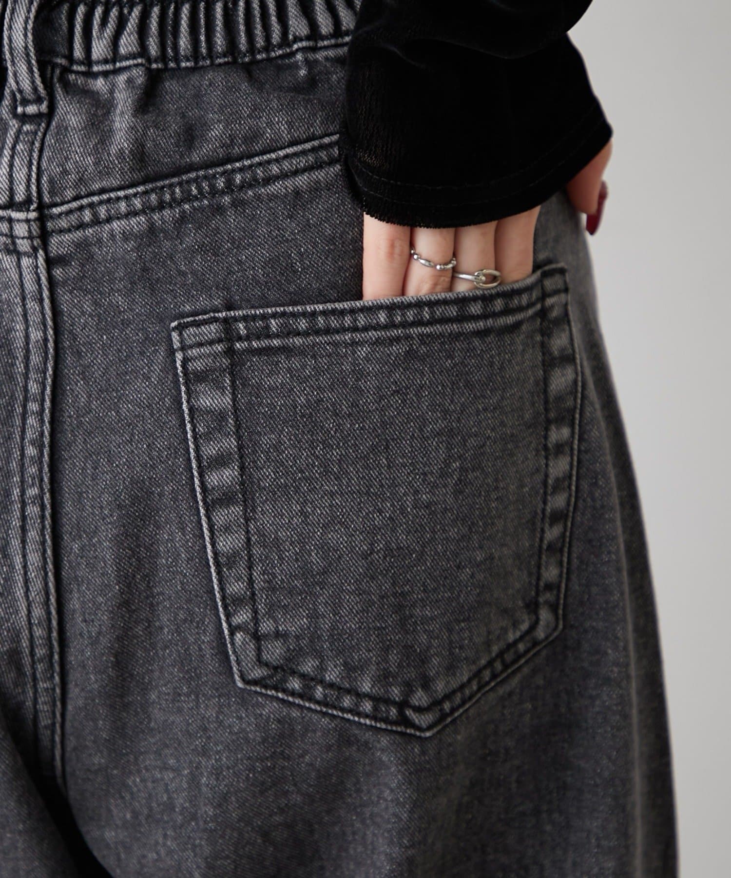・ウエストはすっきり、裾にかけて立体感のあるカーブデニムパンツ