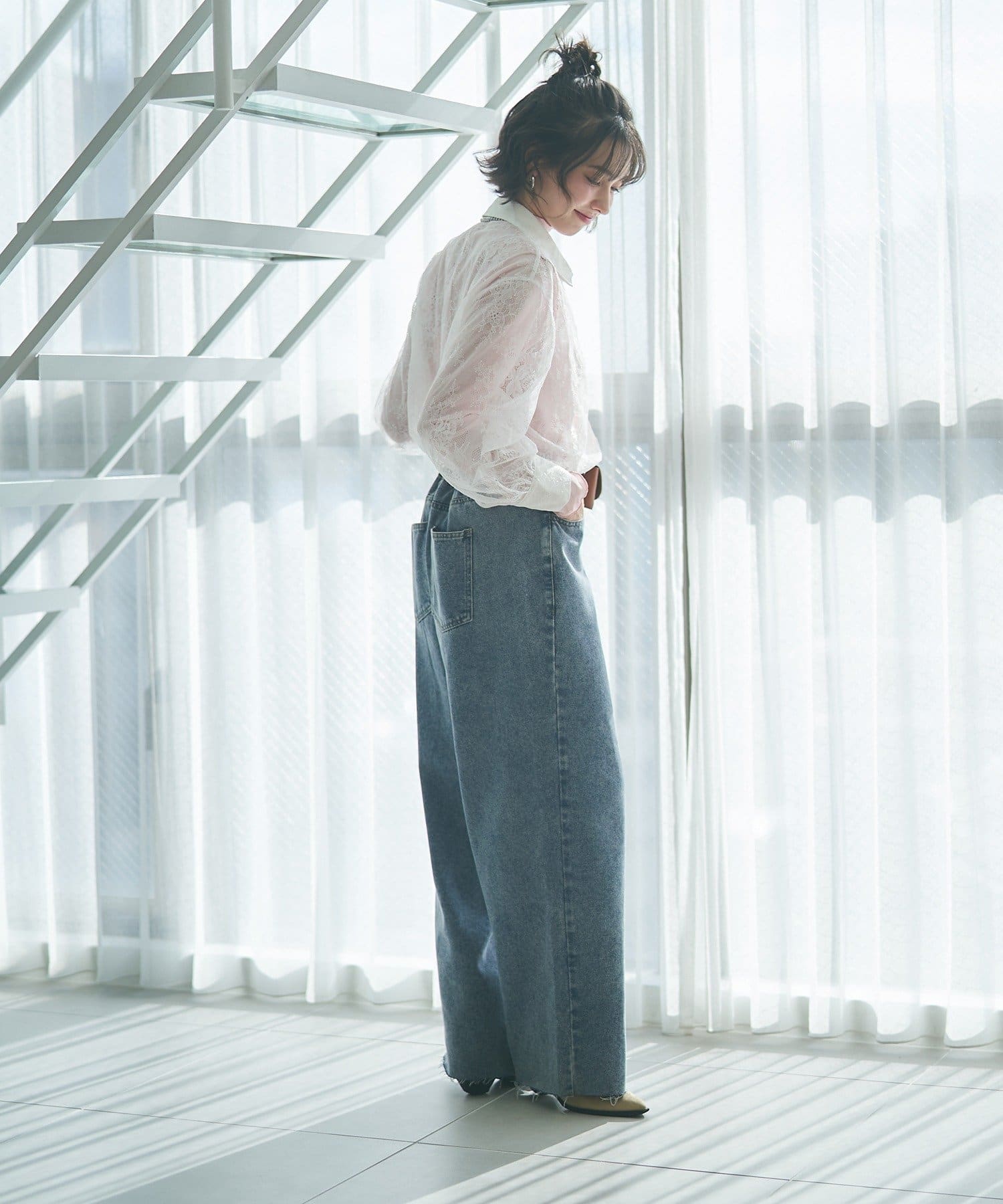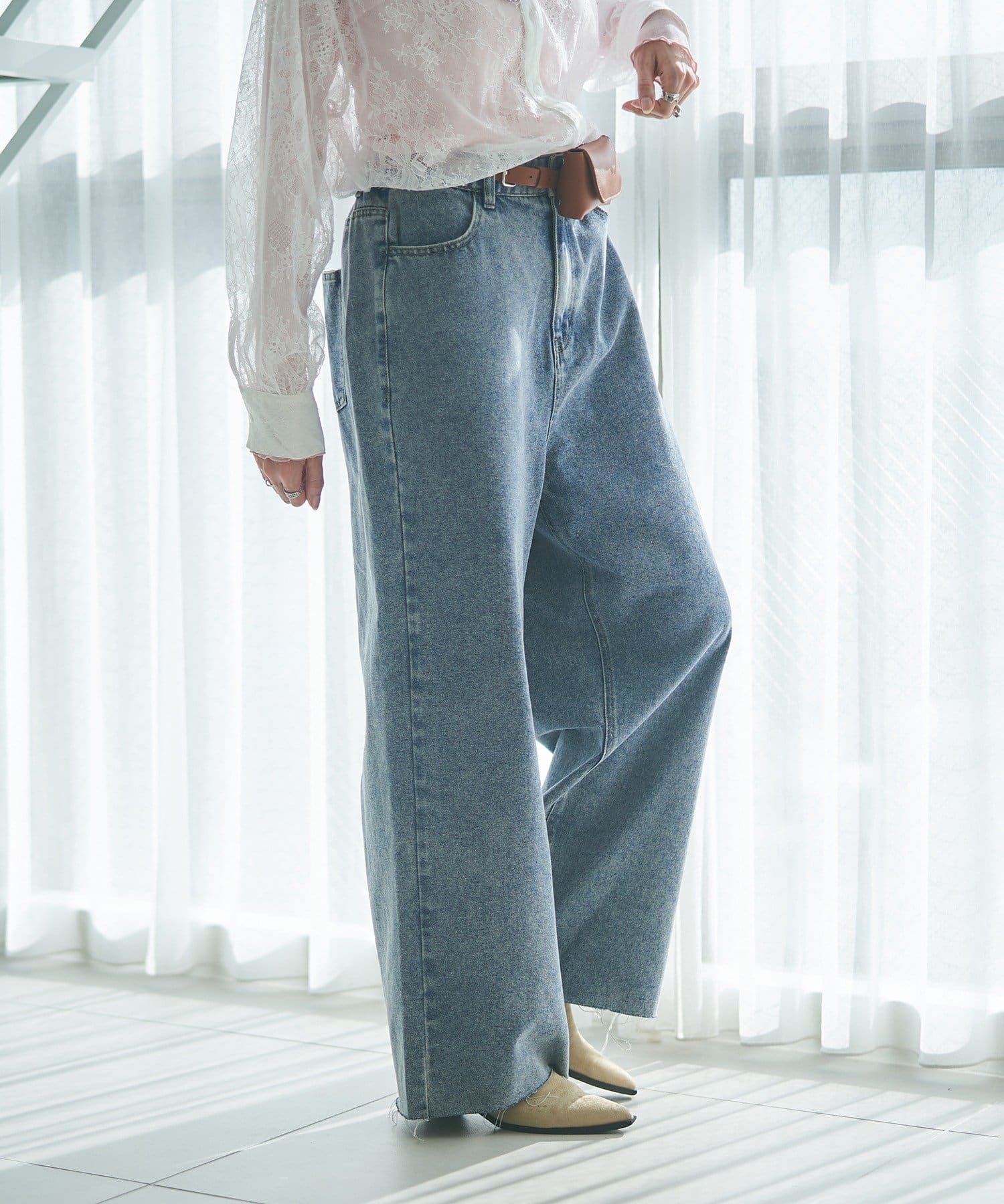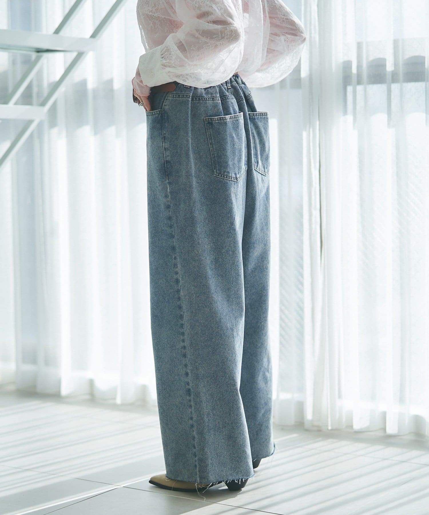 【2026SS】【ウエスト調節&セルフカット可能】リメイクライクデニムワイドパンツ