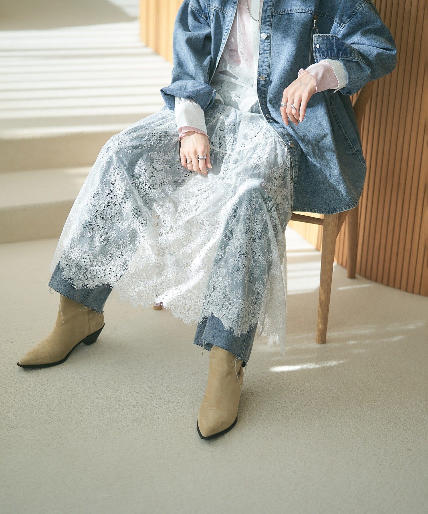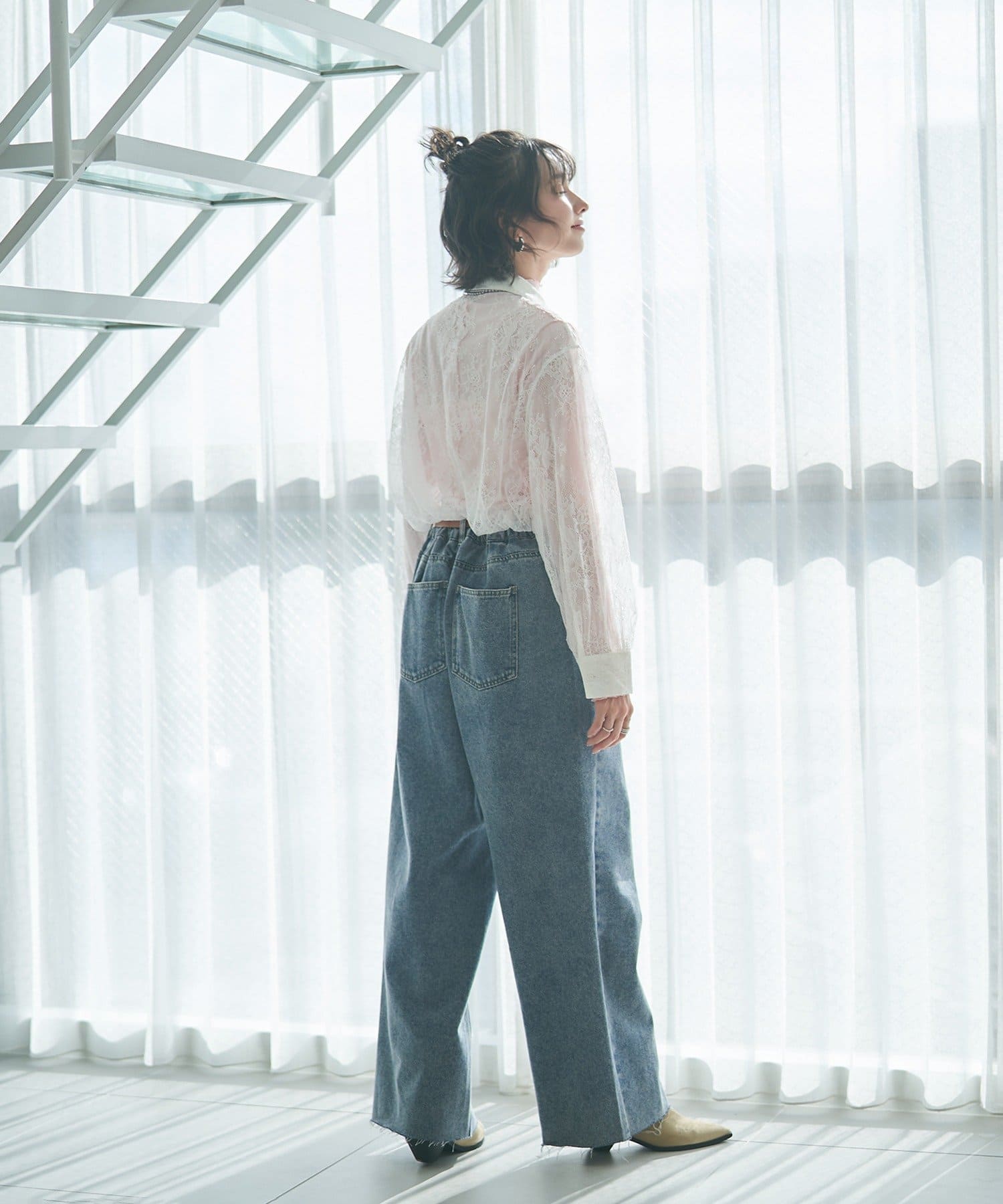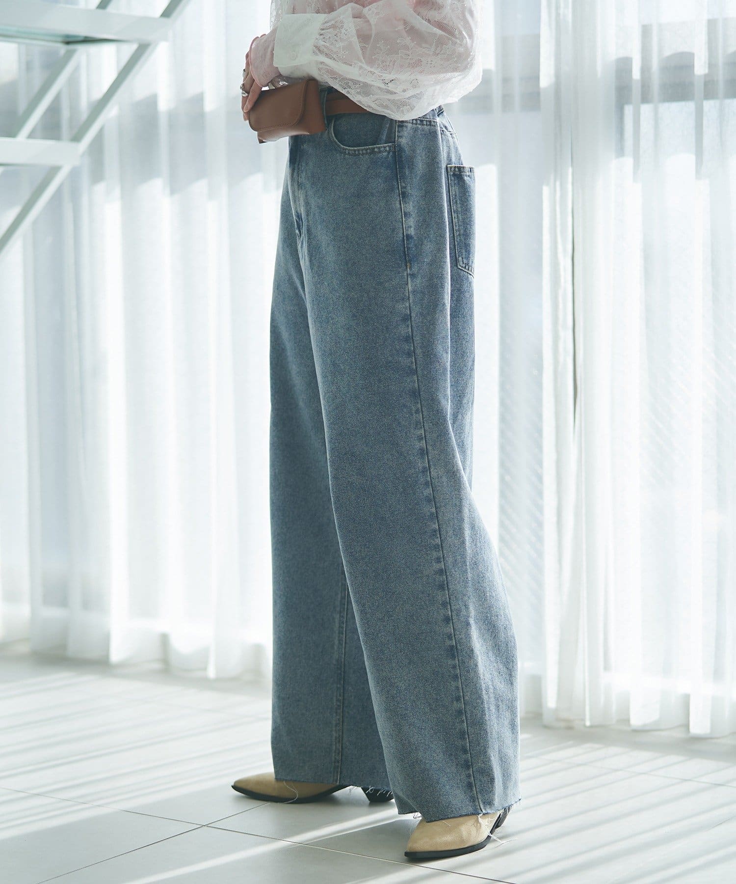 【2026SS】【ウエスト調節&セルフカット可能】リメイクライクデニムワイドパンツ