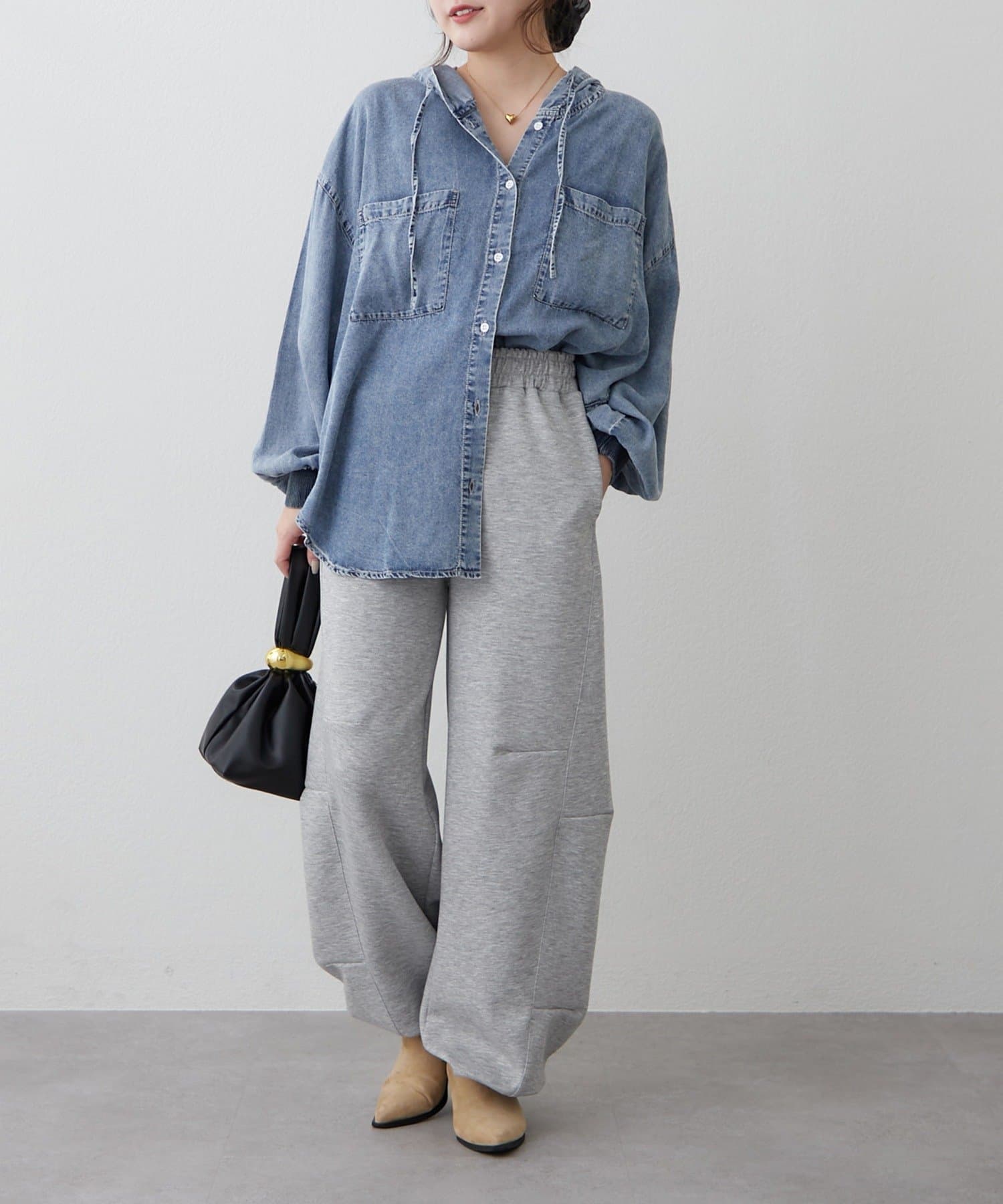 ・レースアイテム合わせなら部屋着感を押さえたスタイリングに