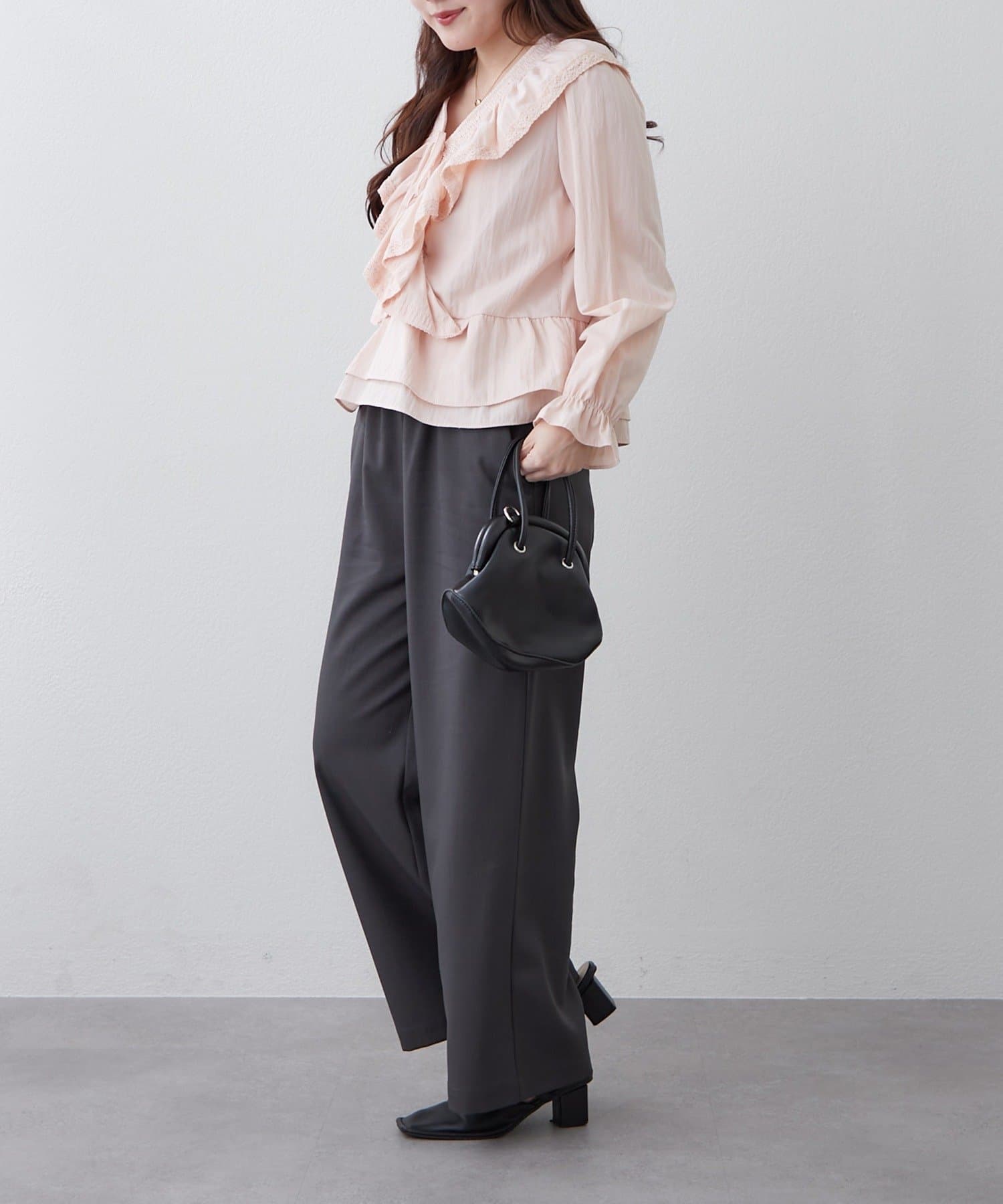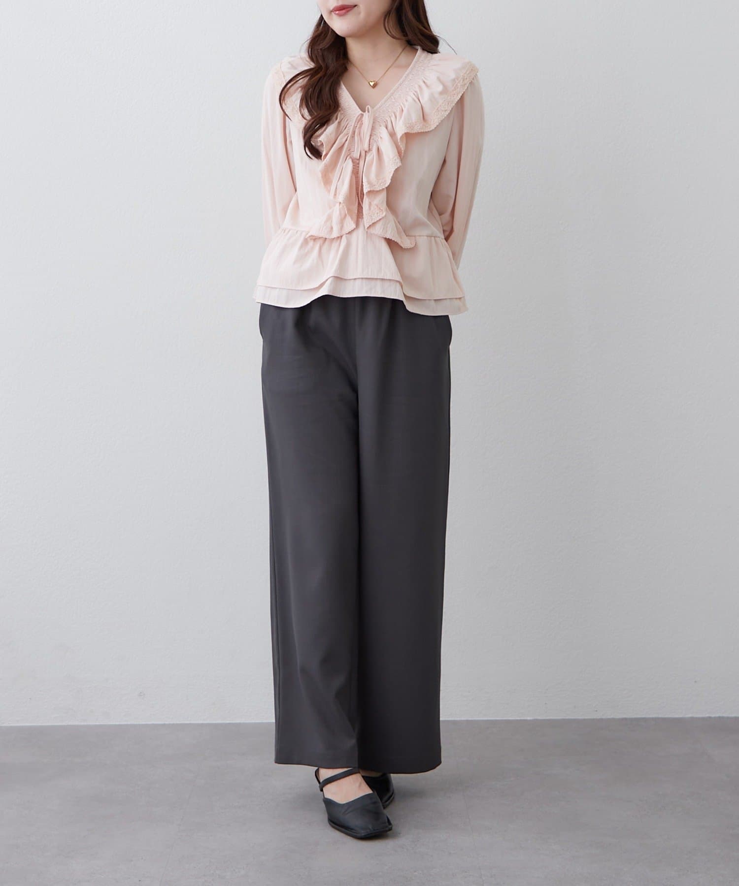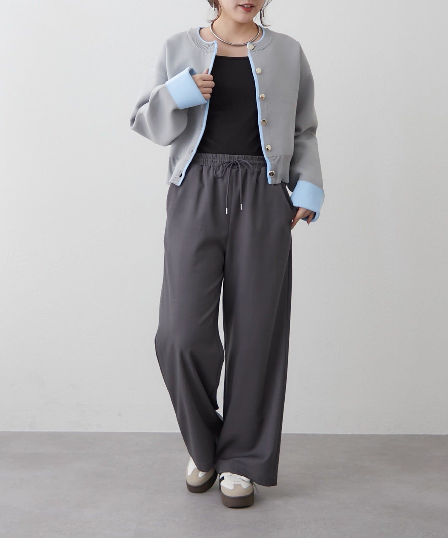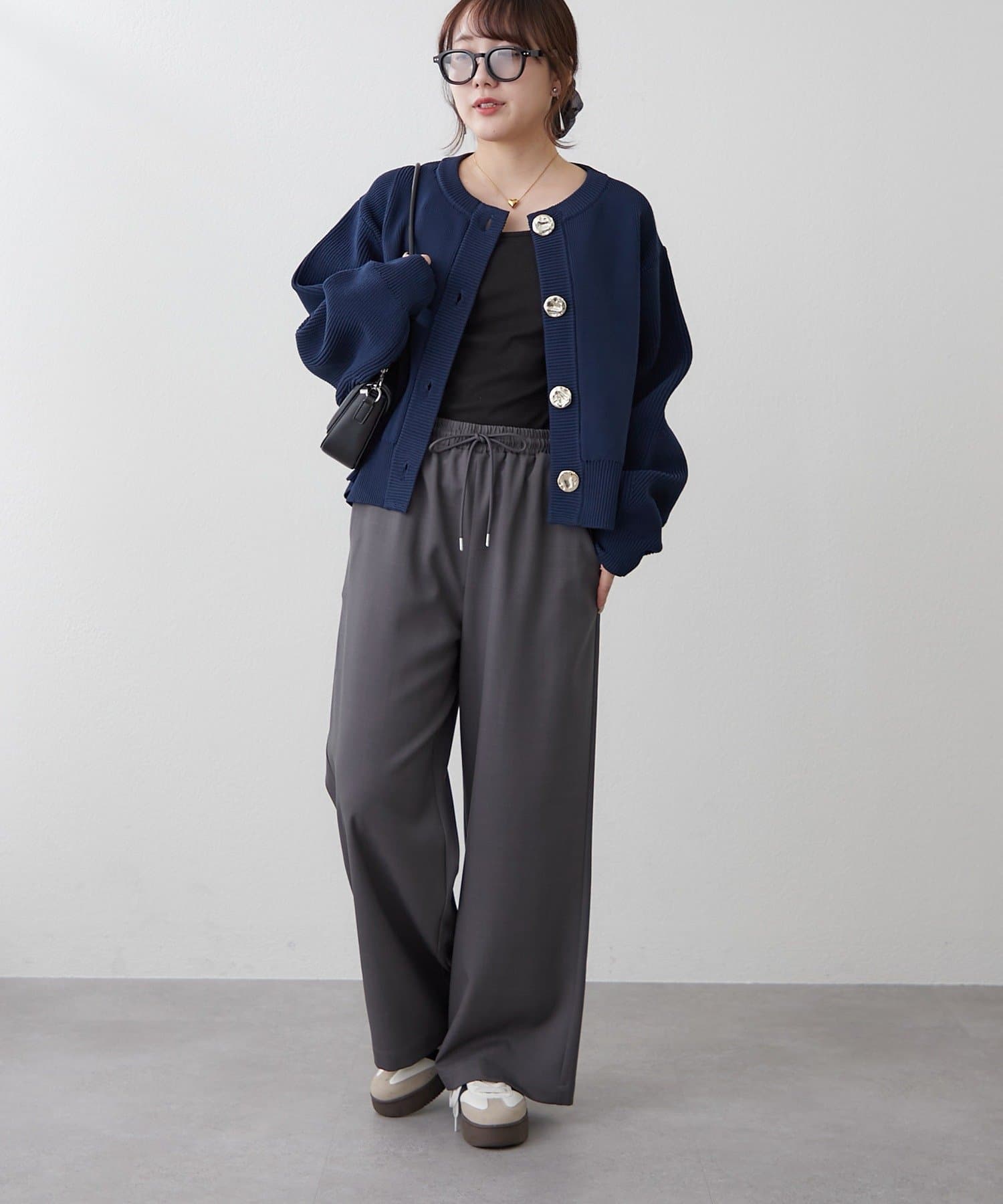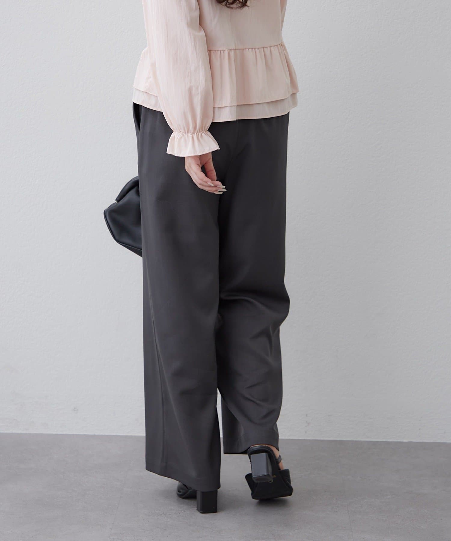 ・ウエスト総ゴムながらすとんと落ちるワイドなシルエットで脚長効果◎