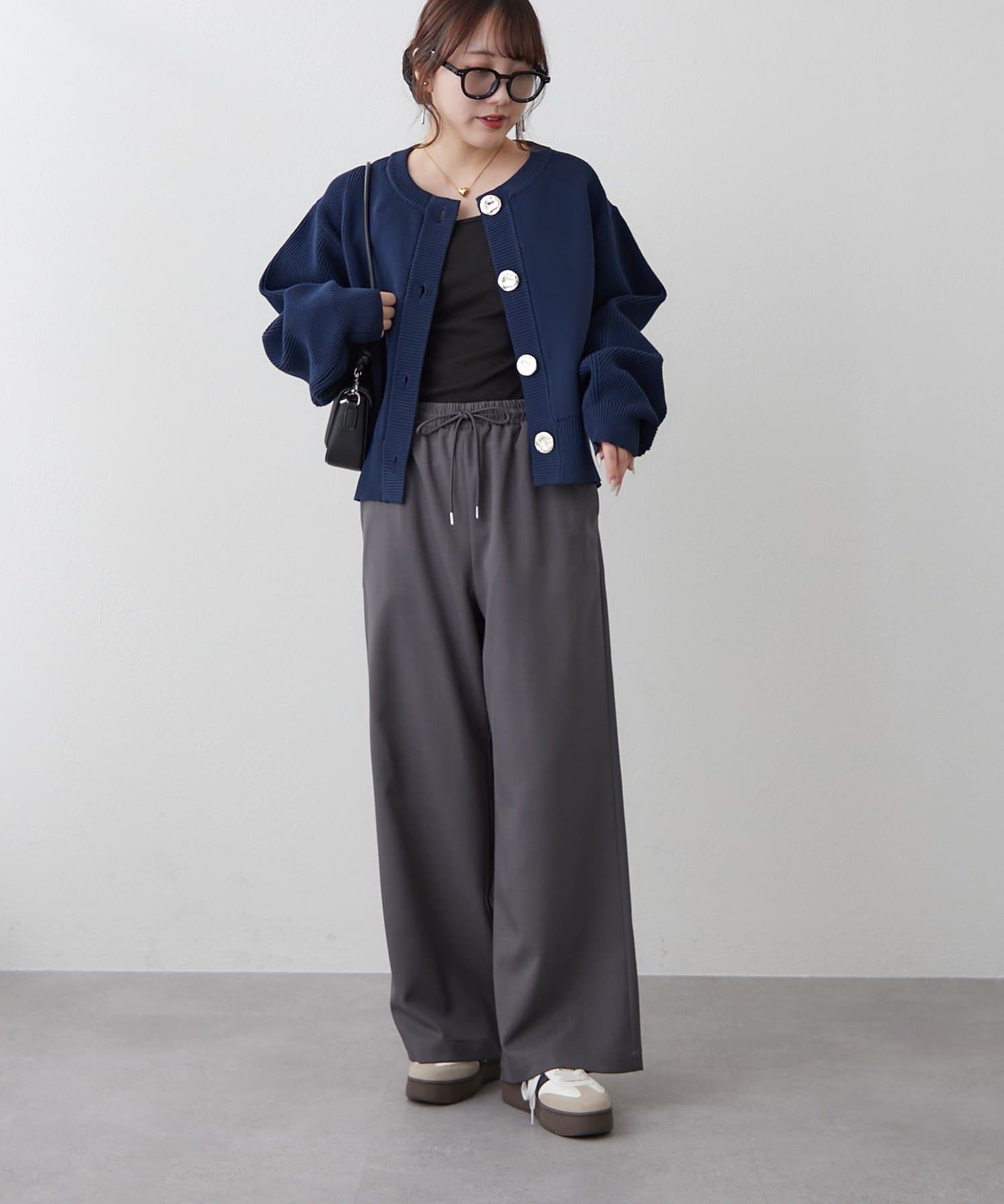 ・脚のラインを拾わないので、楽に履けるワイドパンツ