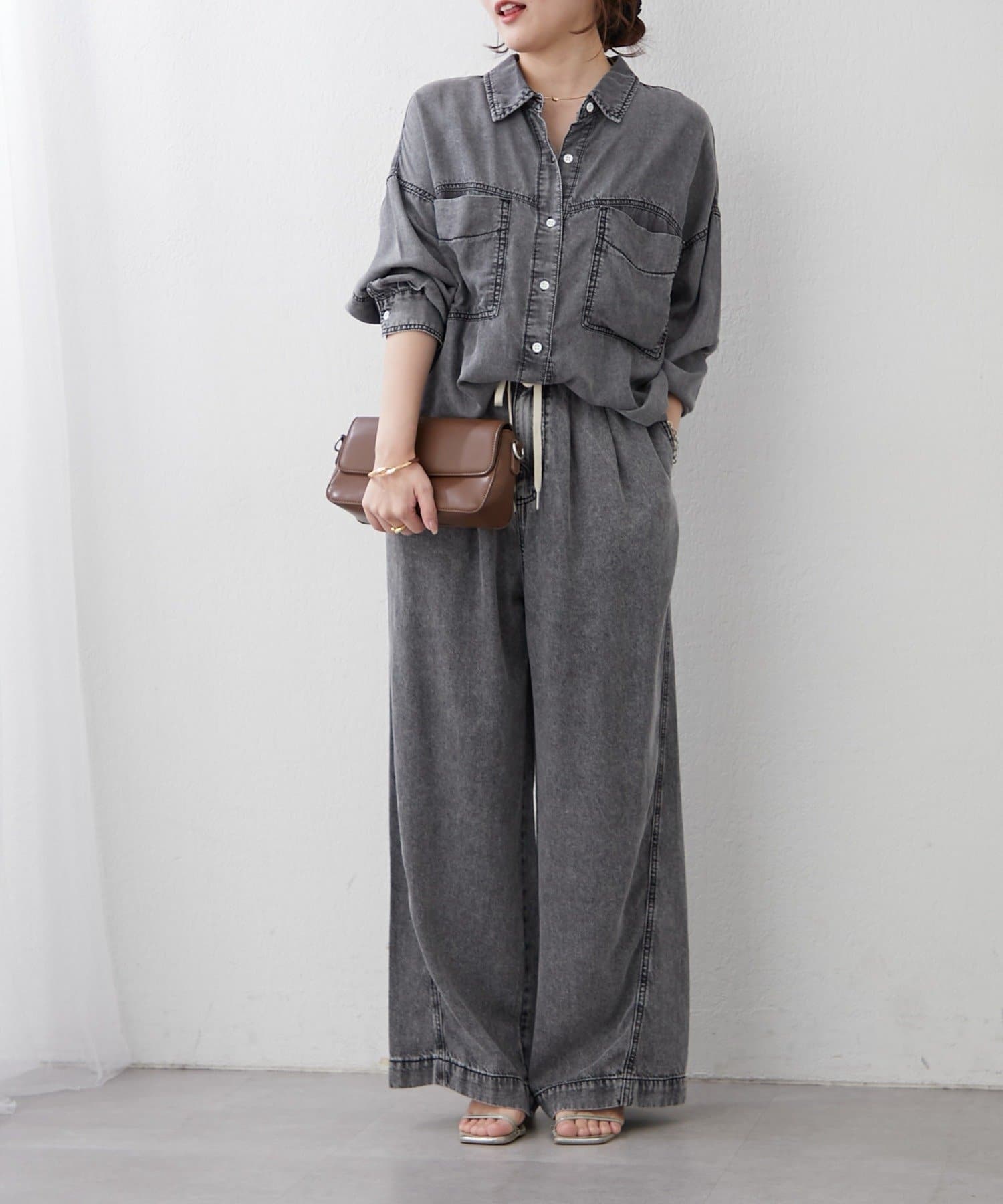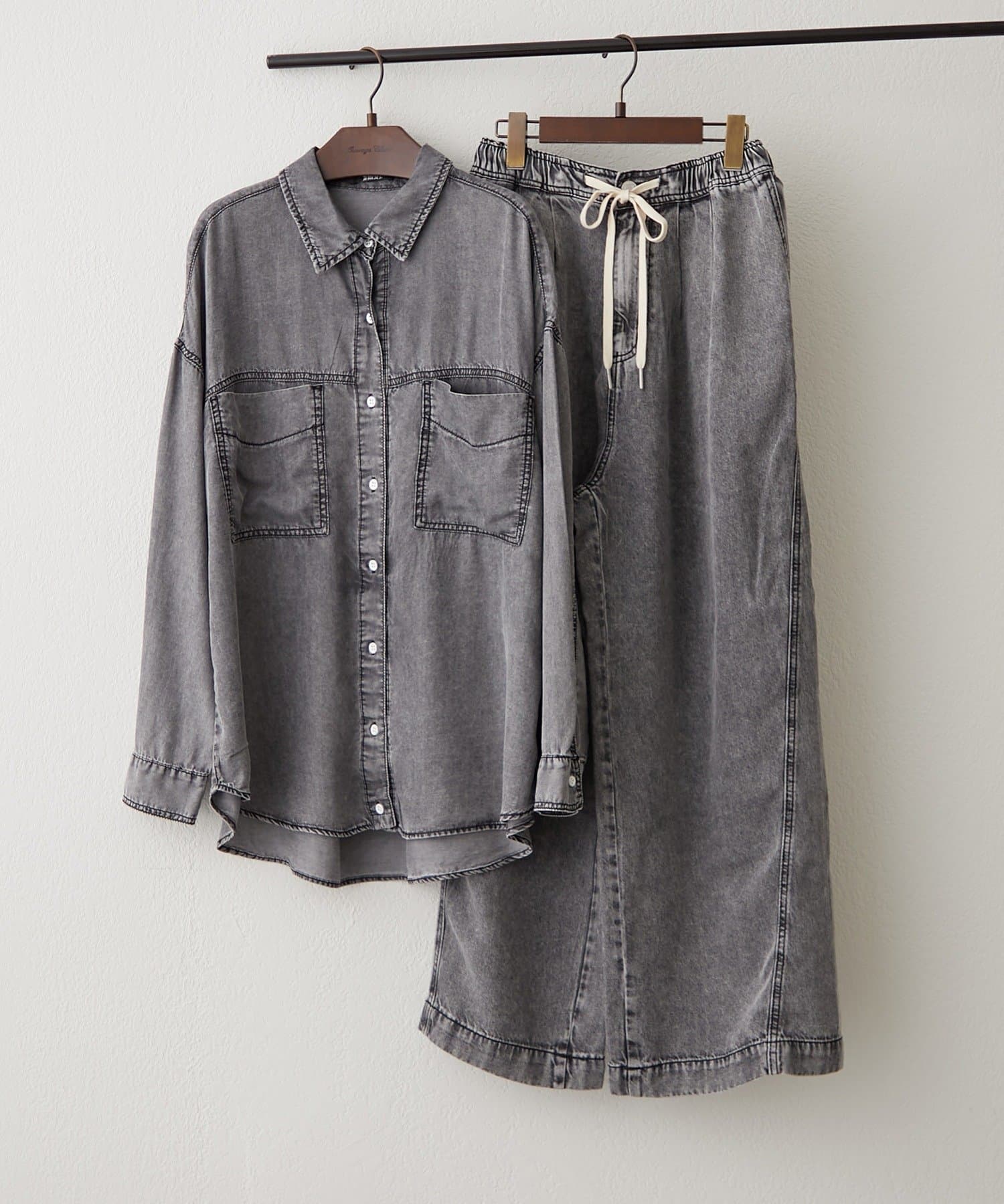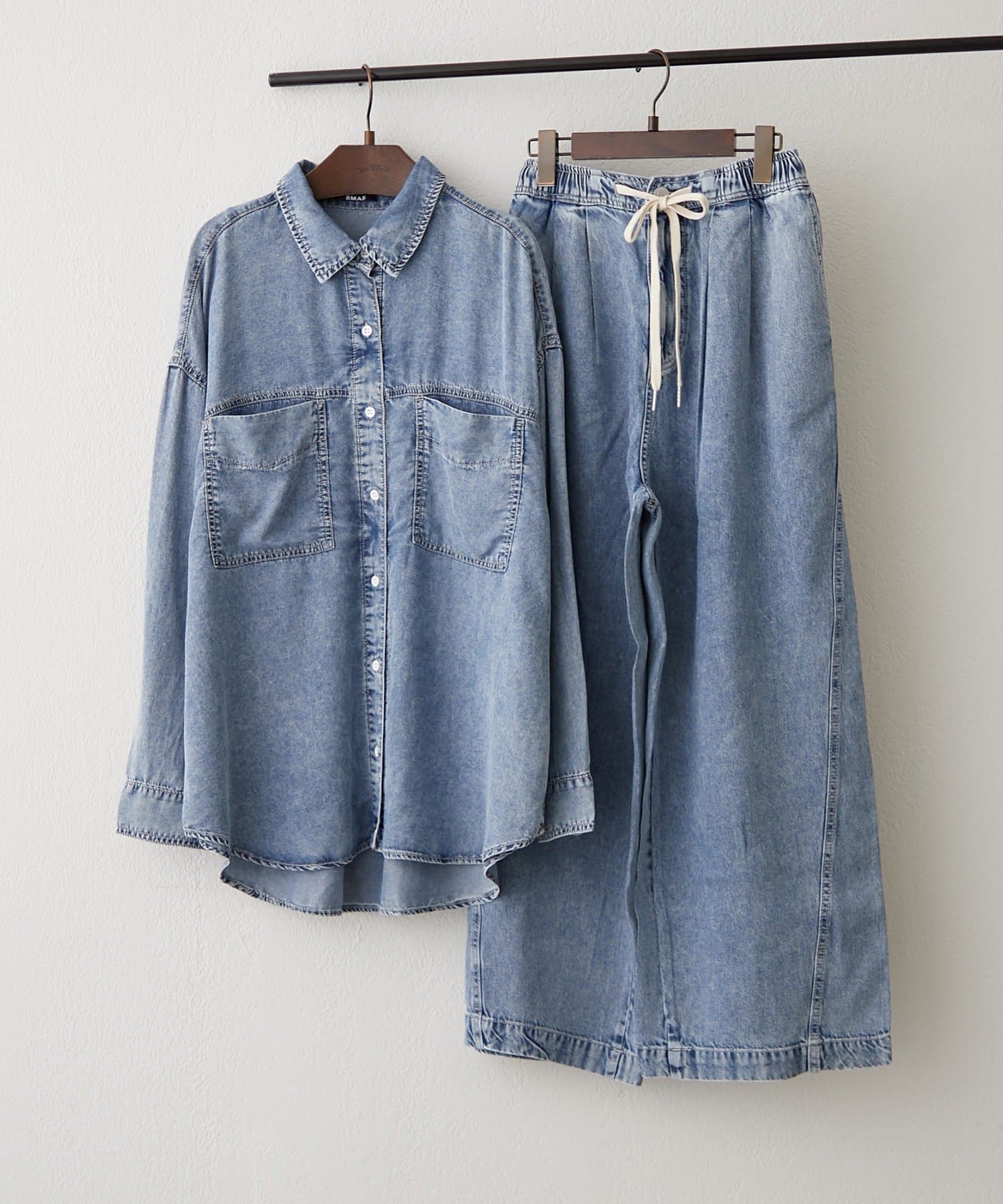 ・同素材のデニムシャツとのセットアップコーデも楽しめます